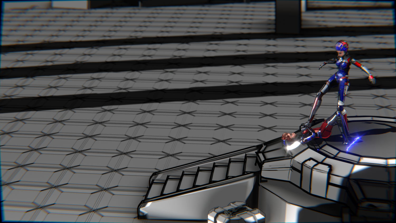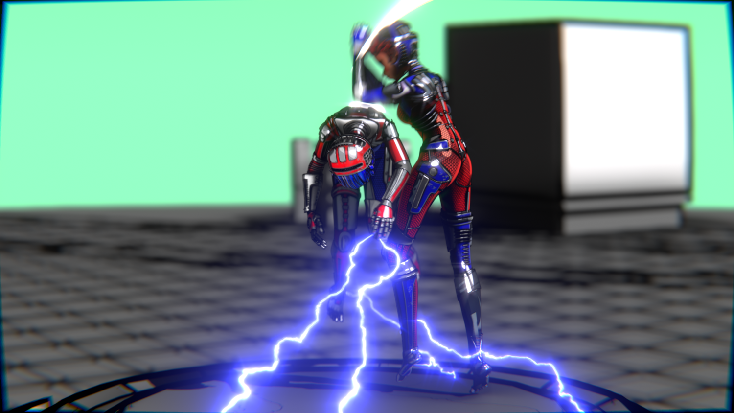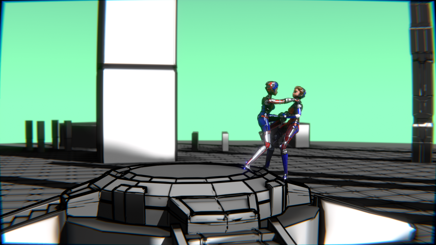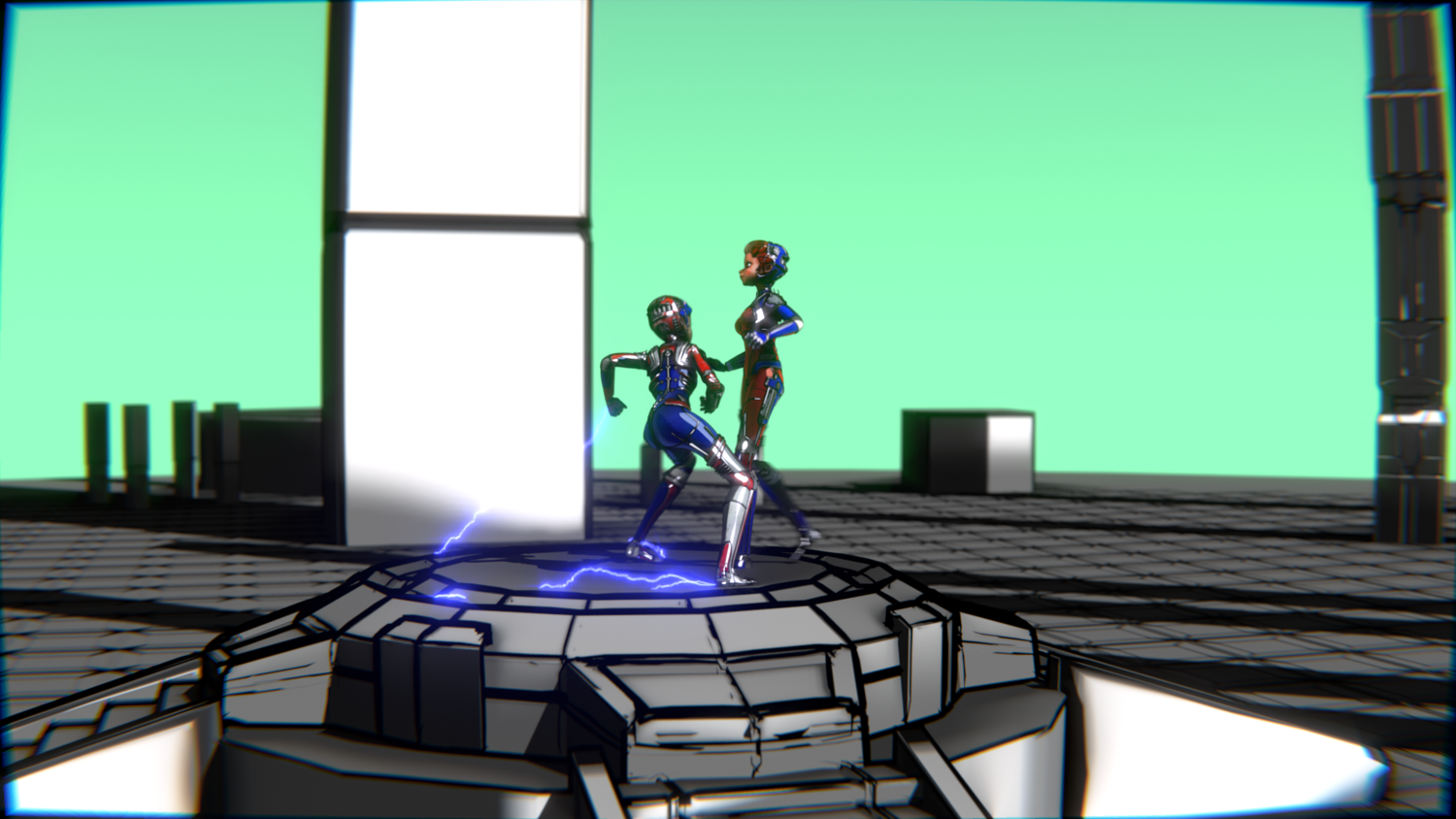 A stylized cyberpunk-inspired combat pack featuring two asymmetric robotic girls (Red & Blue variants) with high-tech designs, multiple shader options, and fully rigged combat animations. Perfect for games, cinematics, and stylized renders.