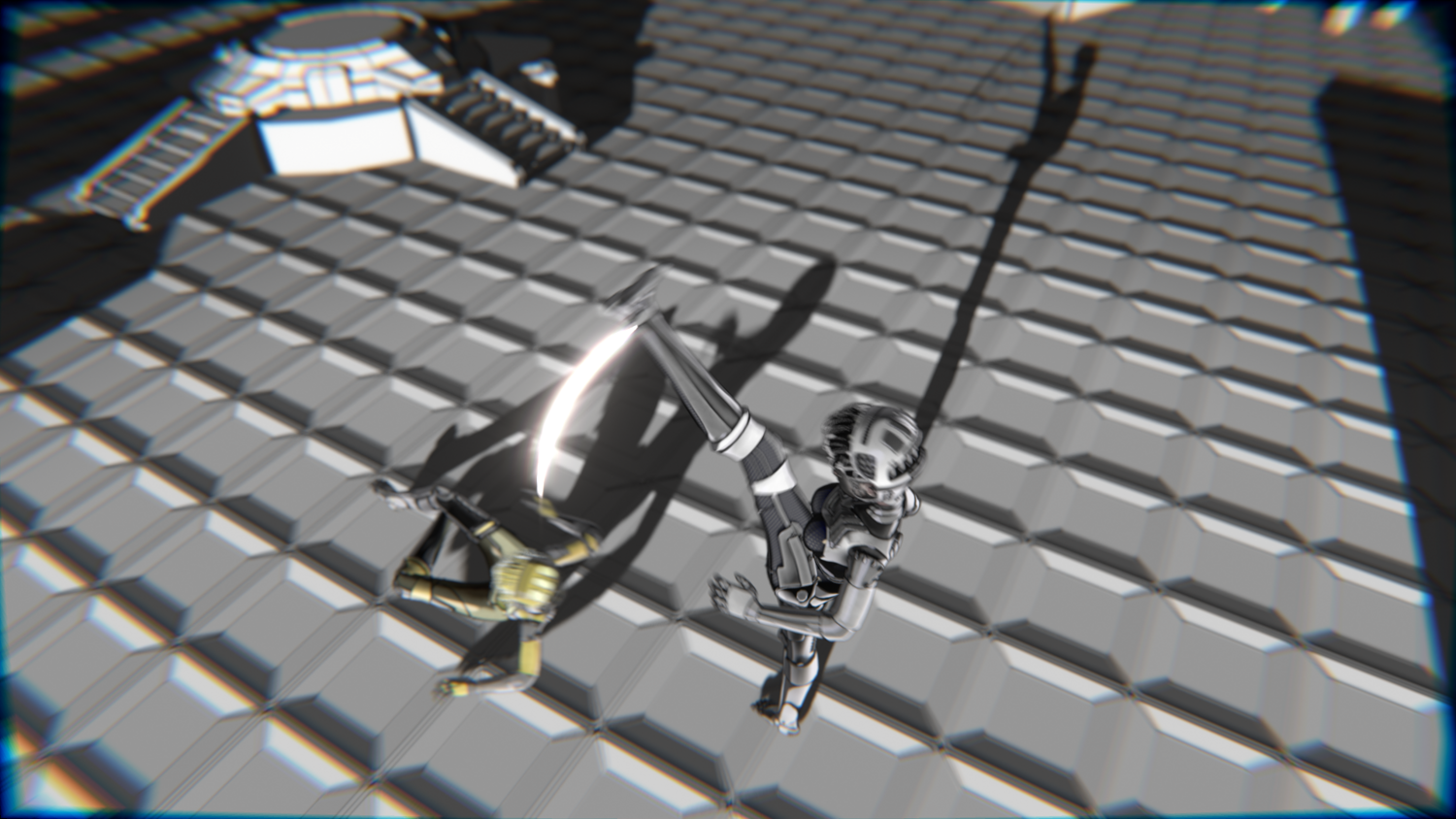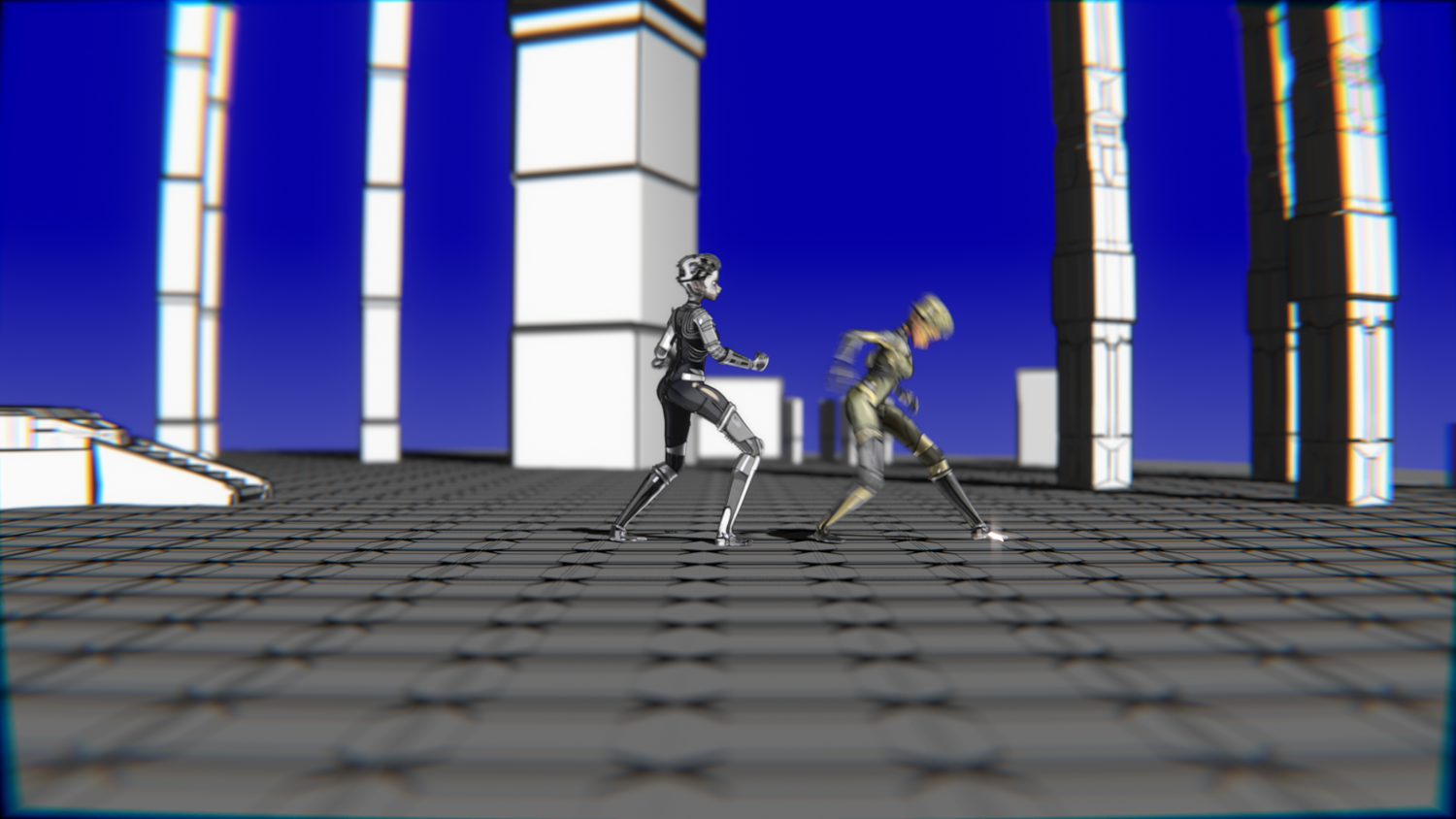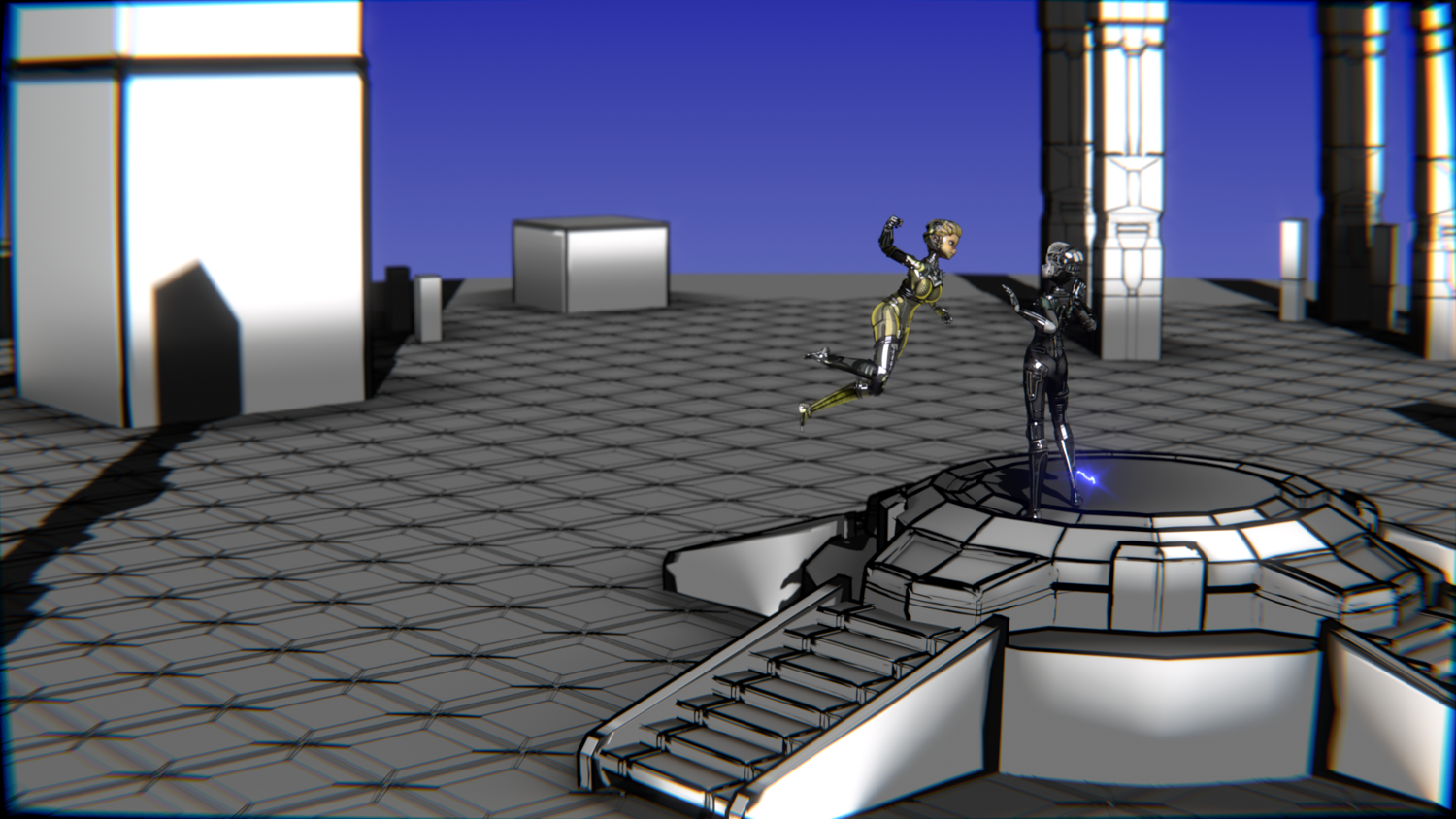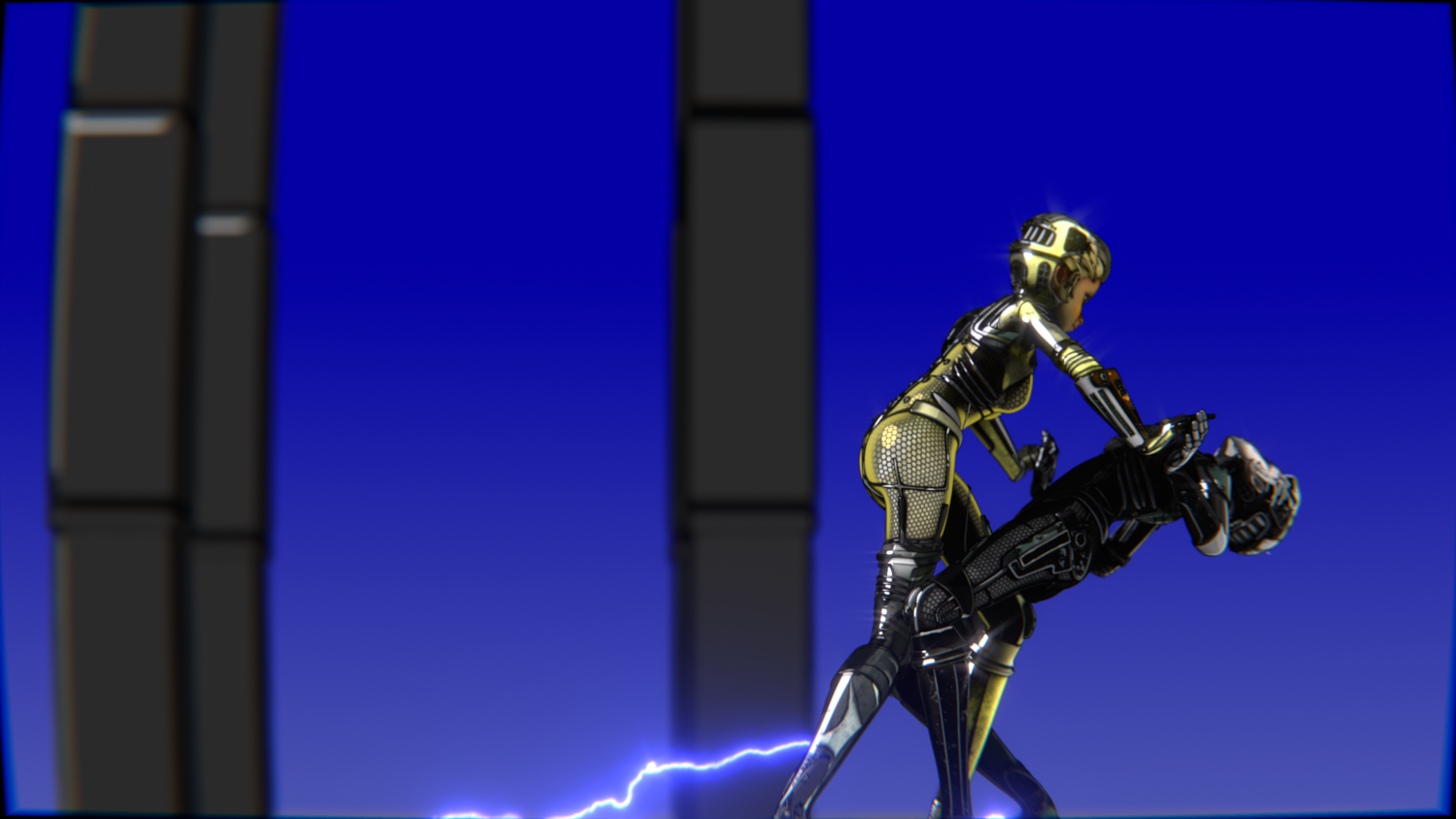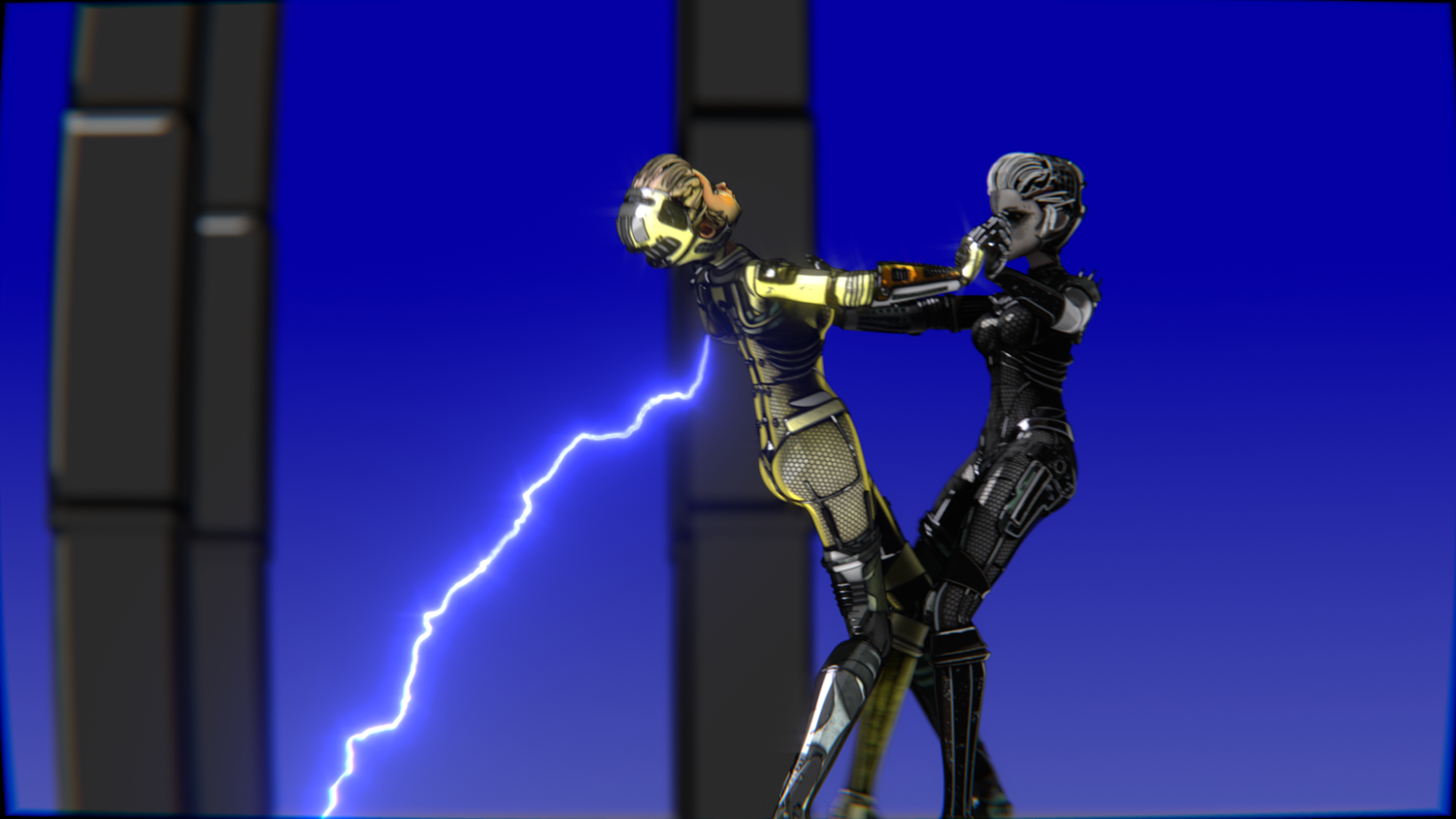 A stylized cyberpunk-inspired combat pack featuring two asymmetric robotic girls (Gold & Gothic variants) with high-tech designs, multiple shader options, and fully rigged combat animations. Perfect for games, cinematics, and stylized renders.