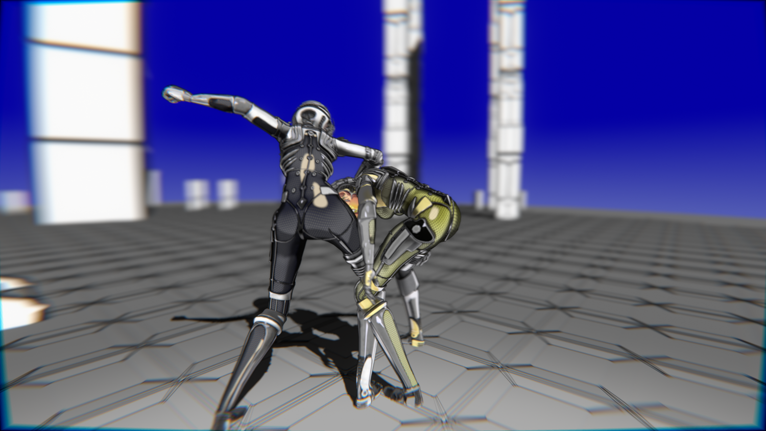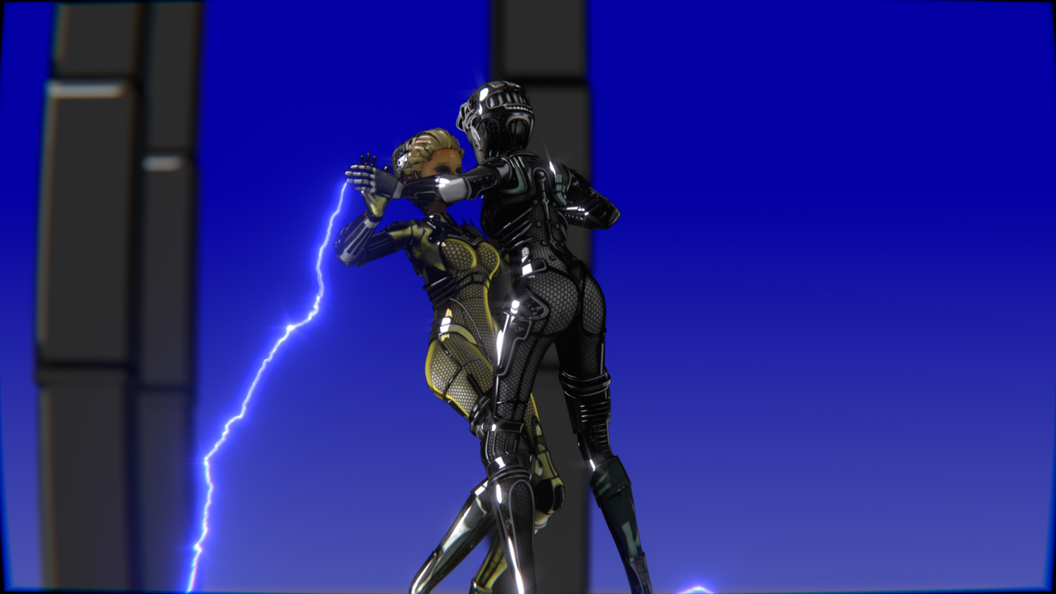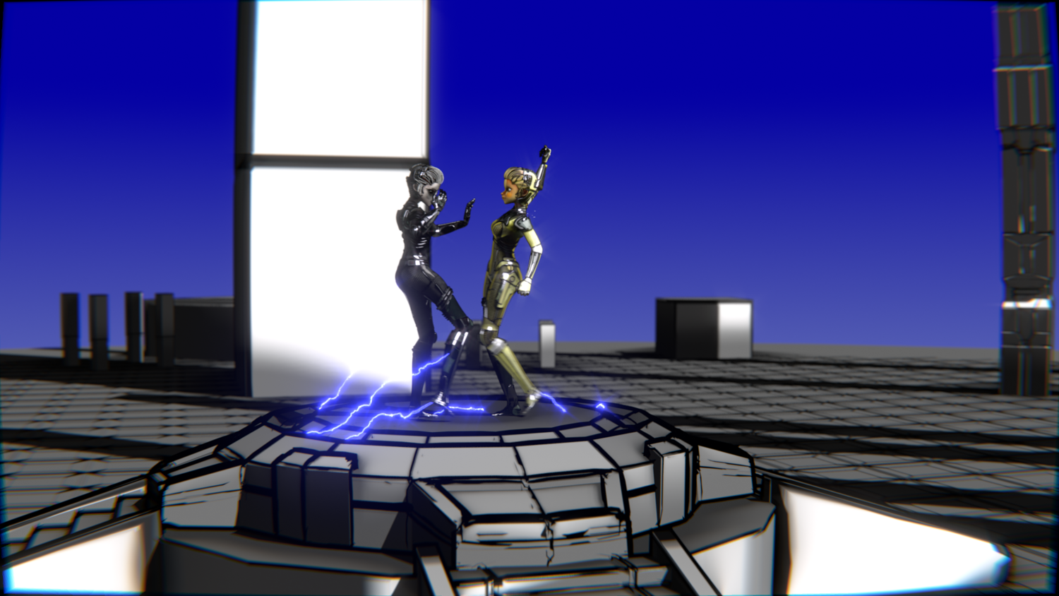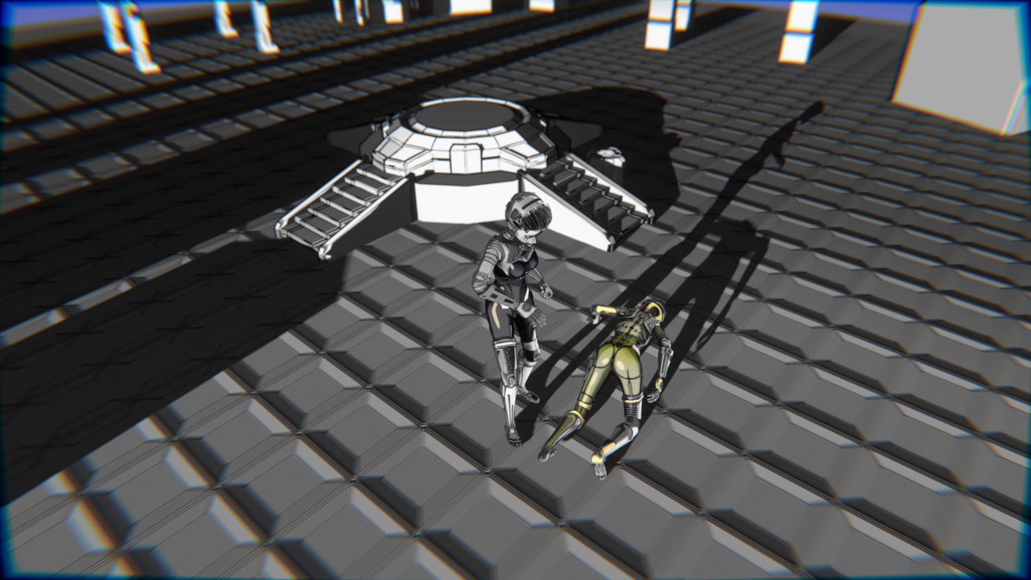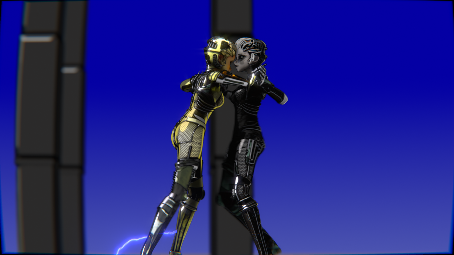 A stylized cyberpunk-inspired combat pack featuring two asymmetric robotic girls (Gold & Gothic variants) with high-tech designs, multiple shader options, and fully rigged combat animations. Perfect for games, cinematics, and stylized renders.