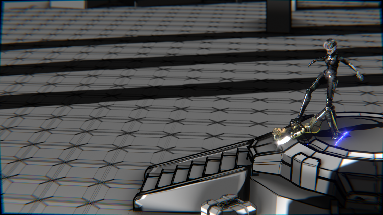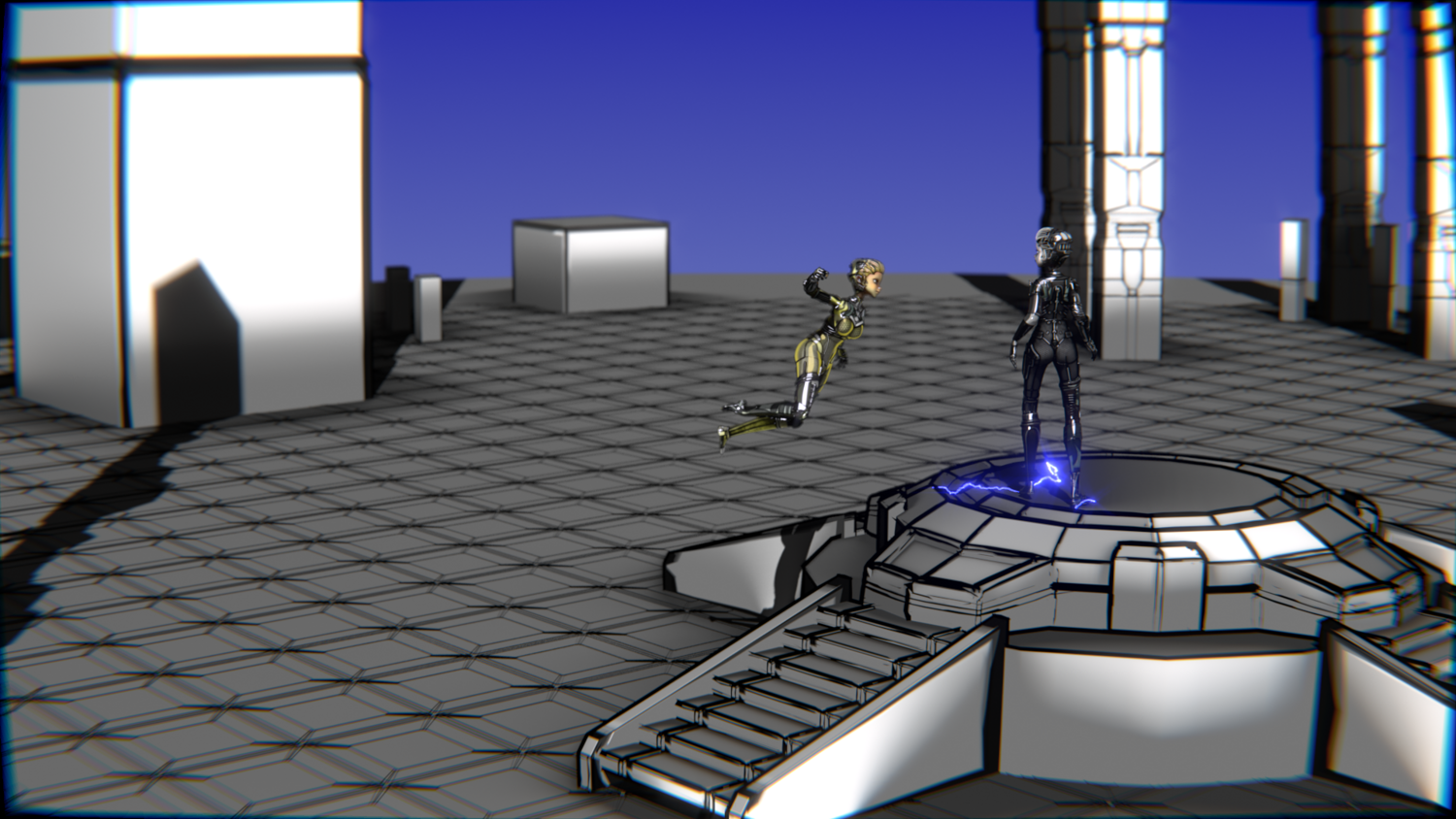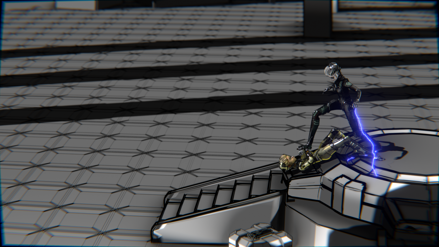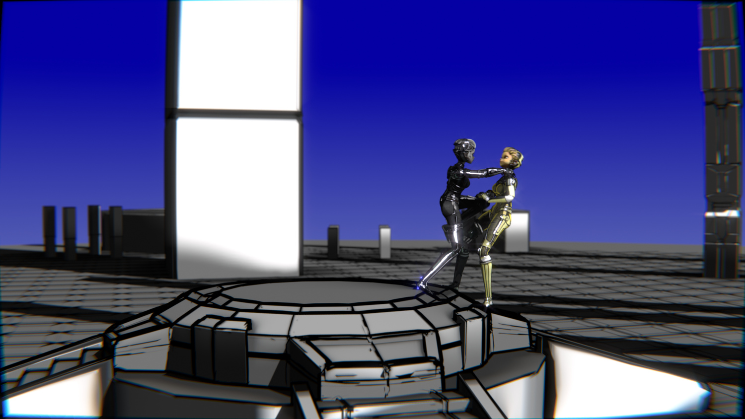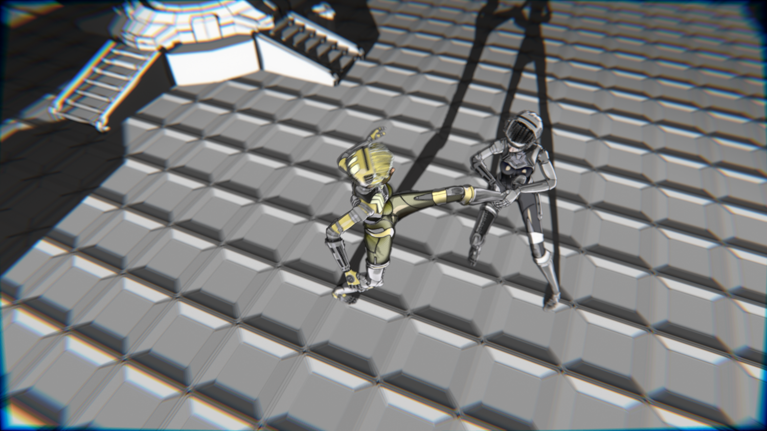A stylized cyberpunk-inspired combat pack featuring two asymmetric robotic girls (Gold & Gothic variants) with high-tech designs, multiple shader options, and fully rigged combat animations. Perfect for games, cinematics, and stylized renders.