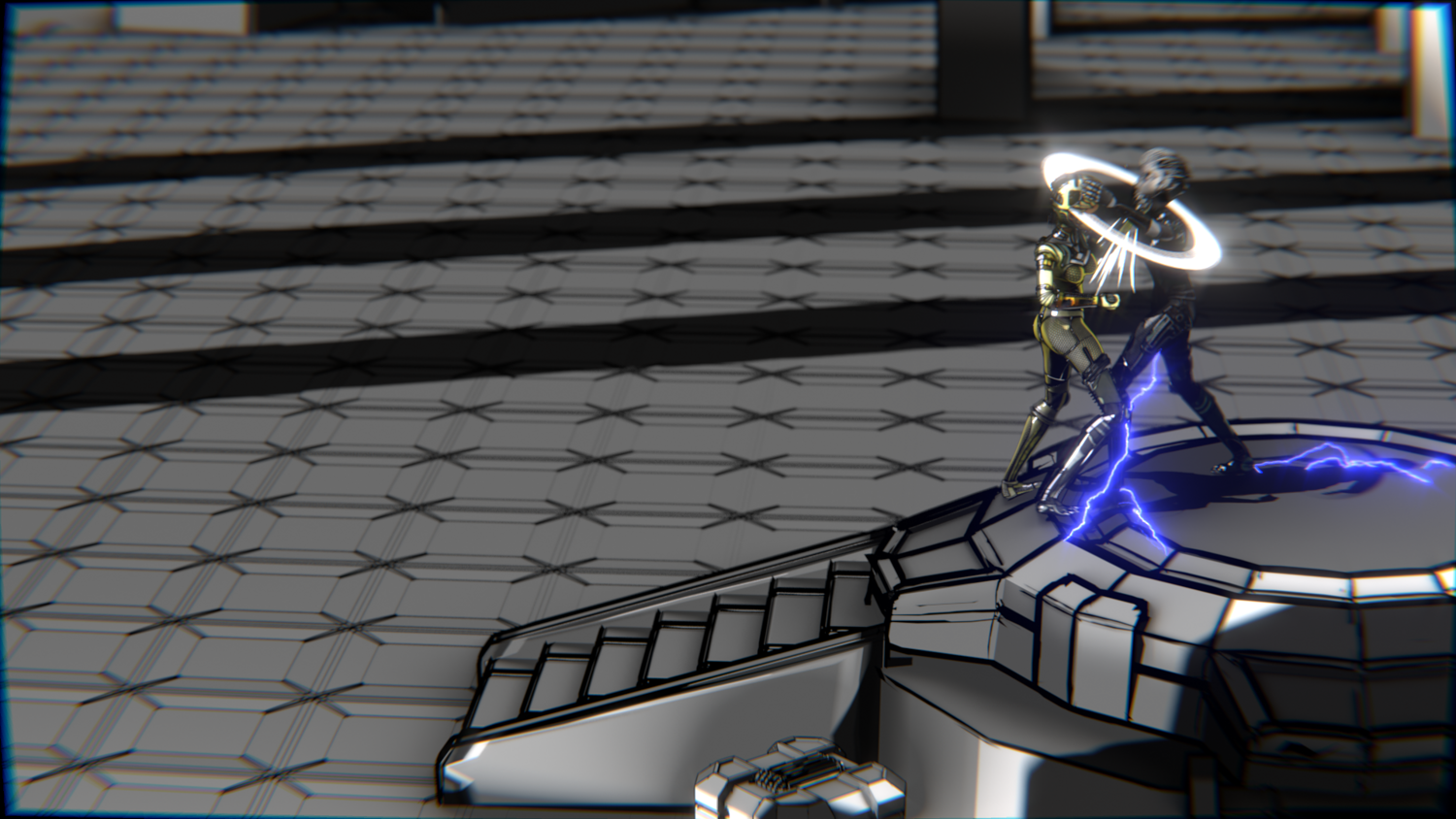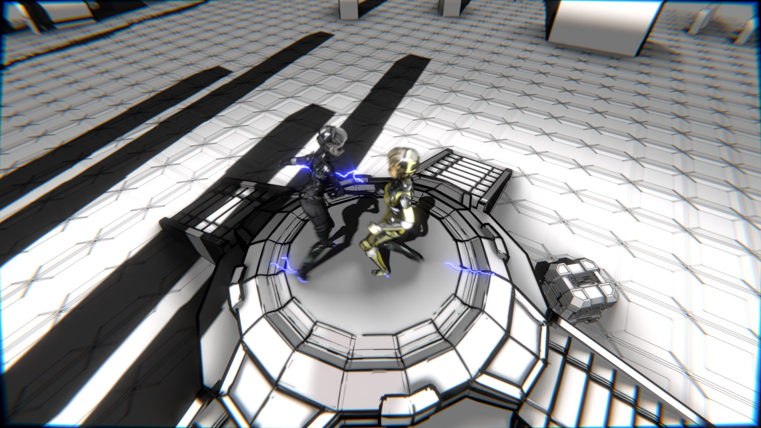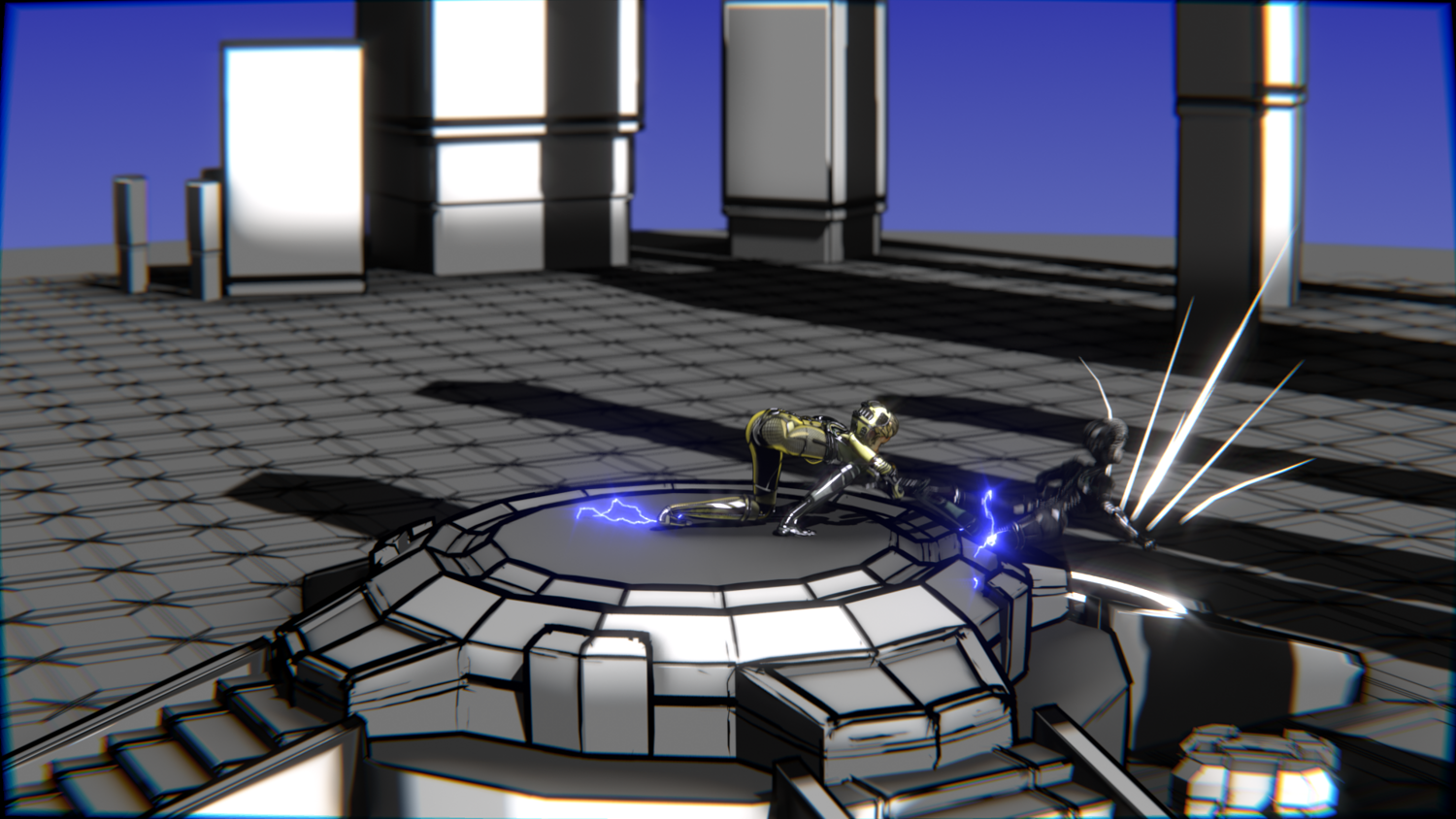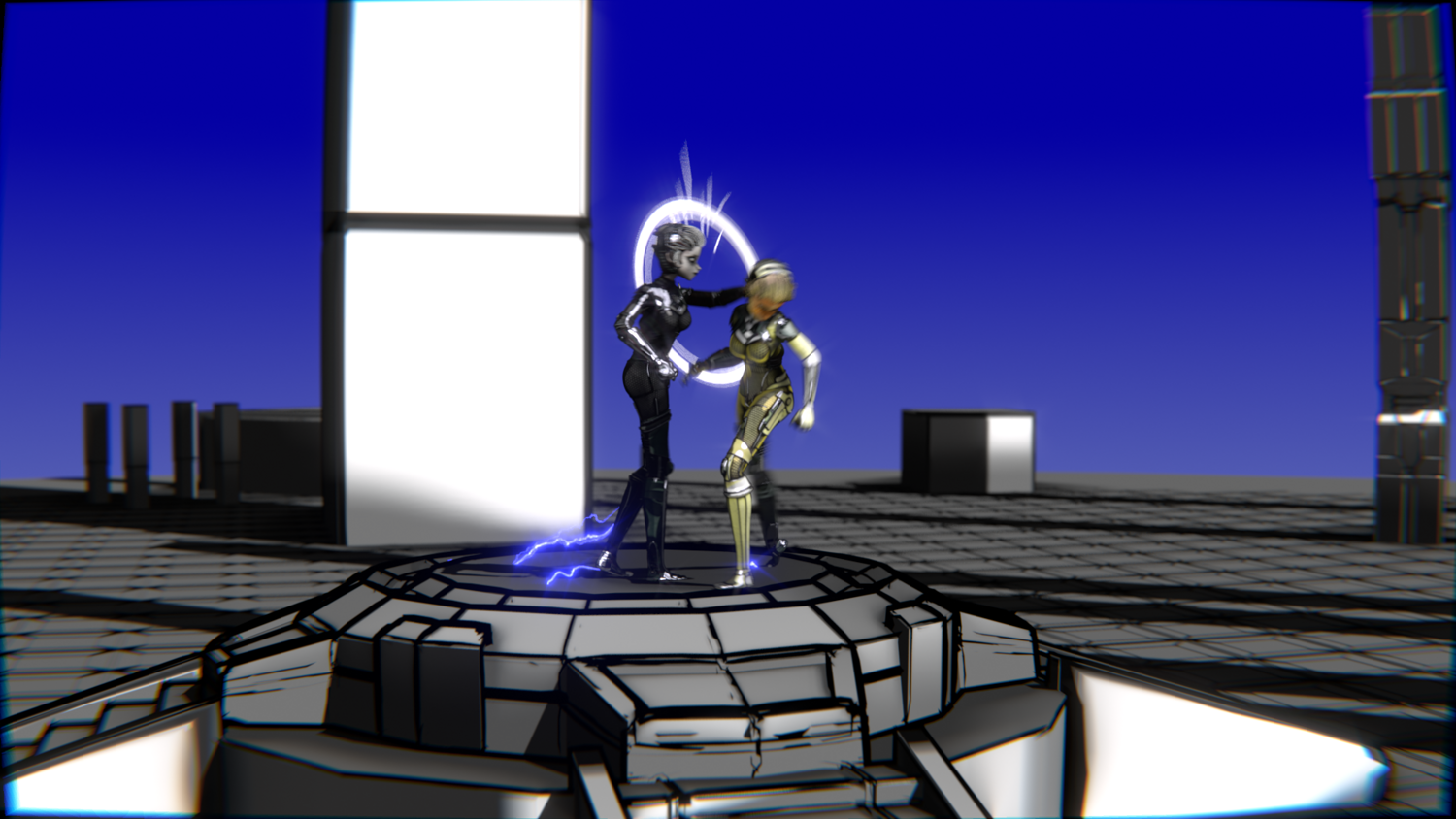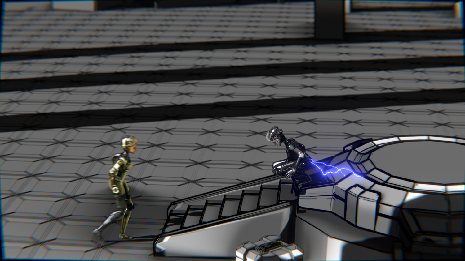 A stylized cyberpunk-inspired combat pack featuring two asymmetric robotic girls (Gold & Gothic variants) with high-tech designs, multiple shader options, and fully rigged combat animations. Perfect for games, cinematics, and stylized renders.