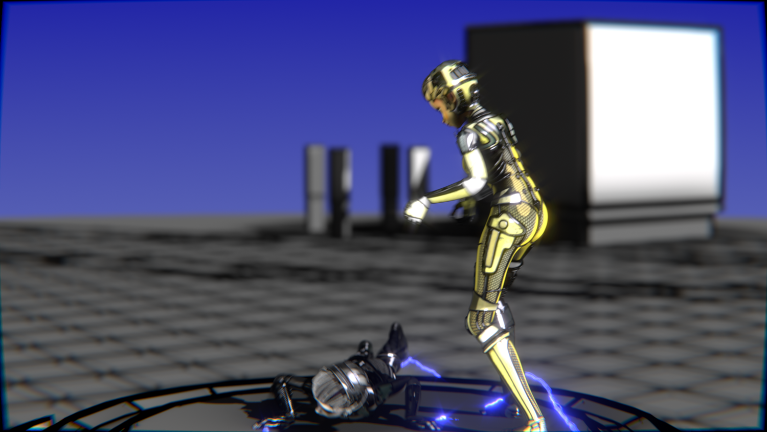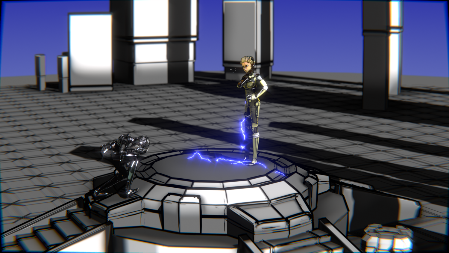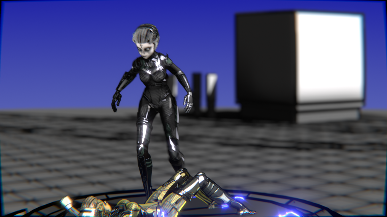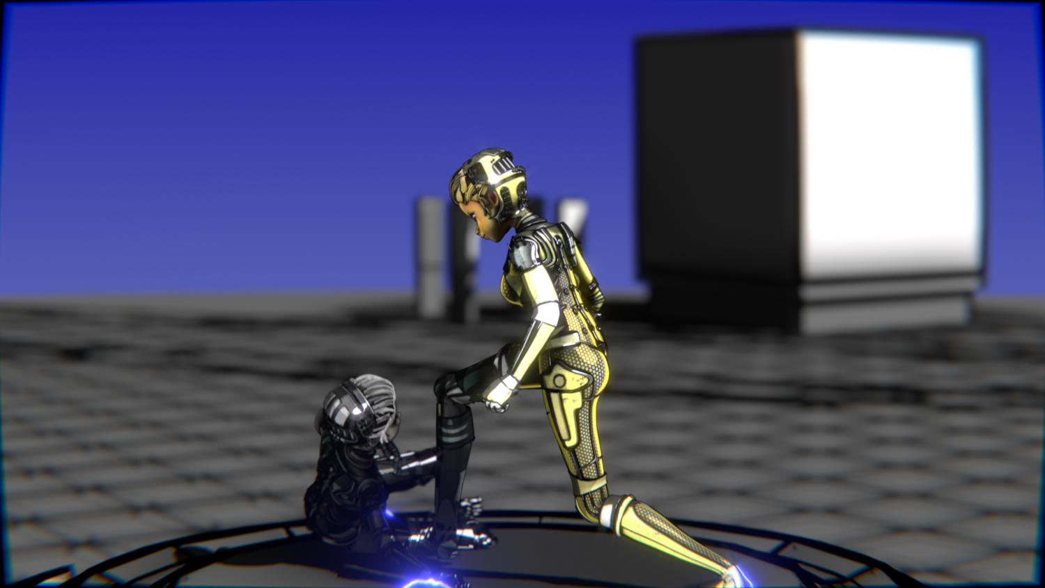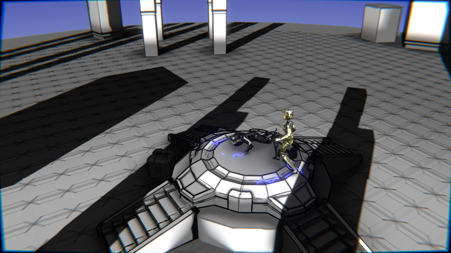 A stylized cyberpunk-inspired combat pack featuring two asymmetric robotic girls (Gold & Gothic variants) with high-tech designs, multiple shader options, and fully rigged combat animations. Perfect for games, cinematics, and stylized renders.