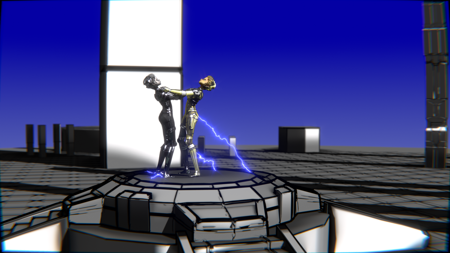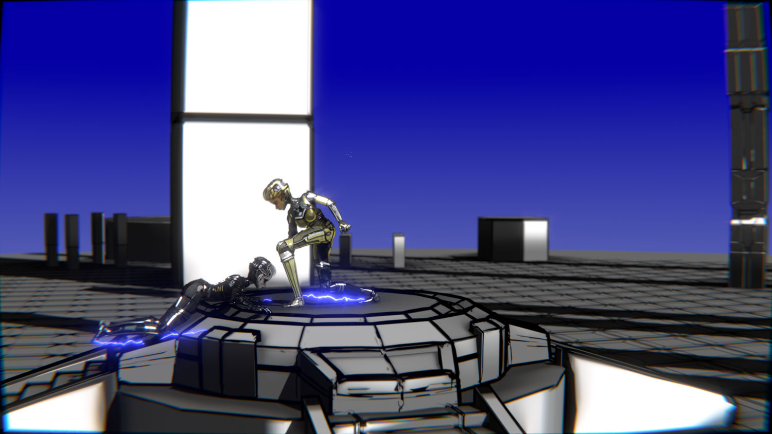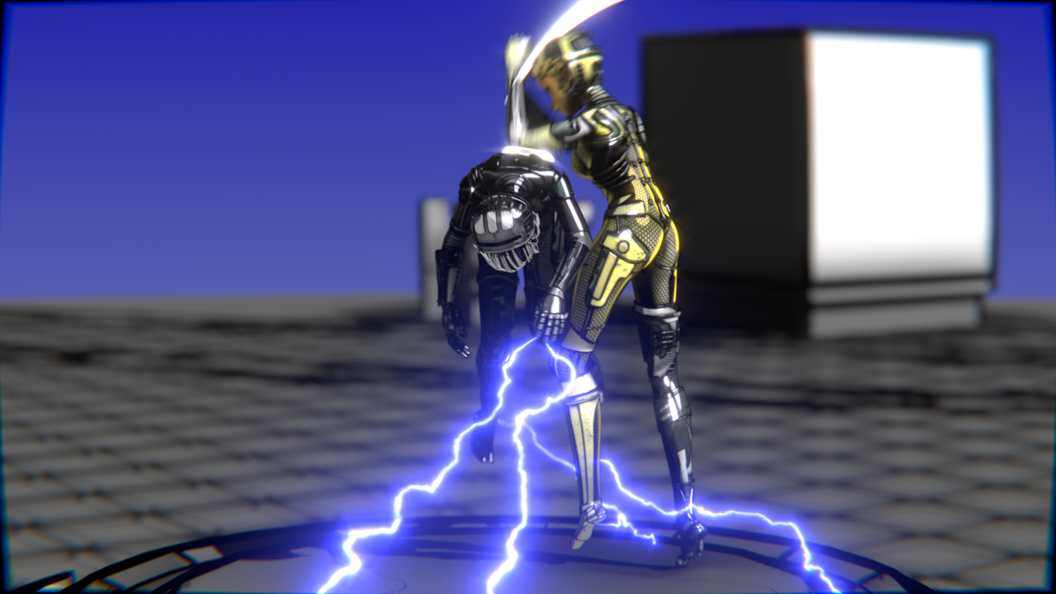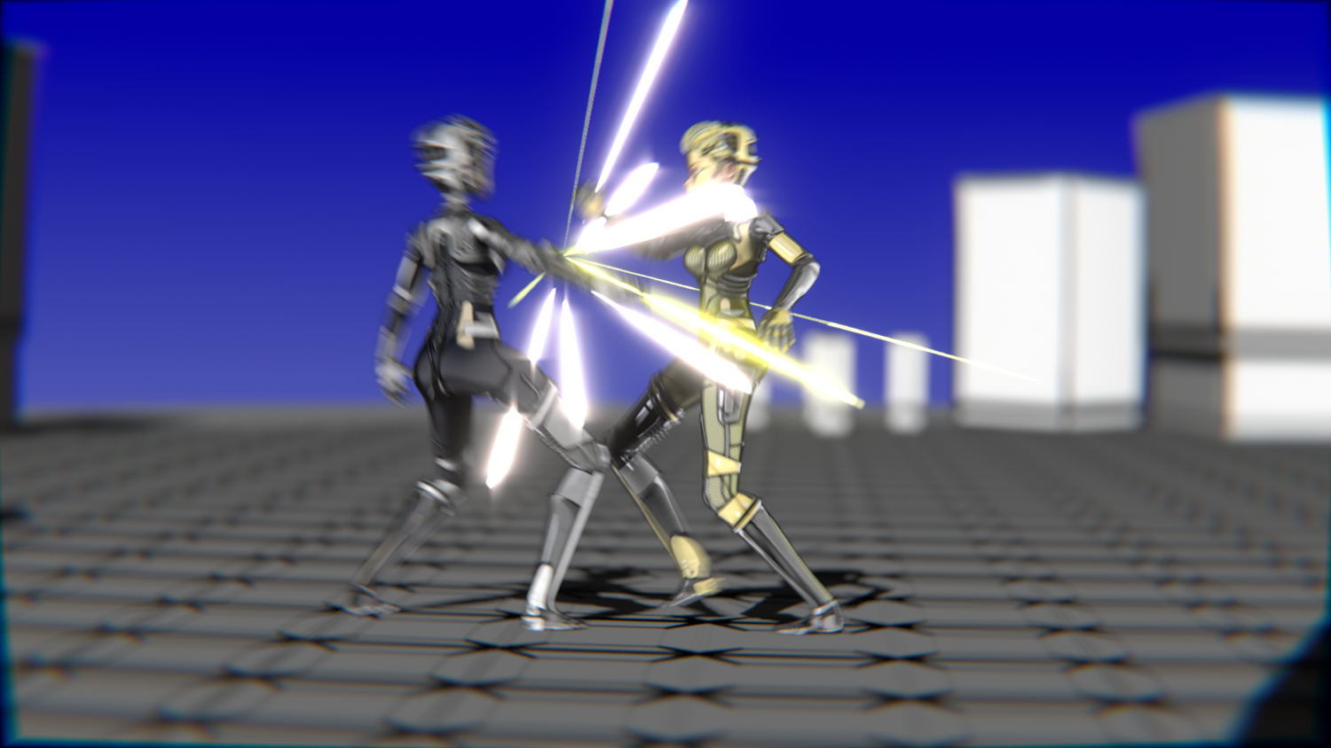 Game developers needing ready-to-use robotic fighters Animators looking for long, consistent combat sequences 3D artists creating cyberpunk or sci-fi scenes