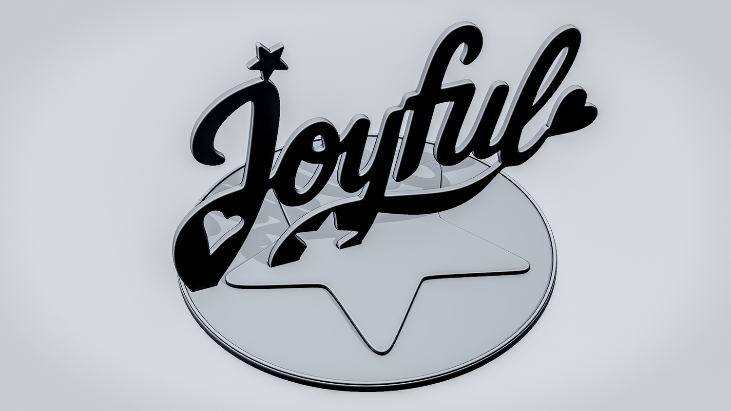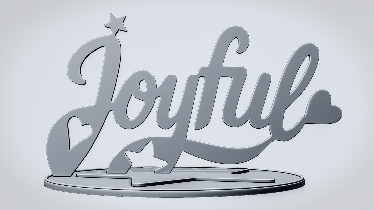 Statue Version: The statue version presents JOYFUL as a freestanding display piece on a round decorative base with a large star motif that strengthens the happy, celebratory theme. It keeps the flowing lettering and accent shapes clearly visible while giving the model a polished, display-ready presence for desks, shelves, or gift-themed setups.