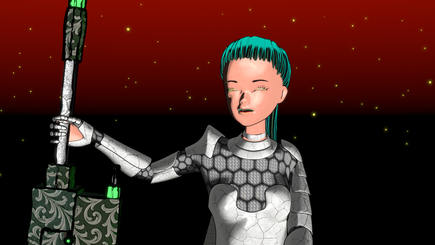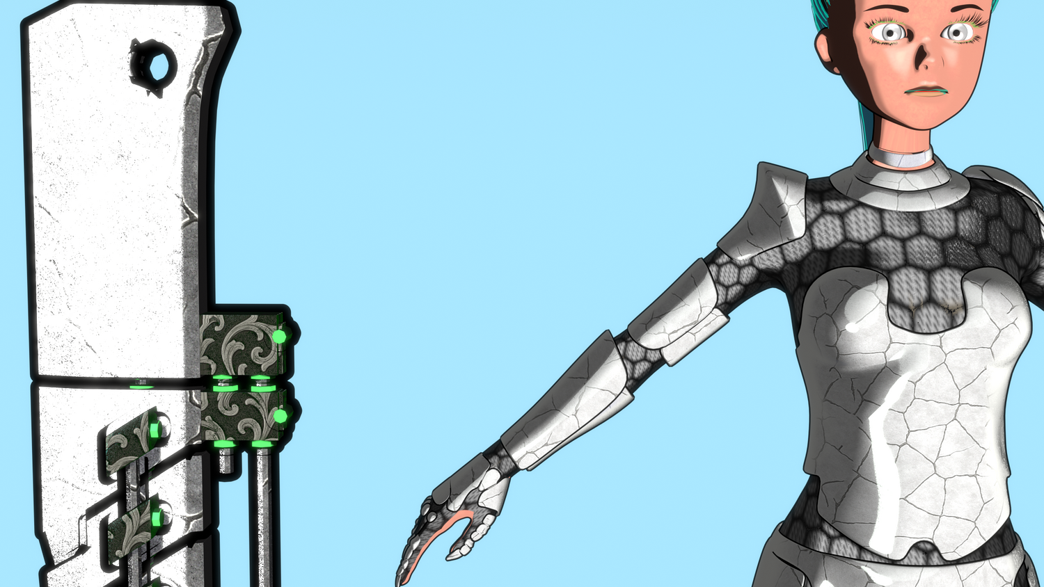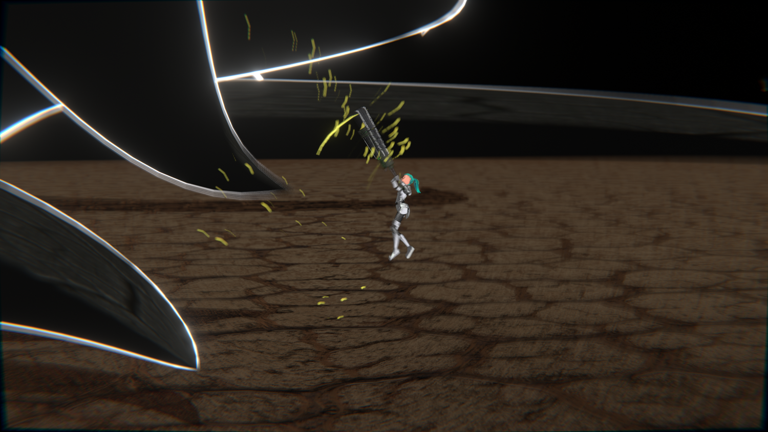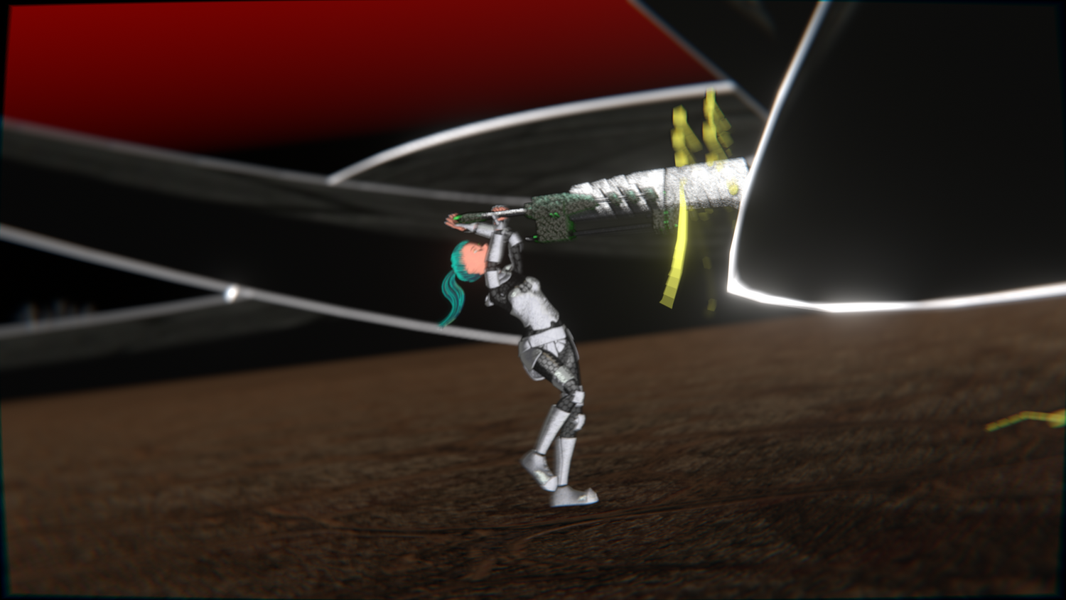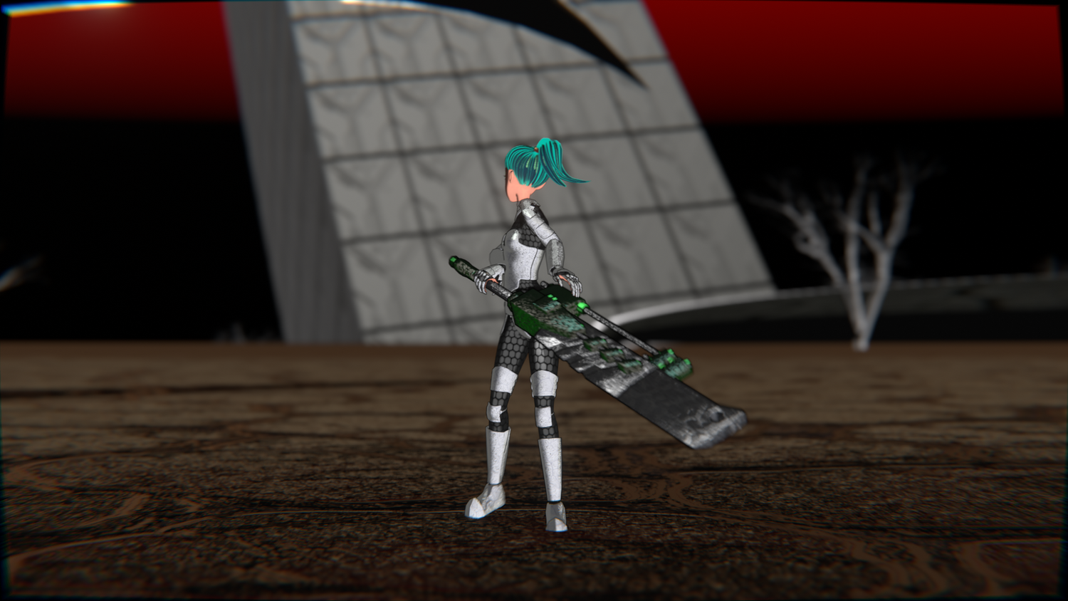 A complete animated battle scene in Blender, featuring a stylized warrior girl with a massive greatsword facing off against a colossal Cthulhu-inspired creature.