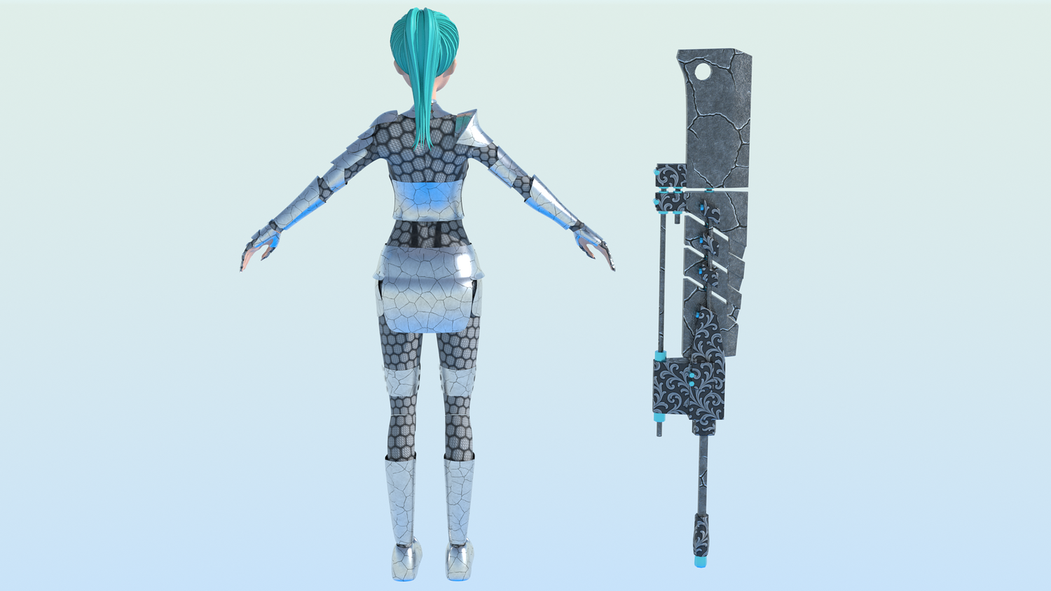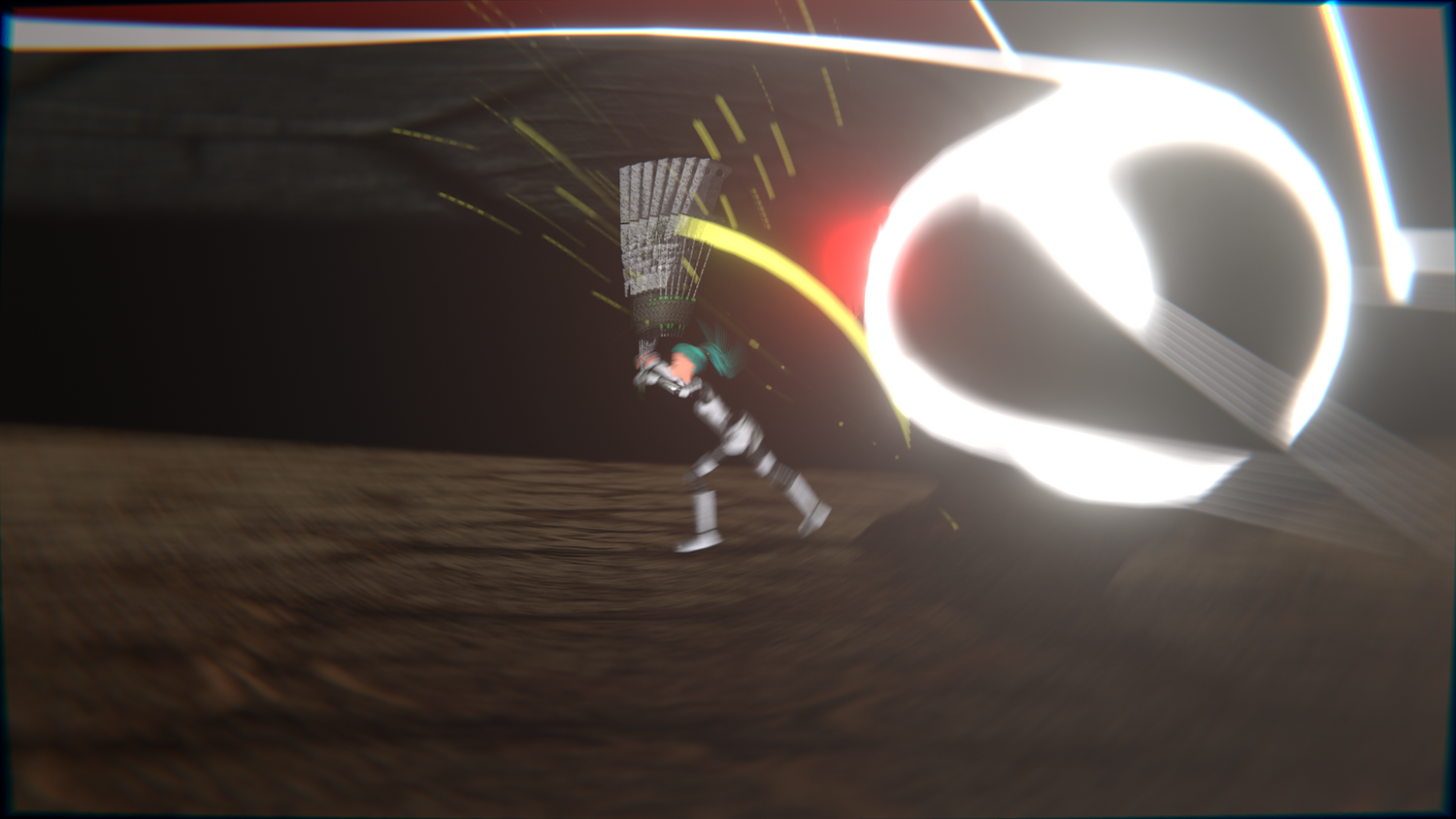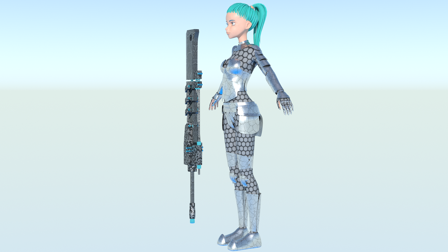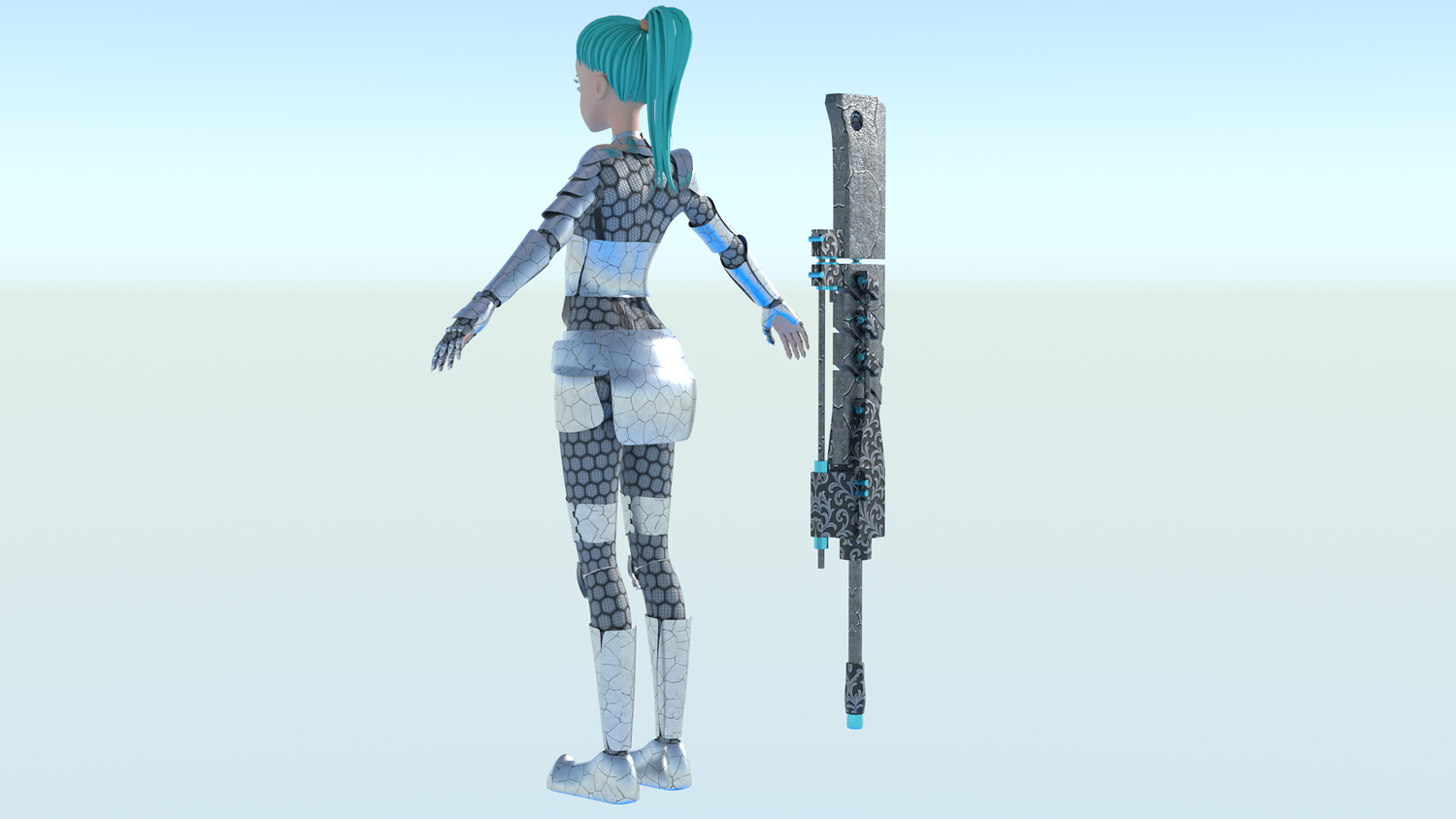 A complete animated battle scene in Blender, featuring a stylized warrior girl with a massive greatsword facing off against a colossal Cthulhu-inspired creature.