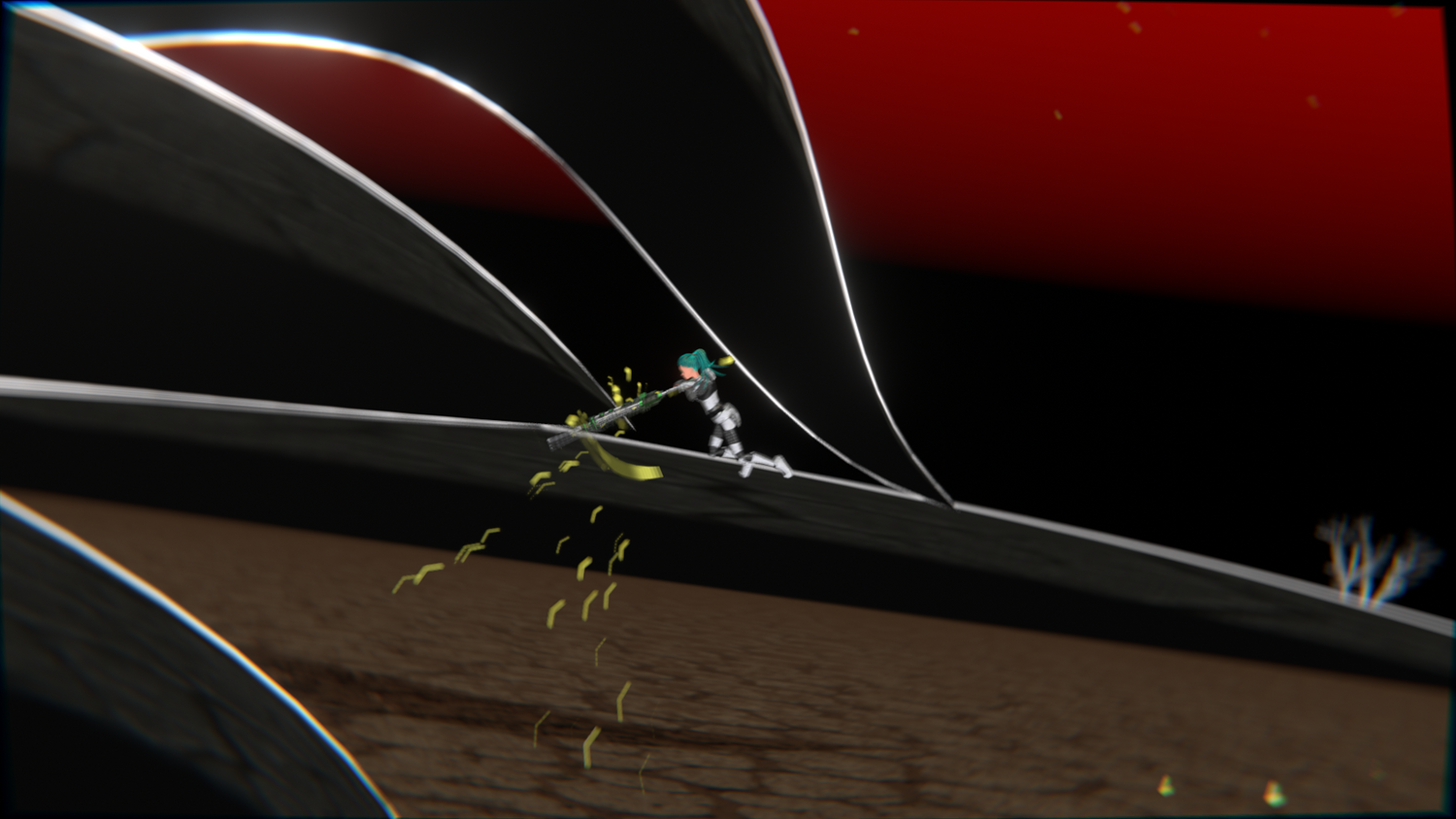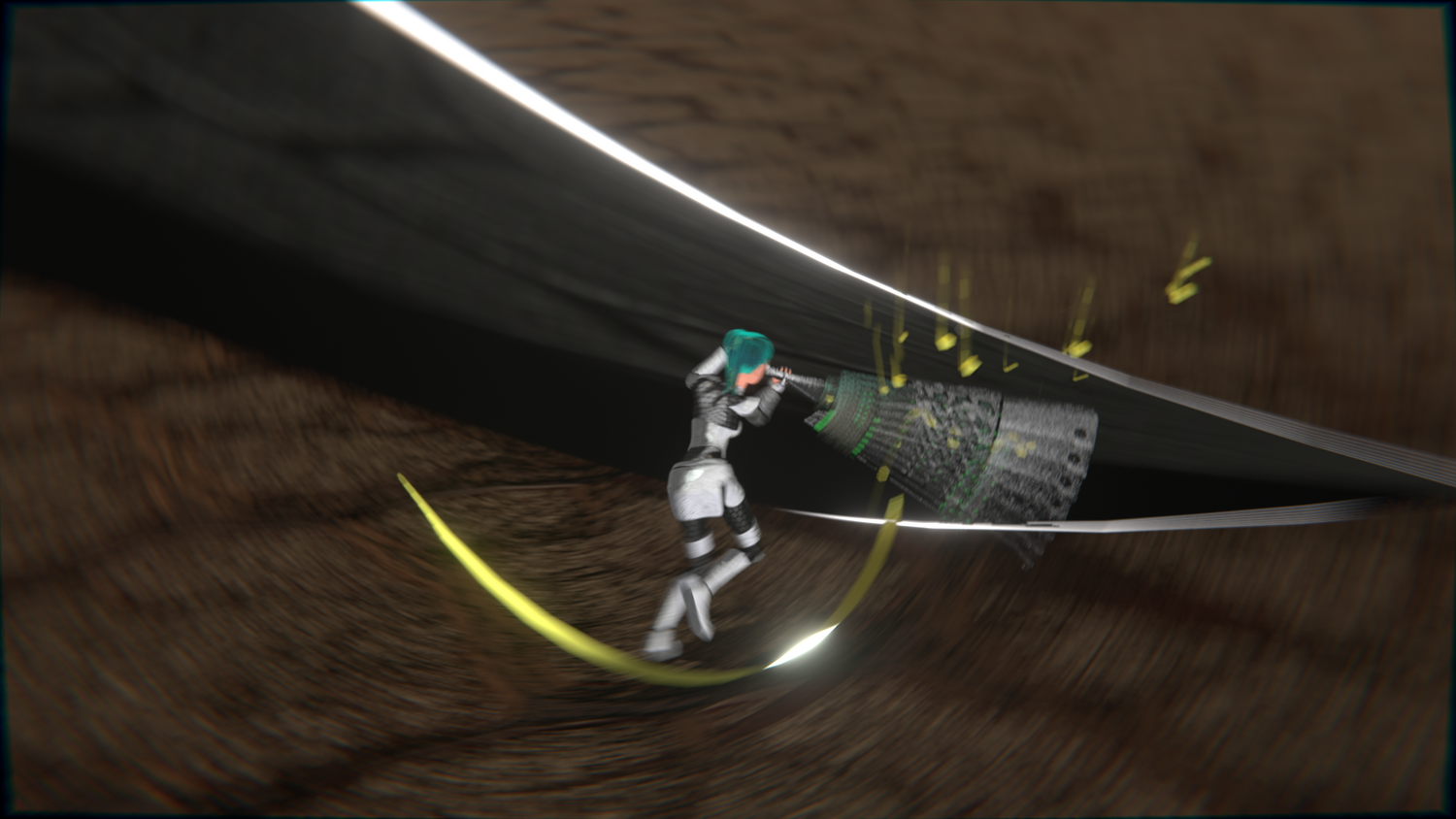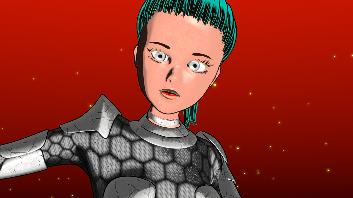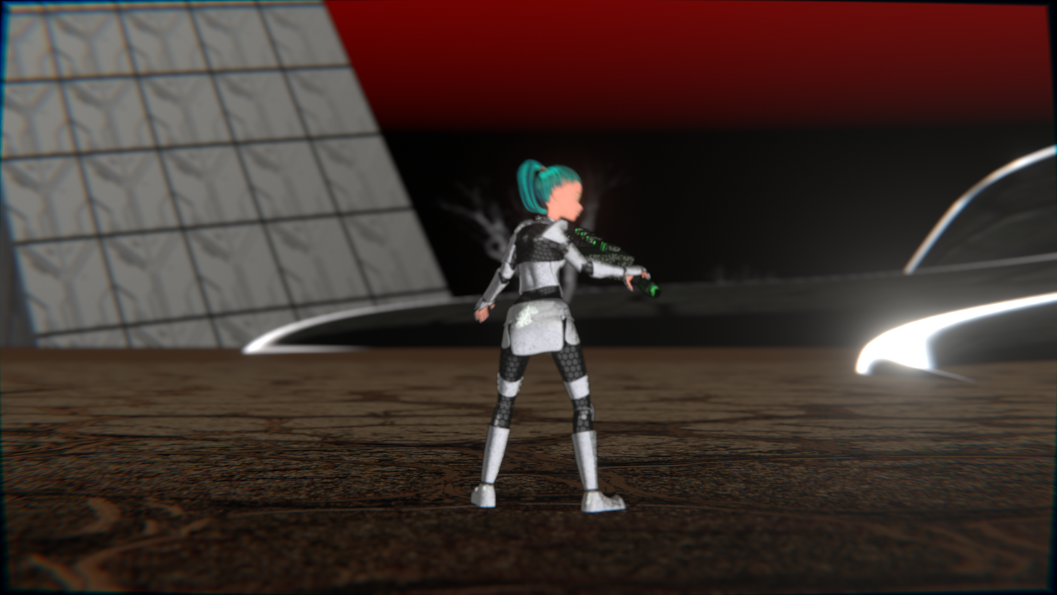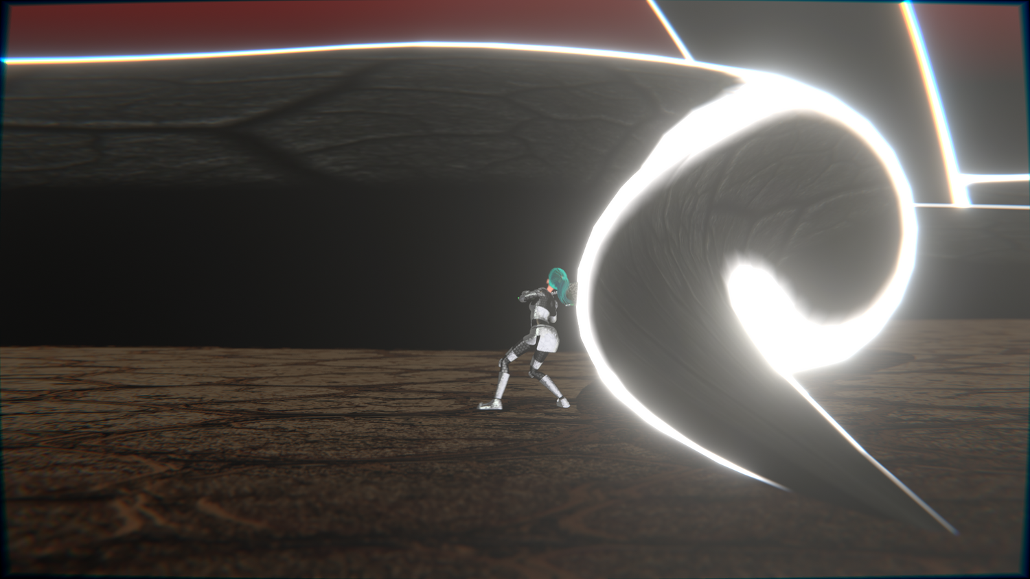 A complete animated battle scene in Blender, featuring a stylized warrior girl with a massive greatsword facing off against a colossal Cthulhu-inspired creature.