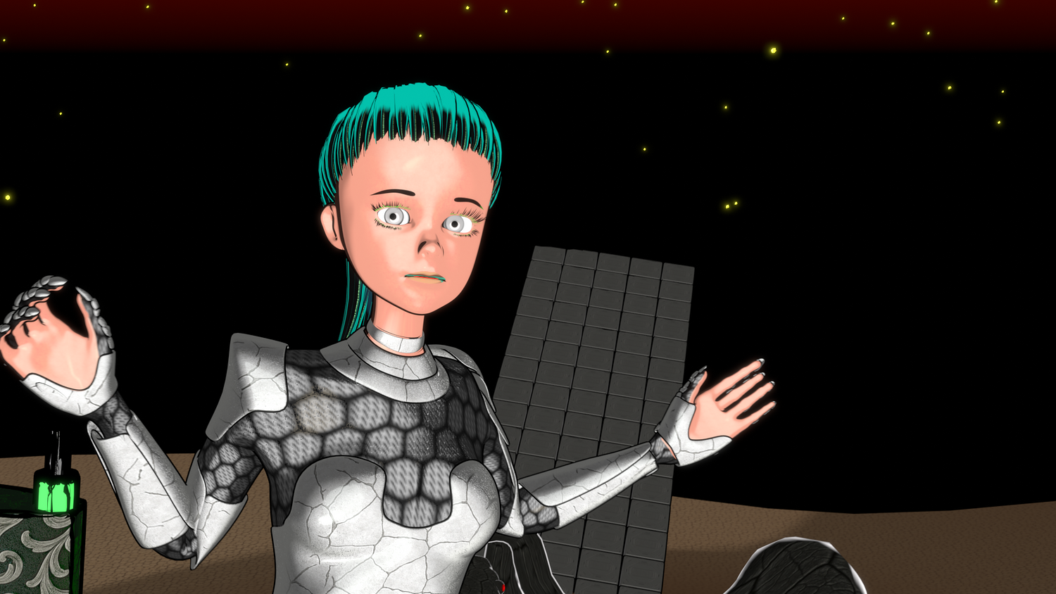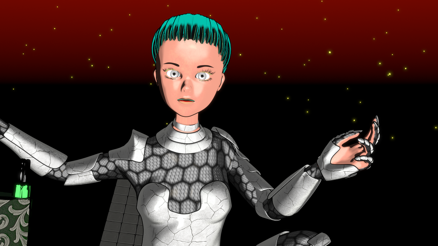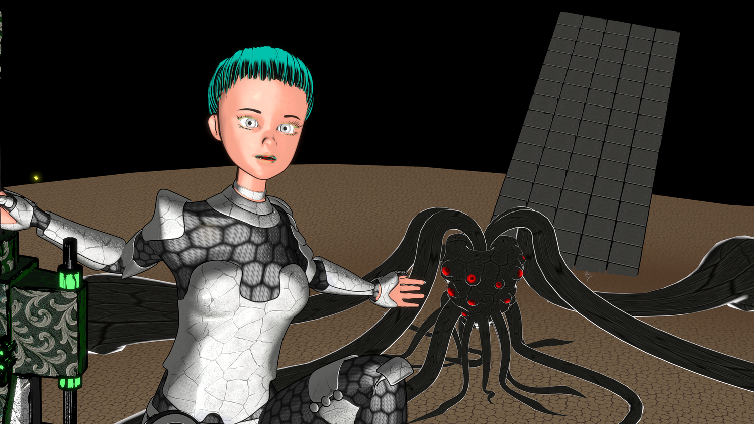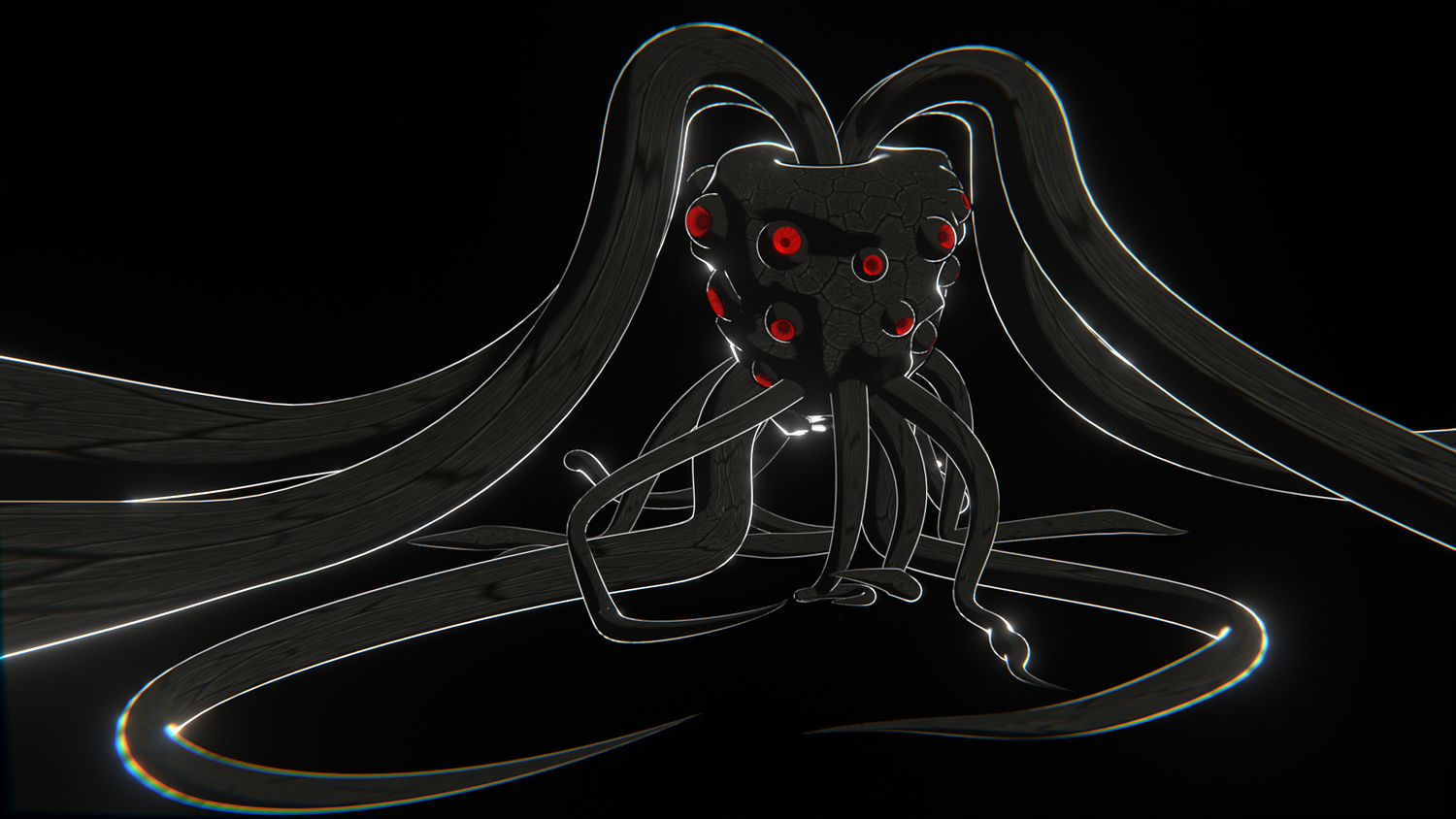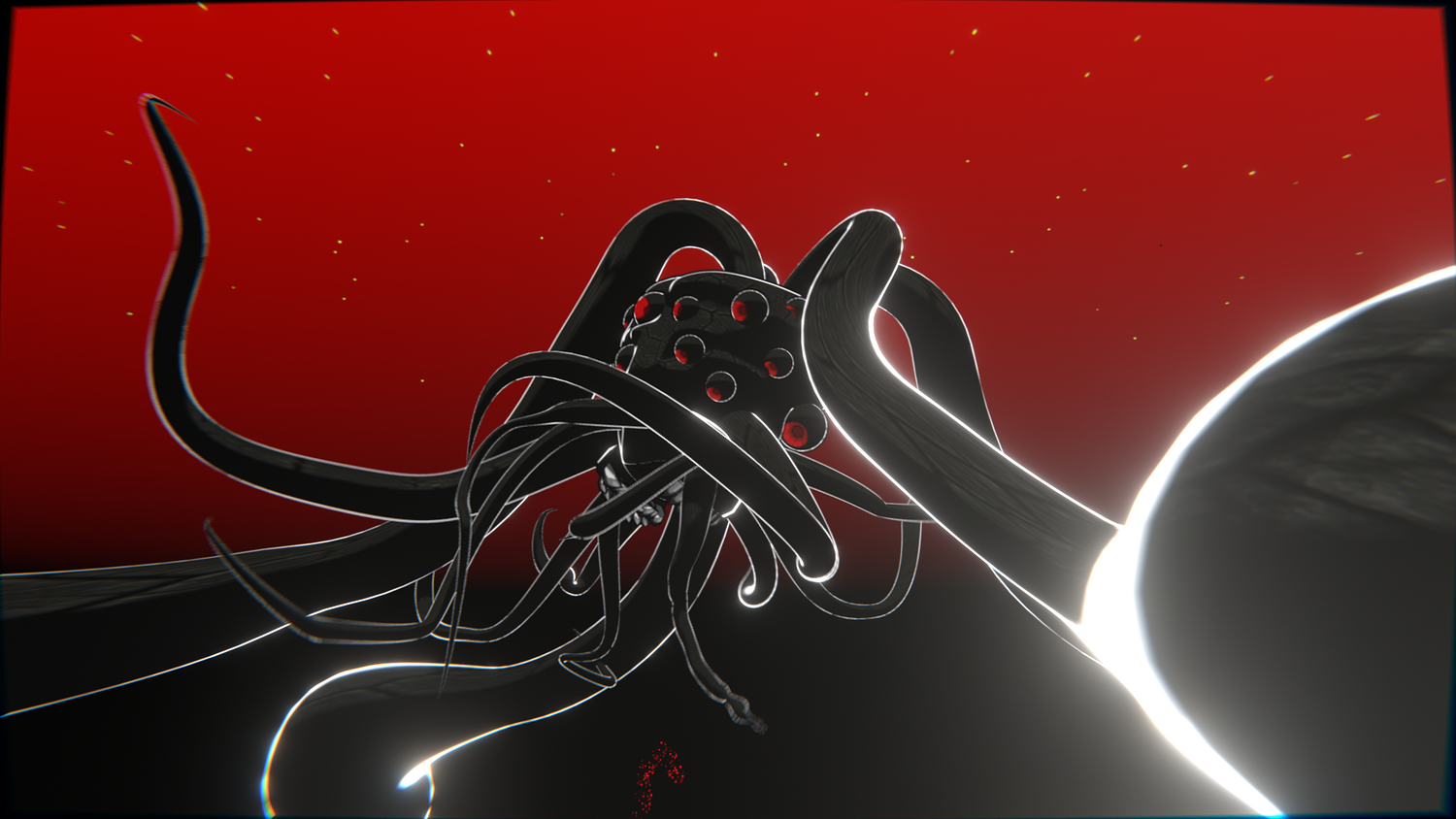 Dialogue Scene — Character talks while standing next to Cthulhu. (~1000 frames)
