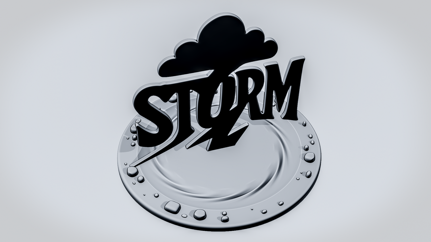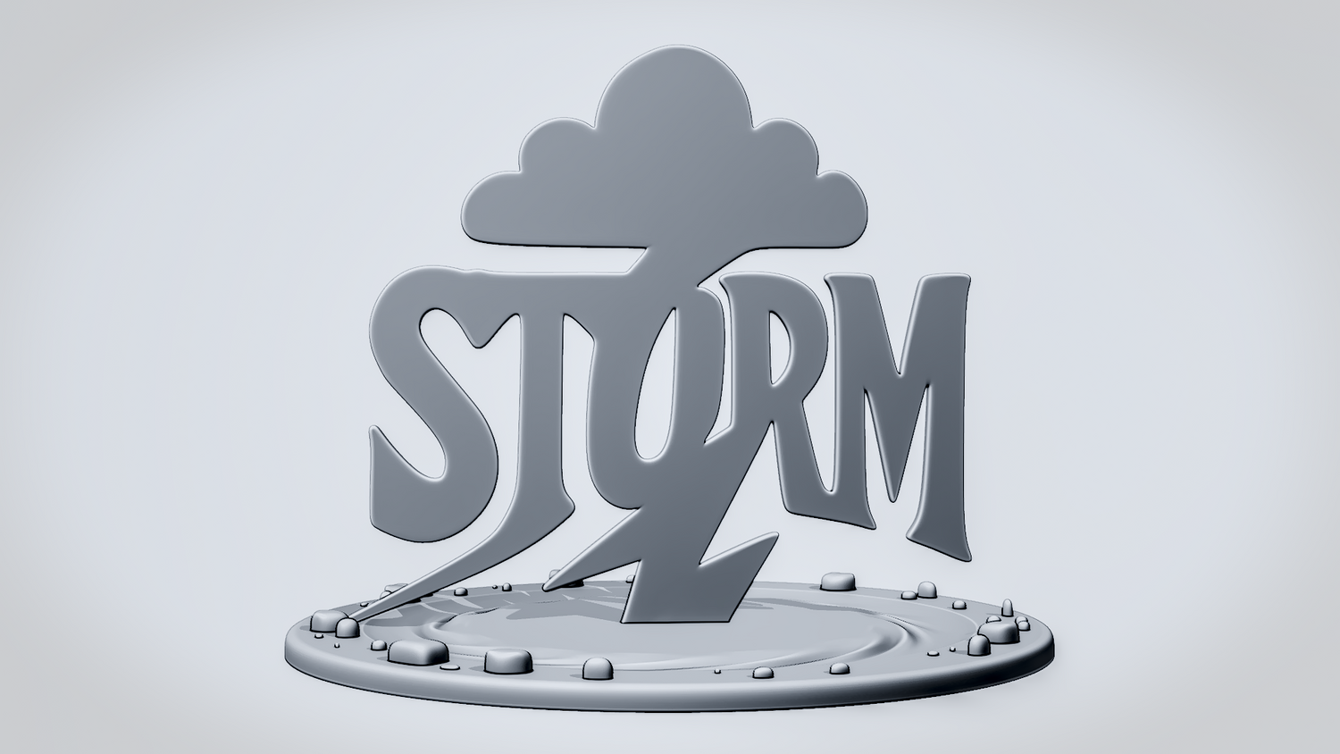 Statue Version: The statue version presents STORM as a freestanding display piece on a round decorative base with weather-inspired details that complement the lightning and cloud design. It keeps the lettering, cloud silhouette, and bolt clearly visible while giving the model a polished, display-ready presence for desks, shelves, or themed setups.