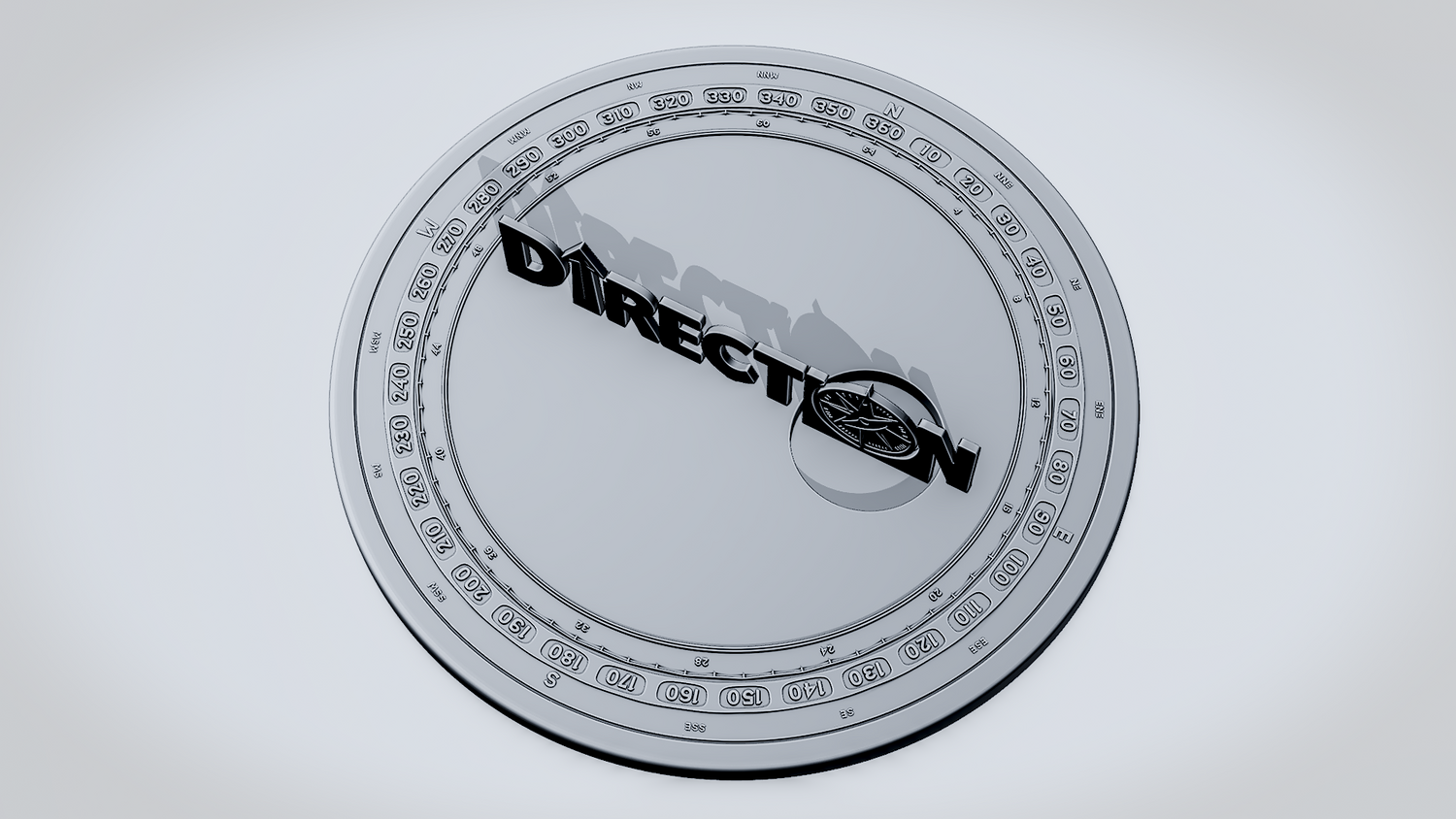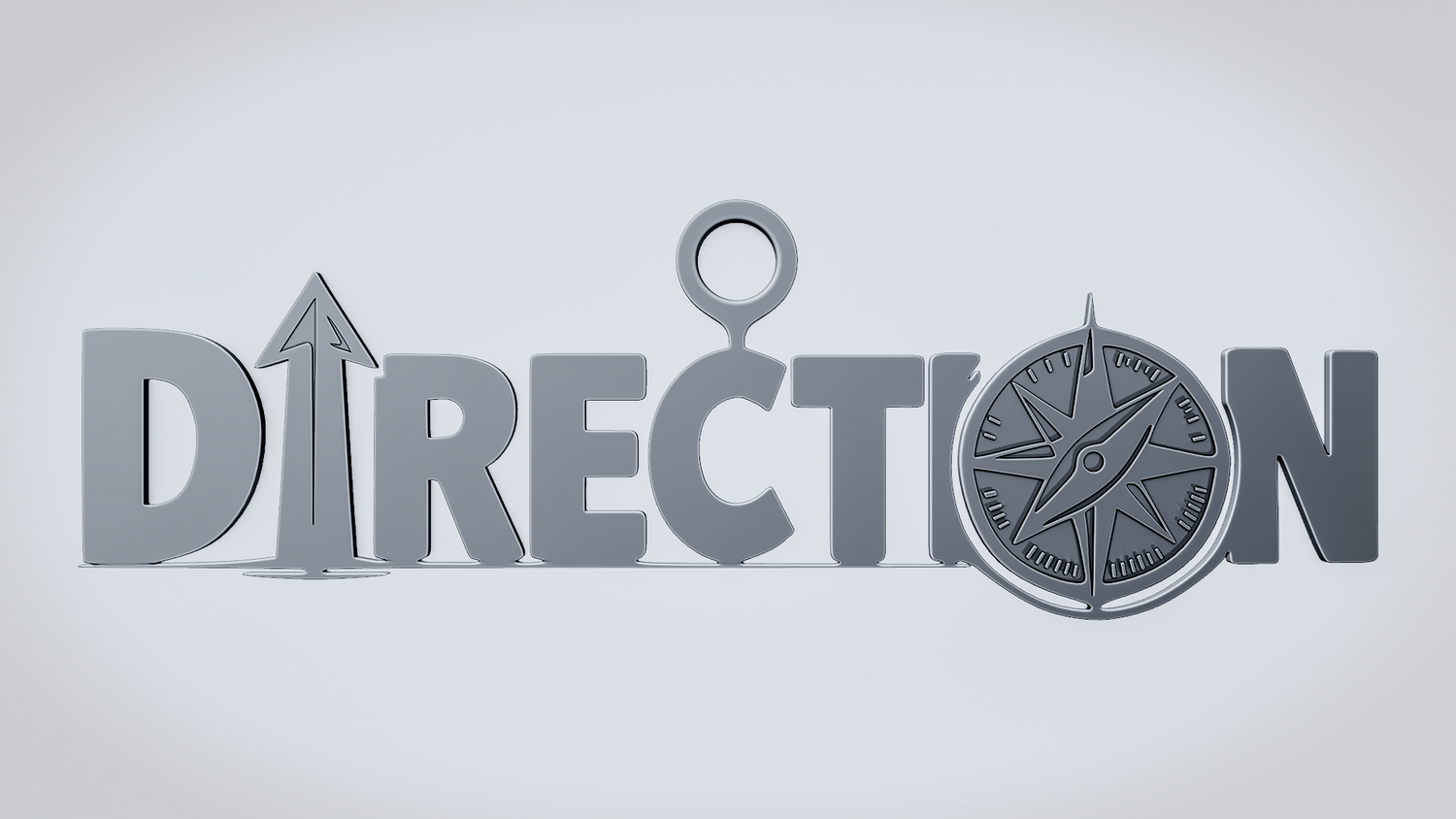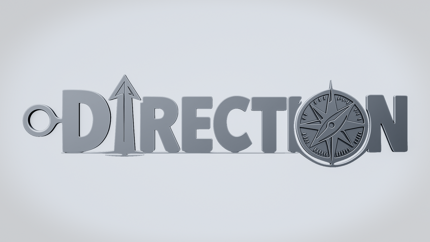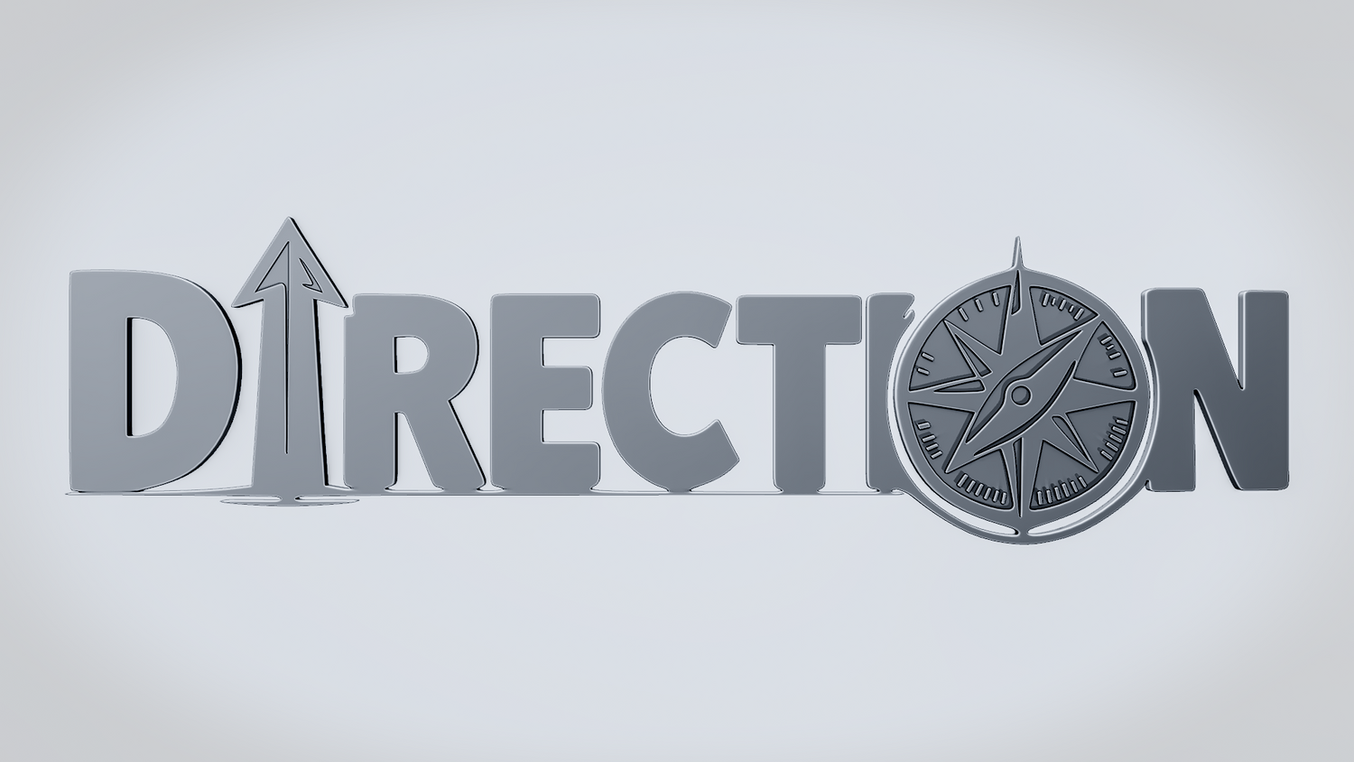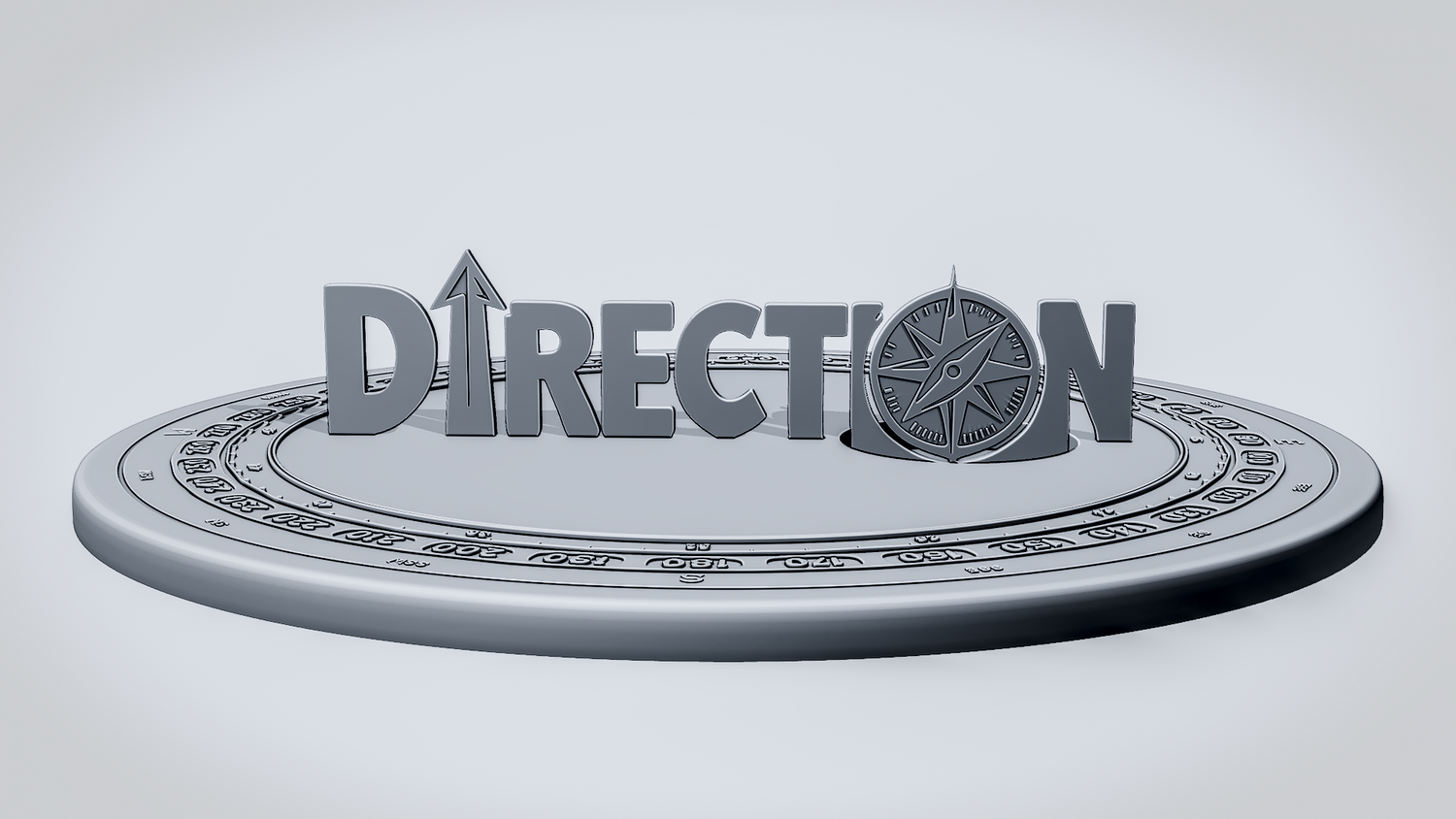 A solid 3D printable design featuring the word DIRECTION in a bold, clean layout, with an upward arrow integrated into the lettering and a compass replacing the O. The overall shape gives the model a strong navigation theme while keeping the design sturdy, readable, and visually striking.