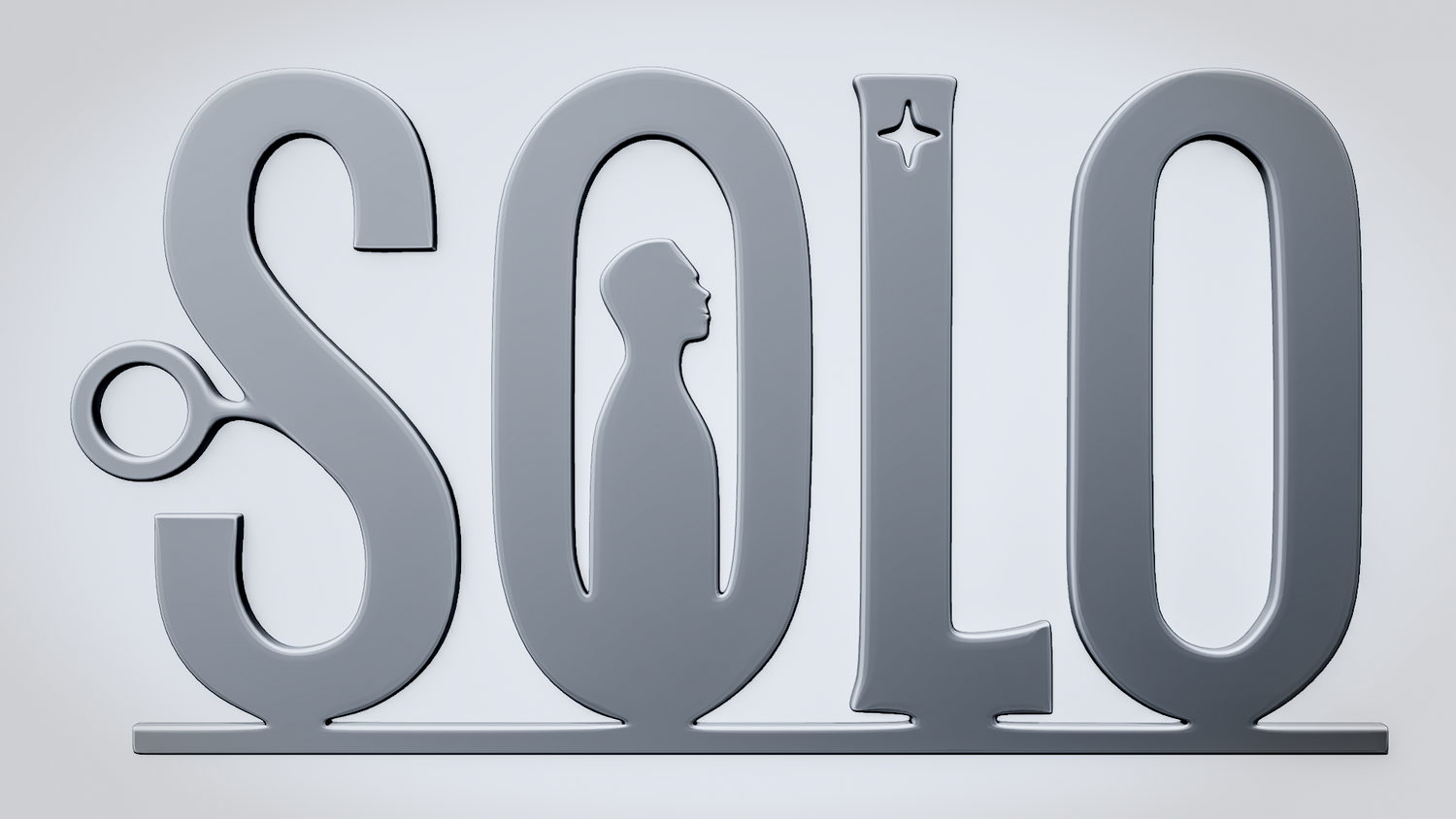 A solid 3D printable design featuring the word SOLO in a clean, bold style, with a lone human silhouette integrated into the lettering to reinforce the independent, self-contained theme. The overall shape is simple, readable, and visually balanced, making it suitable both as an accessory piece and as a decorative printed model.