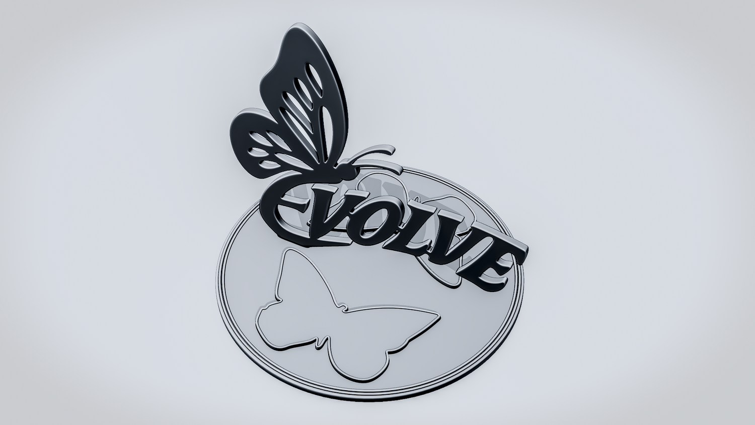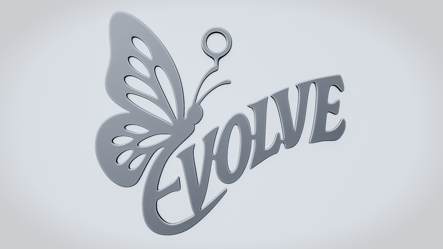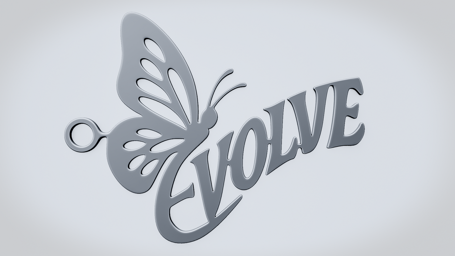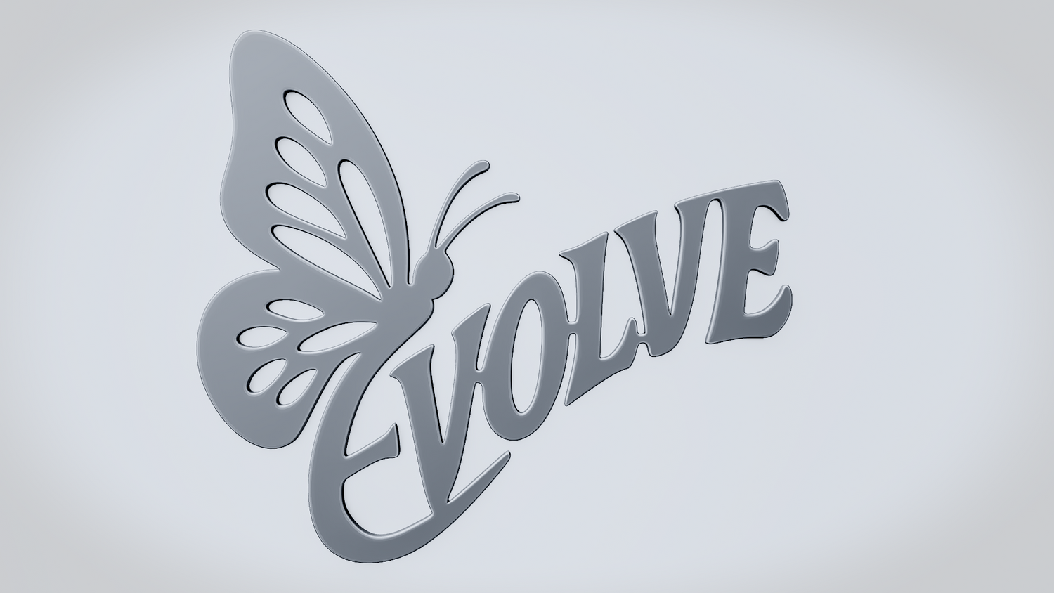 A solid 3D printable design featuring the word EVOLVE paired with a large butterfly silhouette that blends transformation and elegance into one clear composition. The overall shape feels graceful, uplifting, and visually balanced while keeping the word readable and the model sturdy.