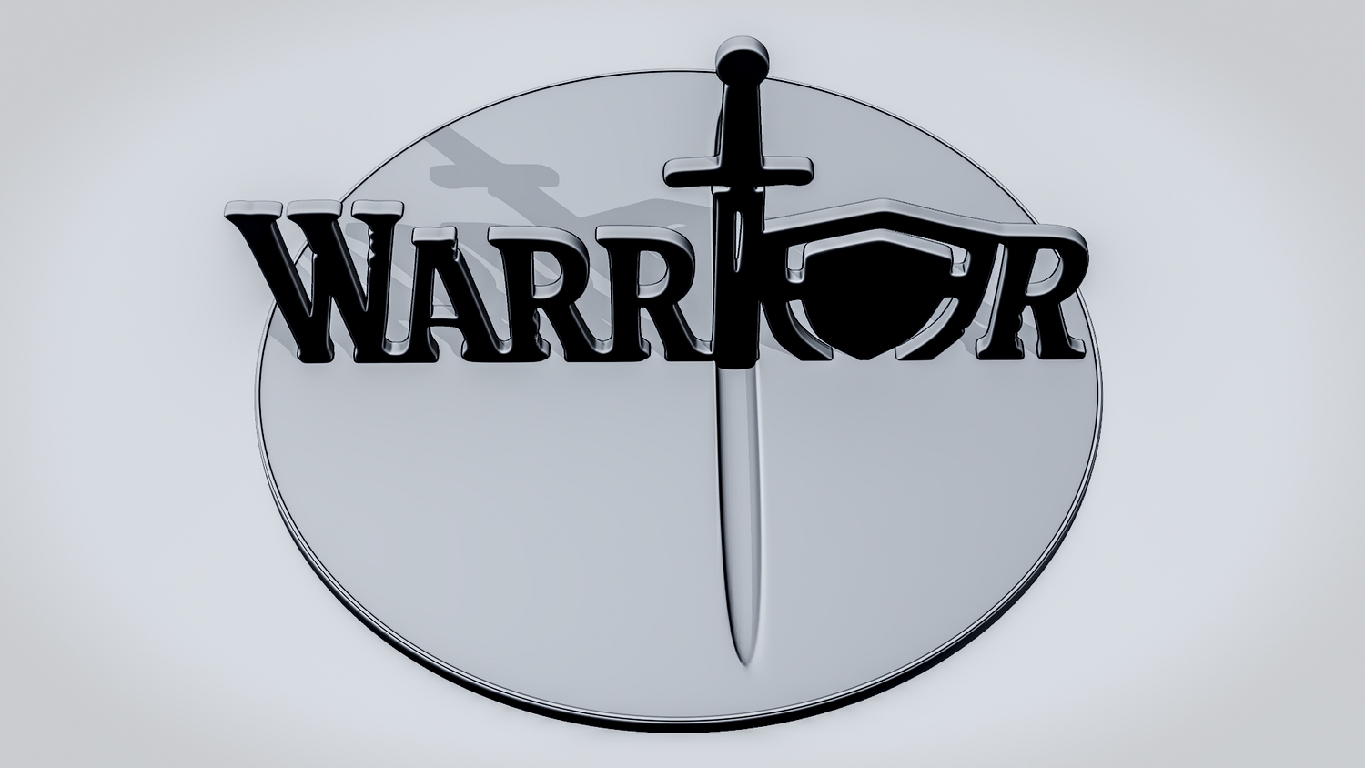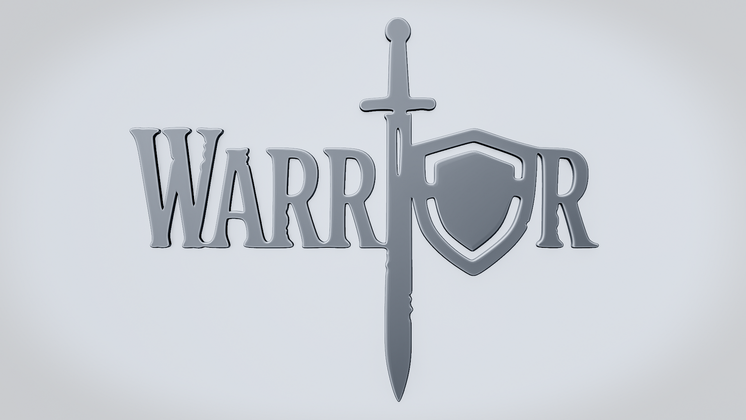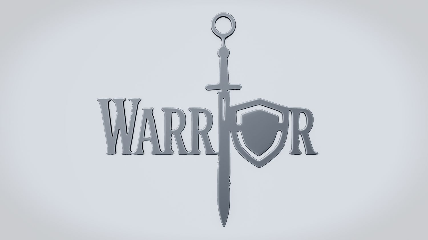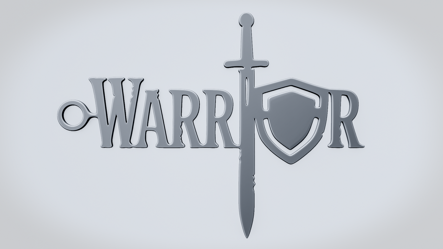 A solid 3D printable design featuring the word WARRIOR in a bold, commanding script style, with strong strokes and determined curves that convey strength, resilience, and courage. The overall shape feels smooth, clean, and visually balanced while keeping the word readable and the model sturdy.