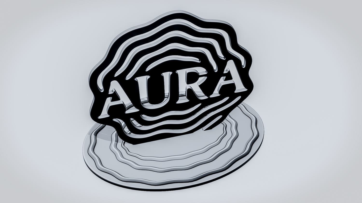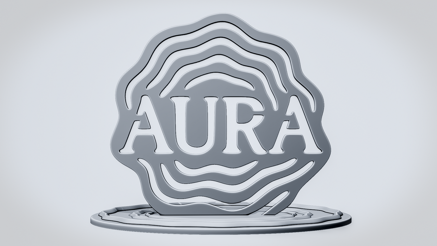 Statue Version: The statue version presents AURA as a freestanding display piece on a round decorative base with matching layered ripple details that strengthen the energetic, wave-like theme. It keeps the word and surrounding contours clearly visible while giving the model a polished, showcase-ready presence for desks, shelves, or display setups.