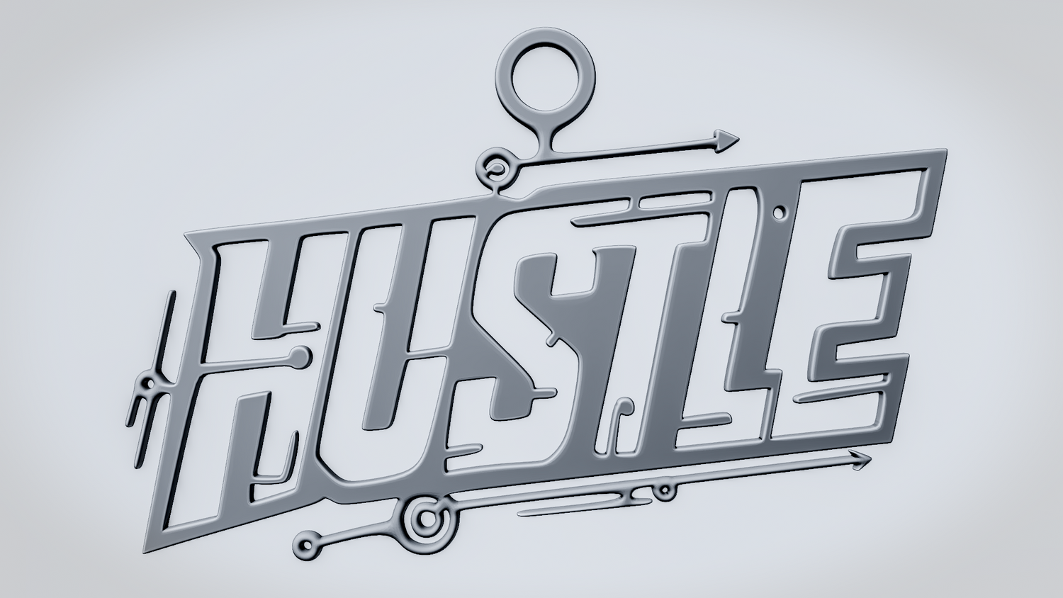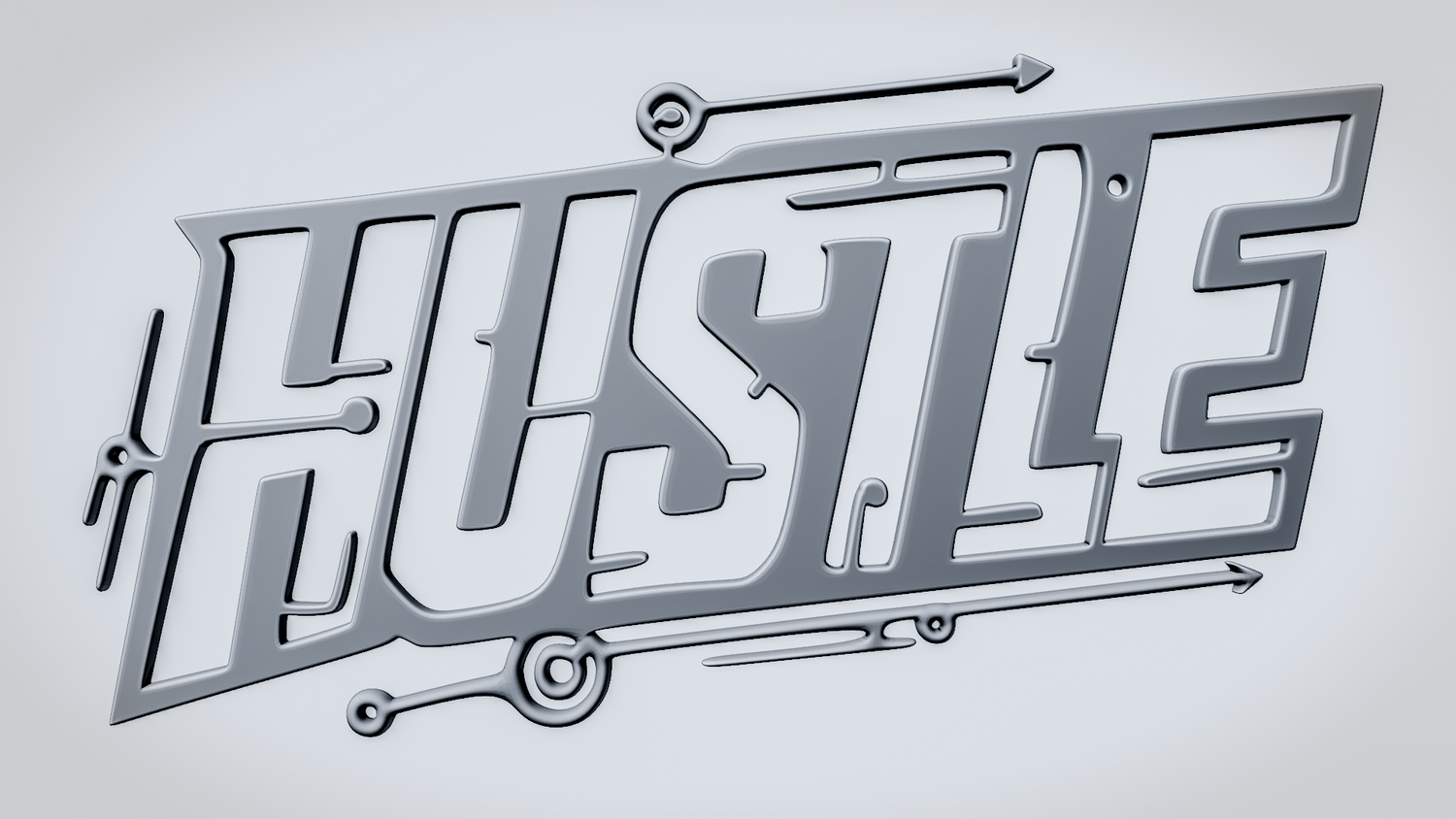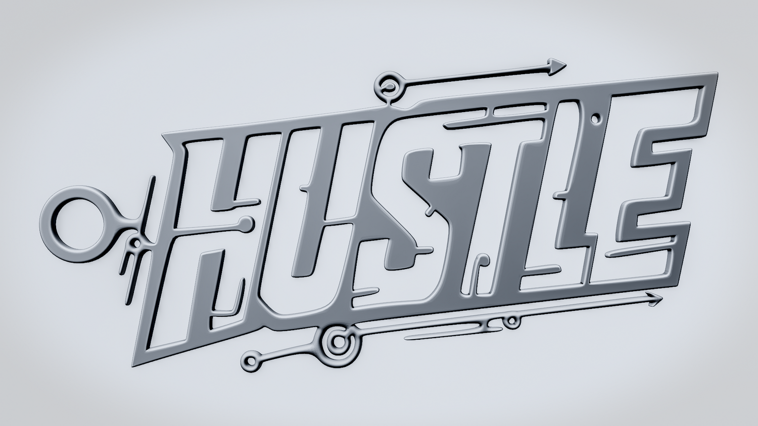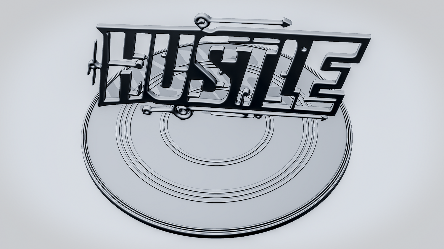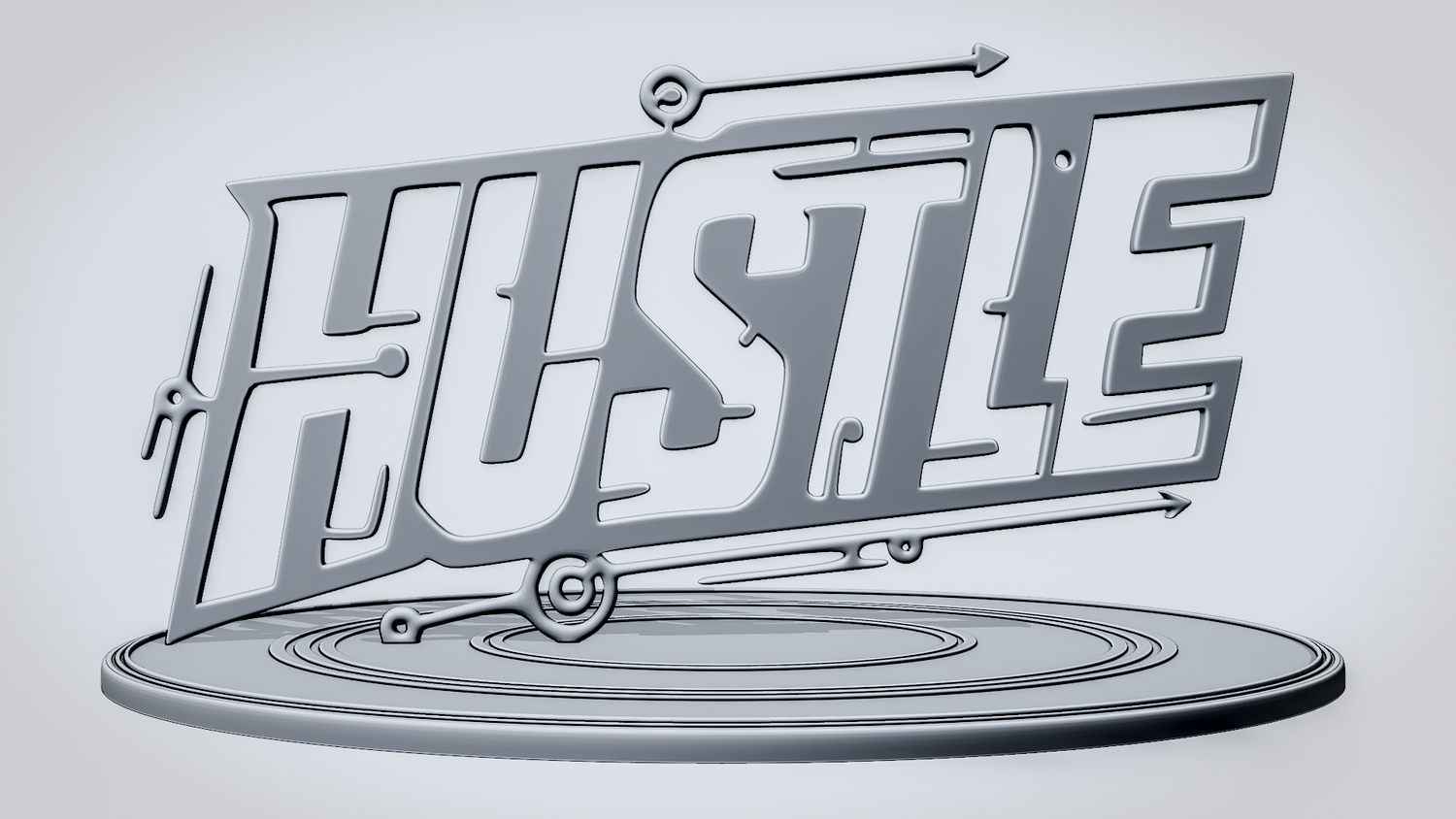 Statue Version: The statue version presents HUSTLE as a freestanding display piece on a round decorative base with layered circular details that complement the sleek tech-inspired theme. It keeps the angular lettering and circuit accents clearly visible while giving the model a polished, display-ready presence for desks, shelves, or workspaces.