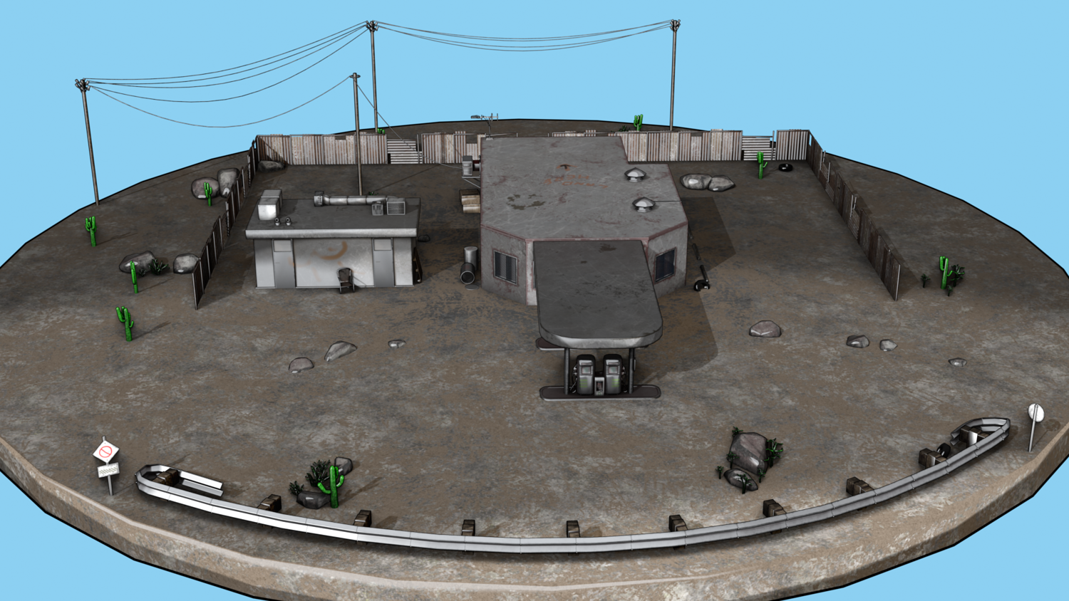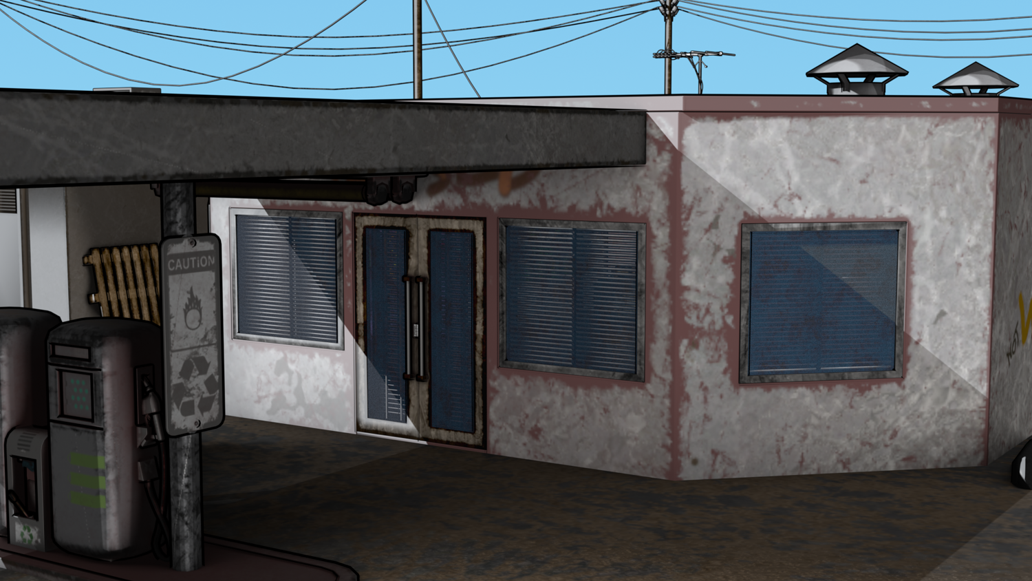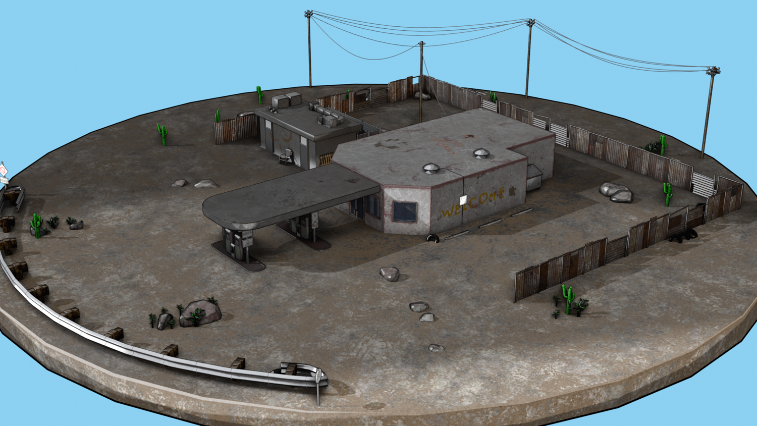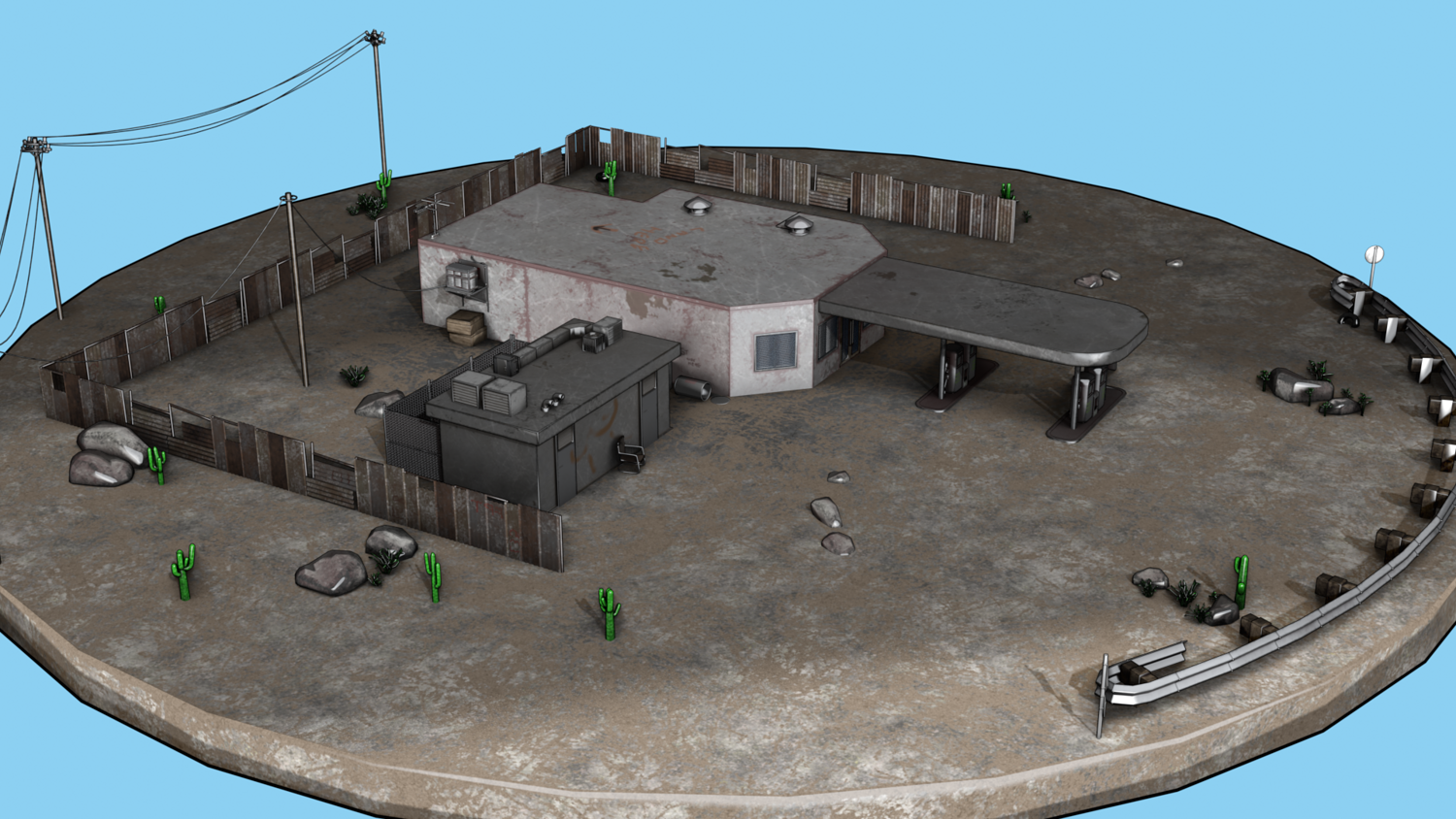 Abandoned Petrol Station Relevant to American road petrol stations. UV Unwrapped and textured. Comes with textures at 2k and 4k resolution.