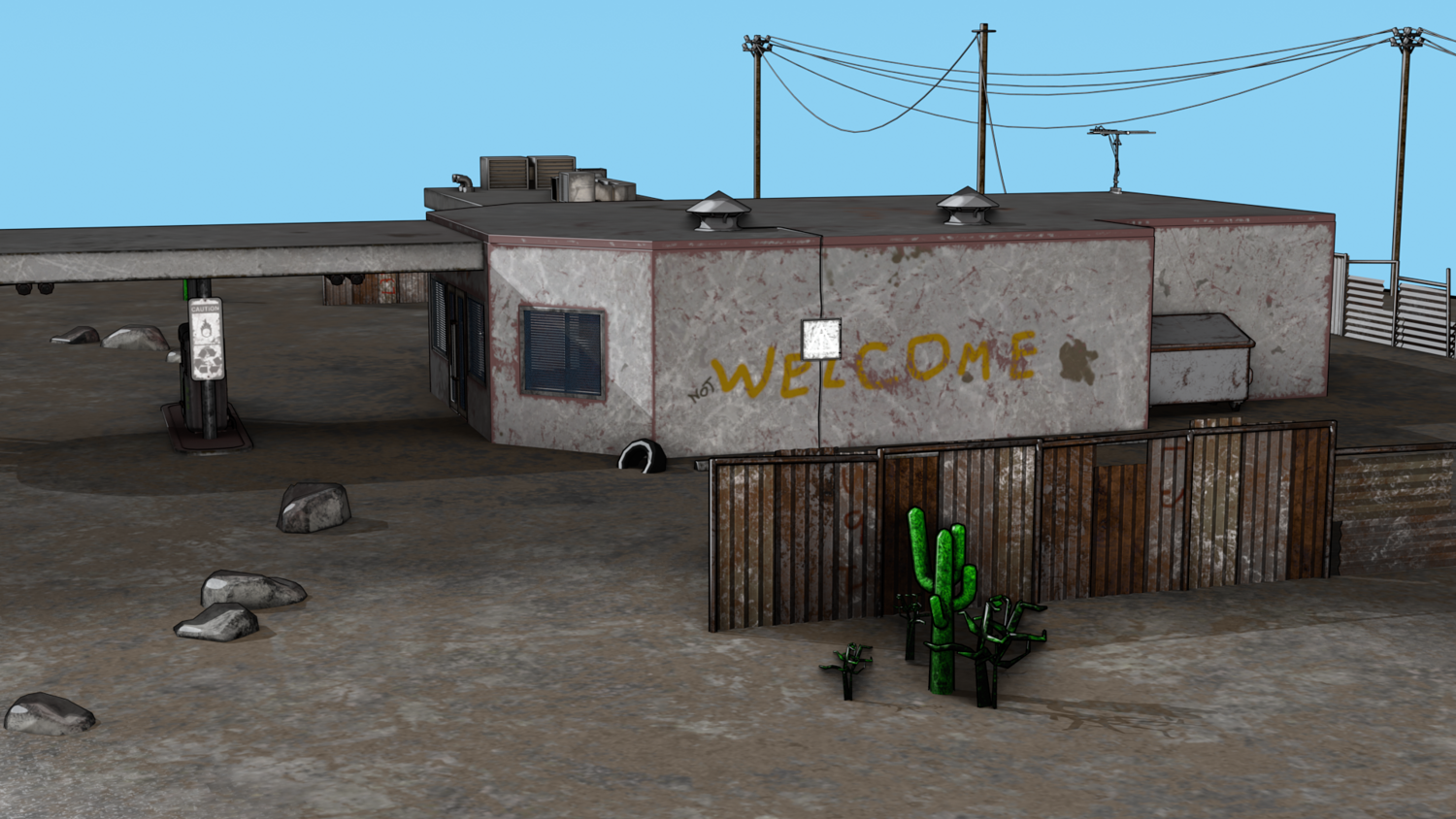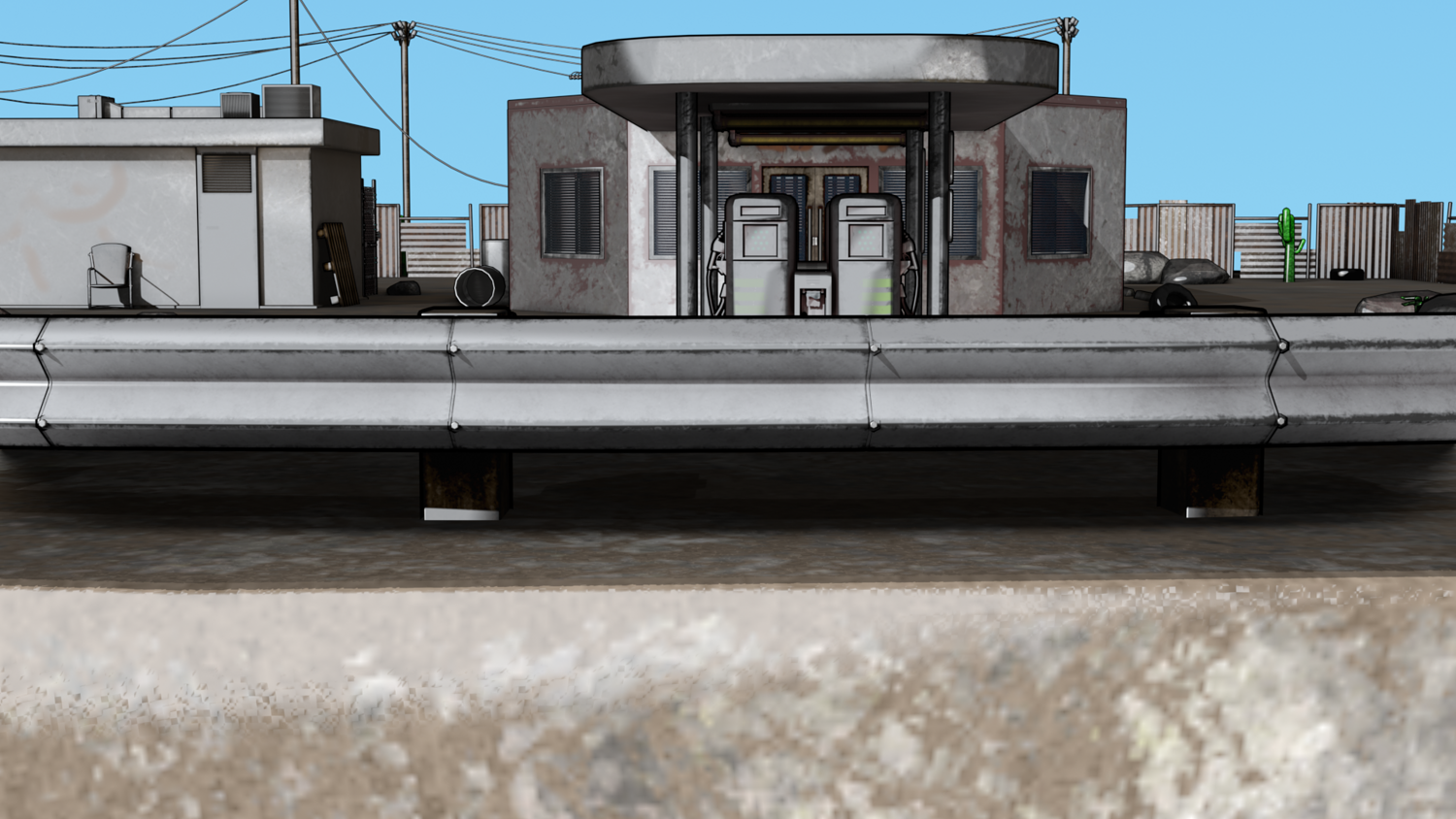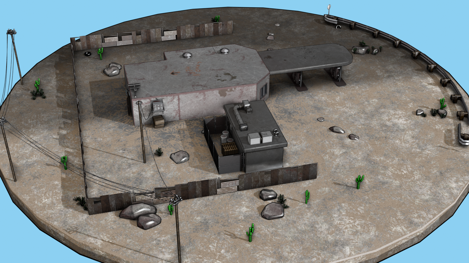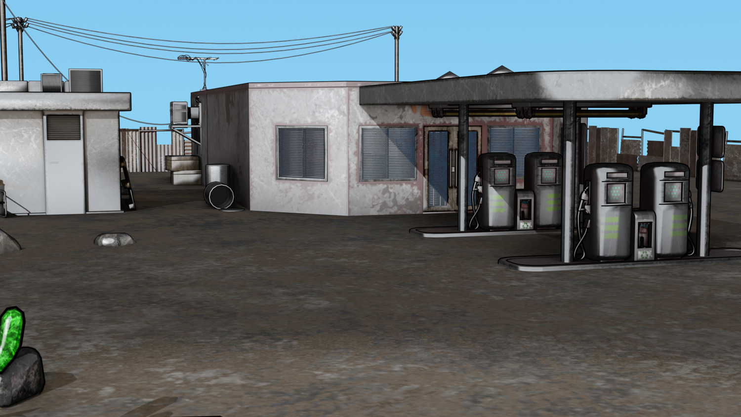 Abandoned Petrol Station Relevant to American road petrol stations. UV Unwrapped and textured. Comes with textures at 2k and 4k resolution.