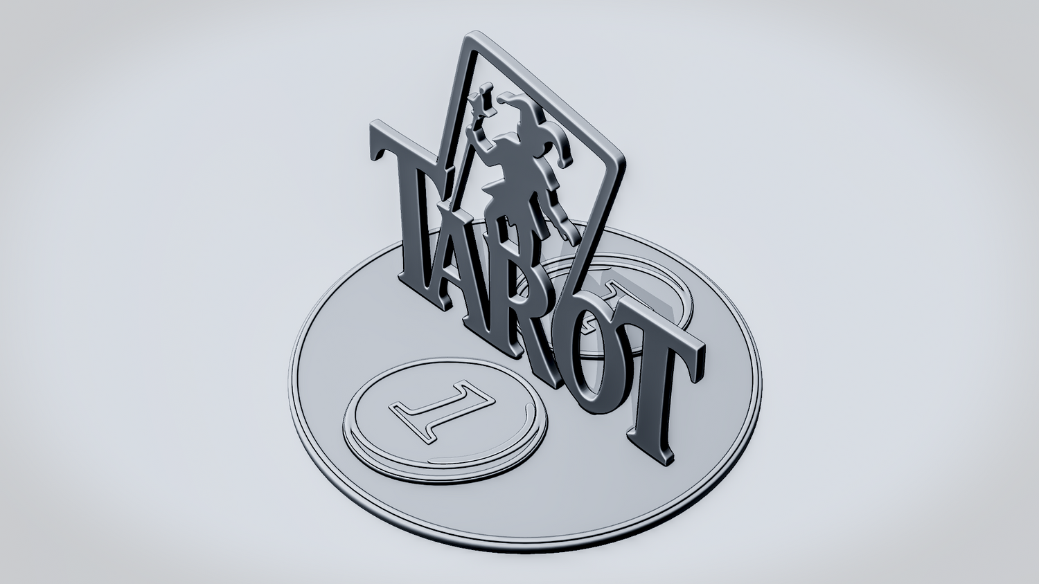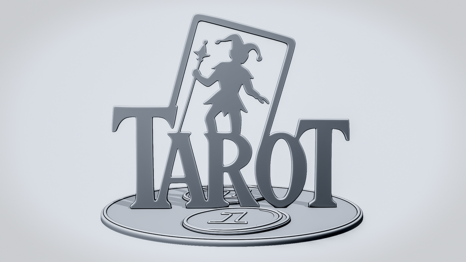 Statue Version: The statue version presents TAROT as a freestanding display piece on a round decorative base with a numbered coin-like detail that strengthens the card-reading theme. It keeps the tarot card silhouette and lettering clearly visible while giving the model a polished, display-ready presence for desks, shelves, or themed setups.