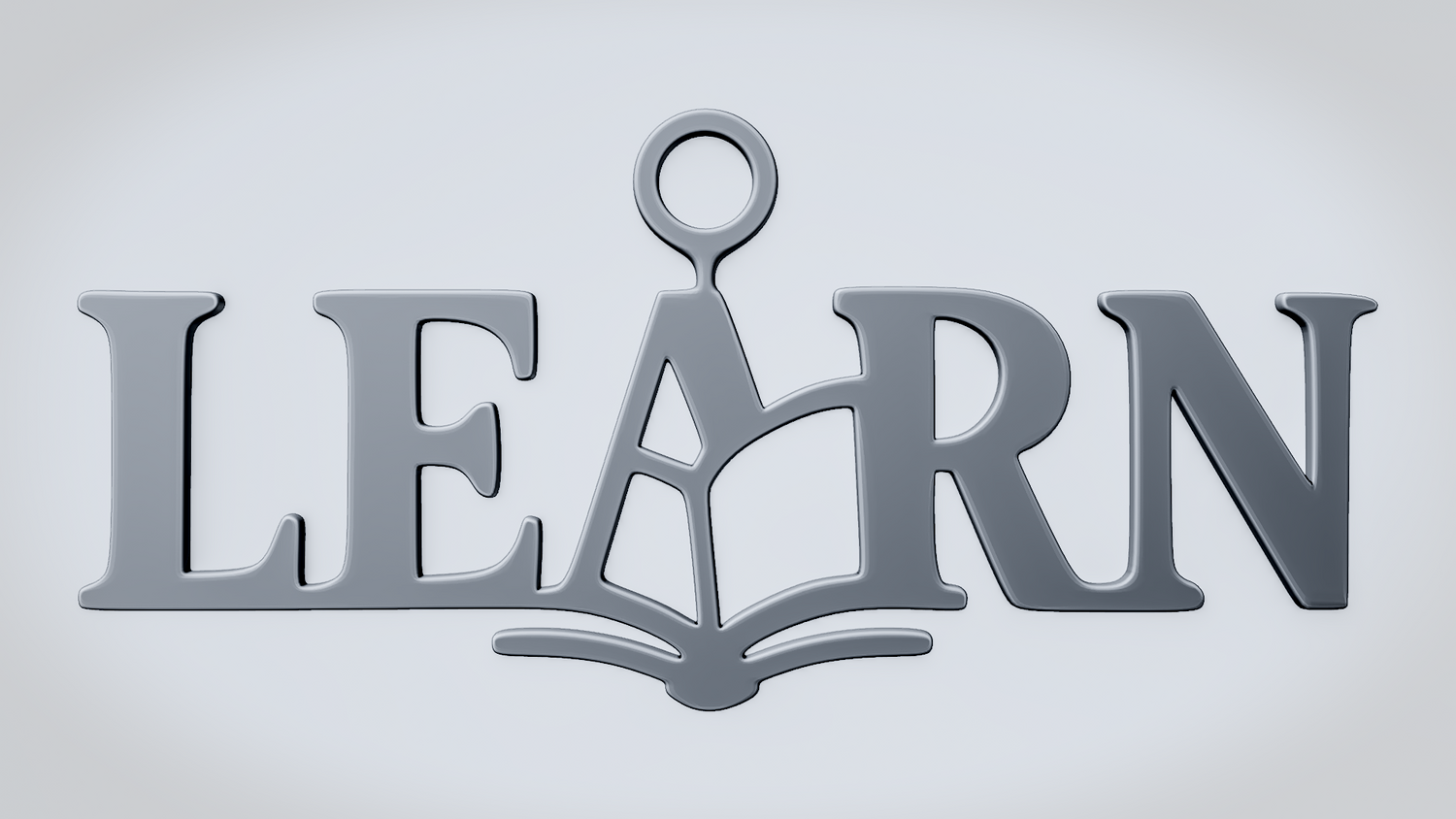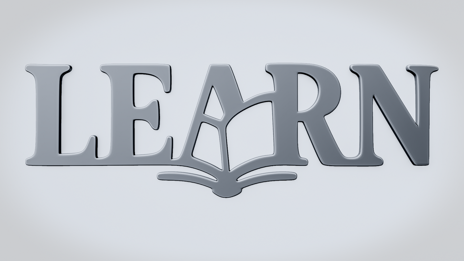 A solid 3D printable design featuring the word LEARN in a bold serif style, with an open book integrated into the lettering to reinforce the theme of knowledge and study. The overall shape is clean, readable, and visually balanced, making it suitable both as an accessory piece and as a decorative printed model.