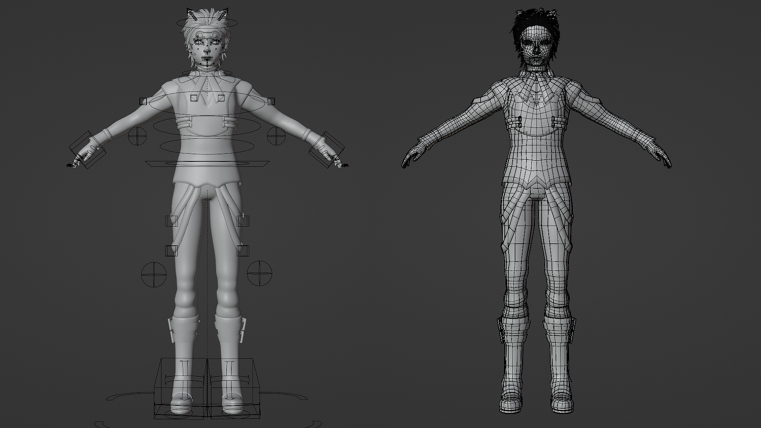 Rigged character with facial controls.