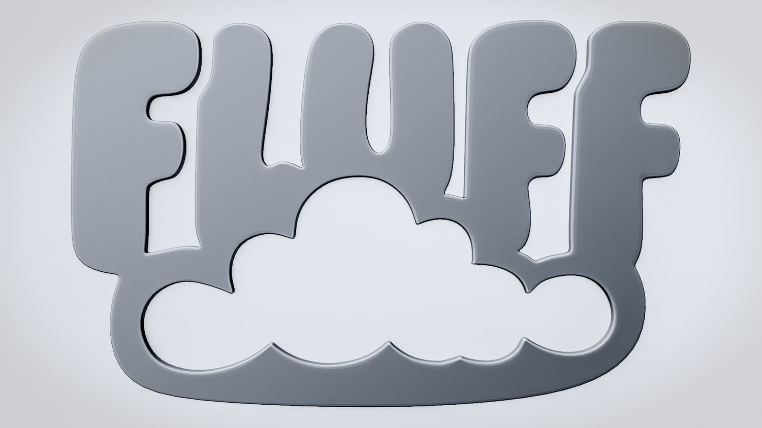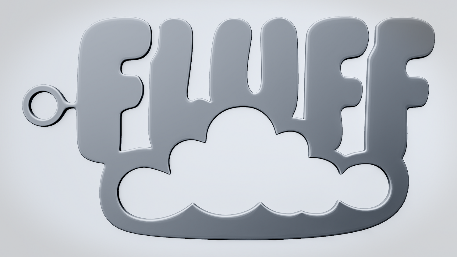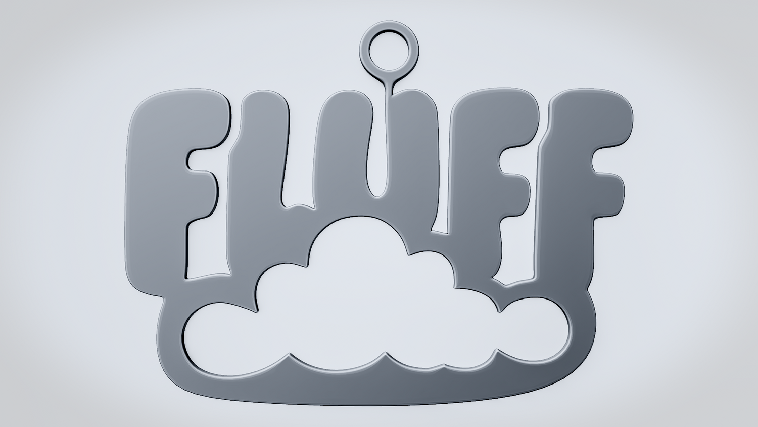 A solid 3D printable design featuring the word FLUFF in a soft rounded style, resting on a fluffy cloud-like shape that gives it a light and cozy look. The overall form feels playful, puffy, and easy to read while keeping the design sturdy and visually balanced.