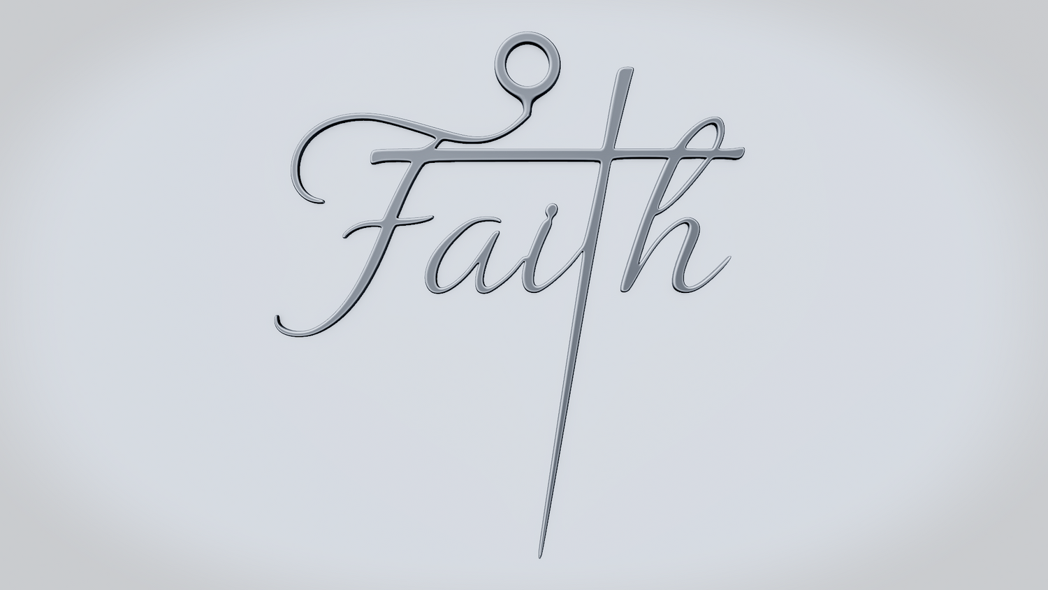 A solid 3D printable design featuring the word FAITH in an elegant flowing script, crossed by a long slender cross that becomes the core visual element of the piece. The overall shape feels spiritual, clean, and graceful while keeping the word readable and the model sturdy.