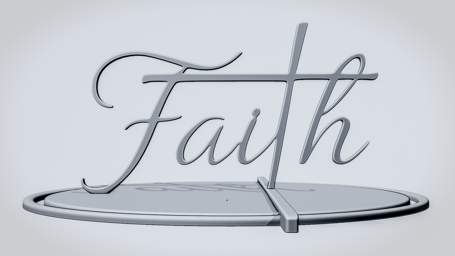 Statue Version: The statue version presents FAITH as a freestanding display piece on a round decorative base, with the tall cross extending through the composition for a strong symbolic presence. It keeps the script lettering and cross clearly visible while giving the model a polished, display-ready look for desks, shelves, or themed setups.