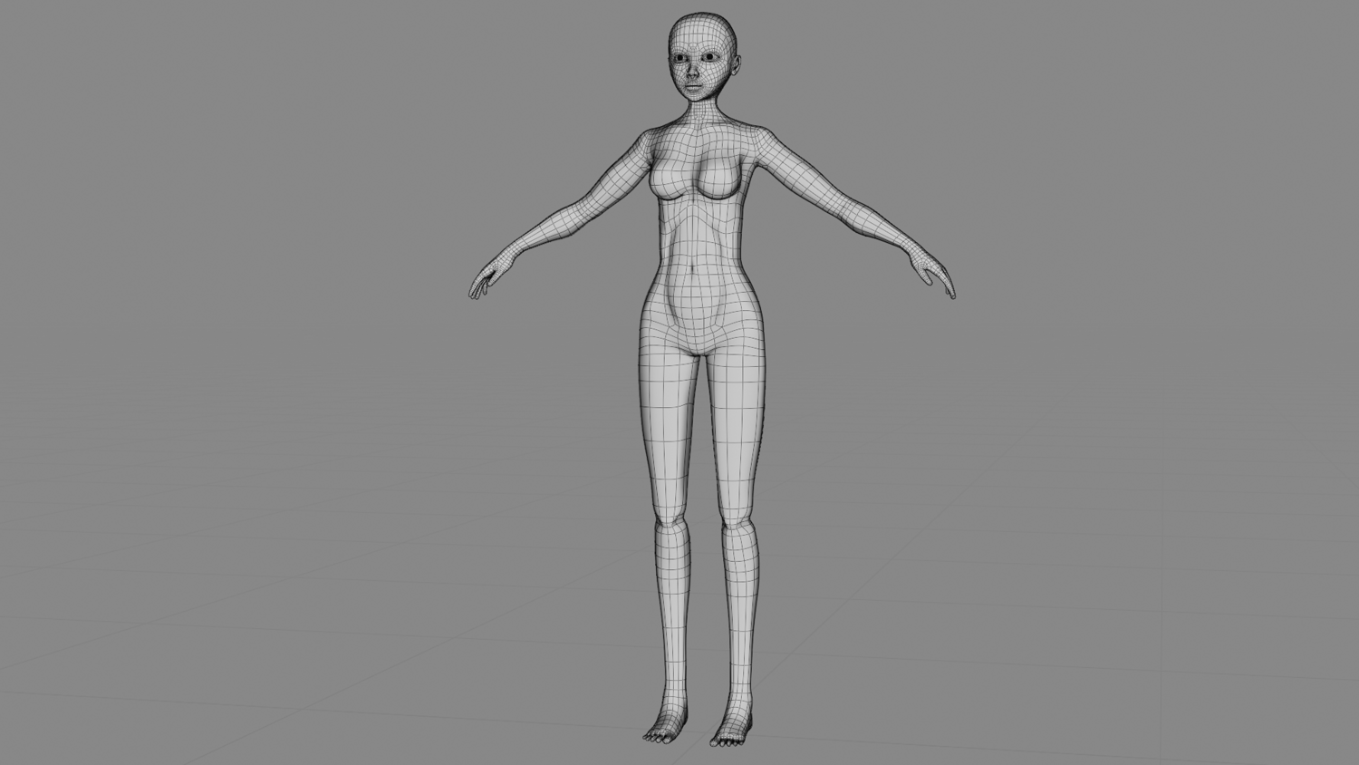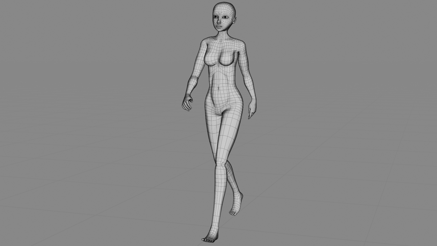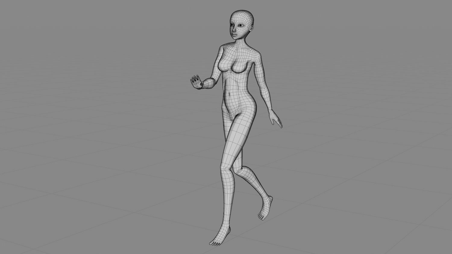 High-quality grid-based topology with well-placed poles for clean deformation. Optimized for animation, easy to sculpt/edit. Slightly posed body shape. Fully rigged with walk and run cycles.