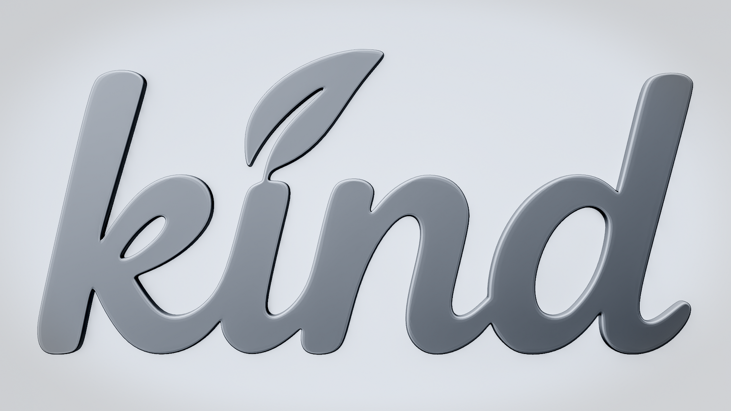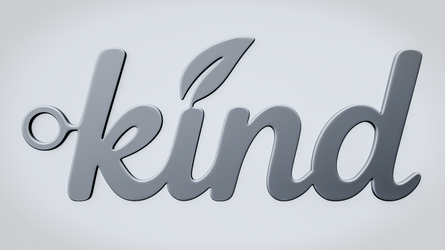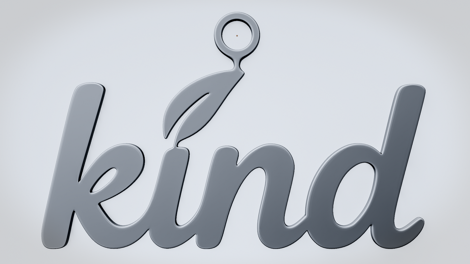 A solid 3D printable design featuring the word KIND in a soft, rounded script style with a small leaf accent that reinforces a gentle and natural theme. The overall shape feels friendly, clean, and visually balanced while keeping the word readable and the model sturdy.