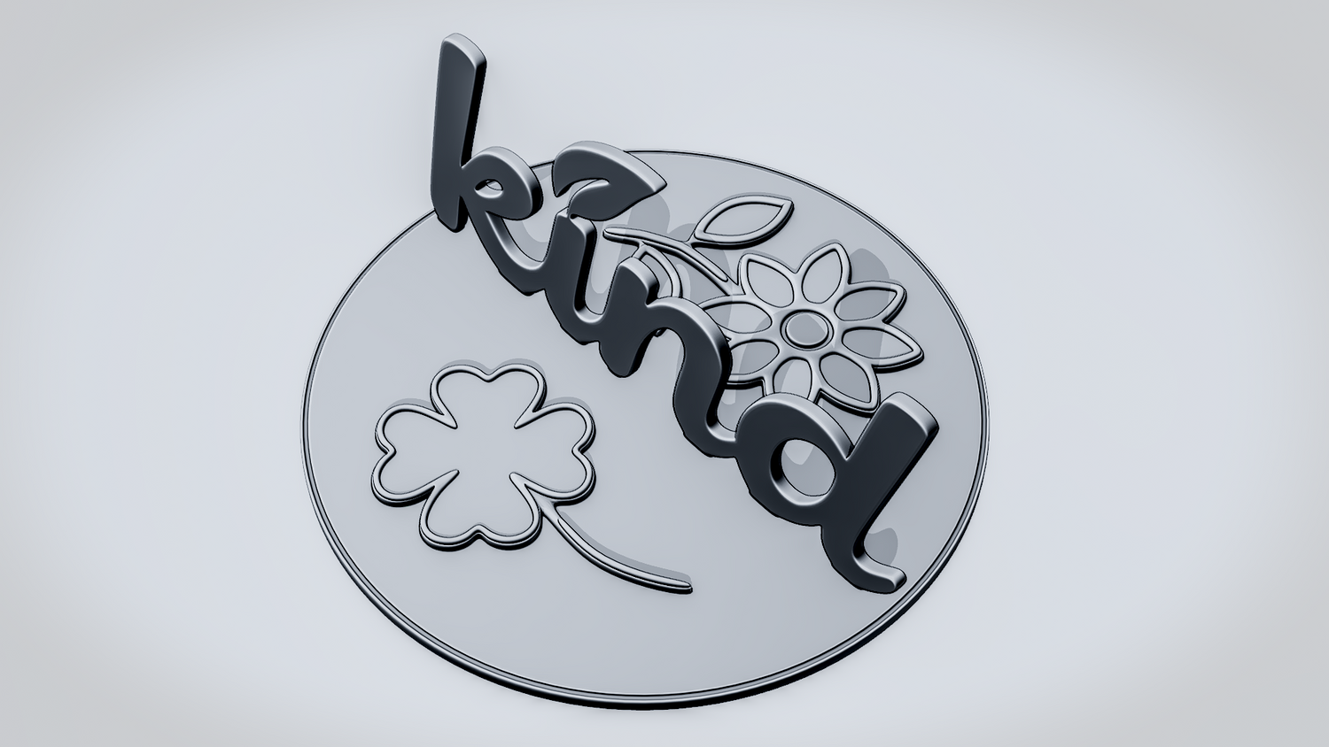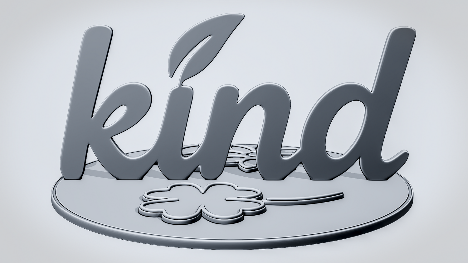 Statue Version: The statue version presents KIND as a freestanding display piece on a round decorative base with a floral motif and clover-like detail that complement the warm, positive design. It keeps the script lettering and nature-inspired accents clearly visible while giving the model a polished, display-ready presence for desks, shelves, or themed setups.