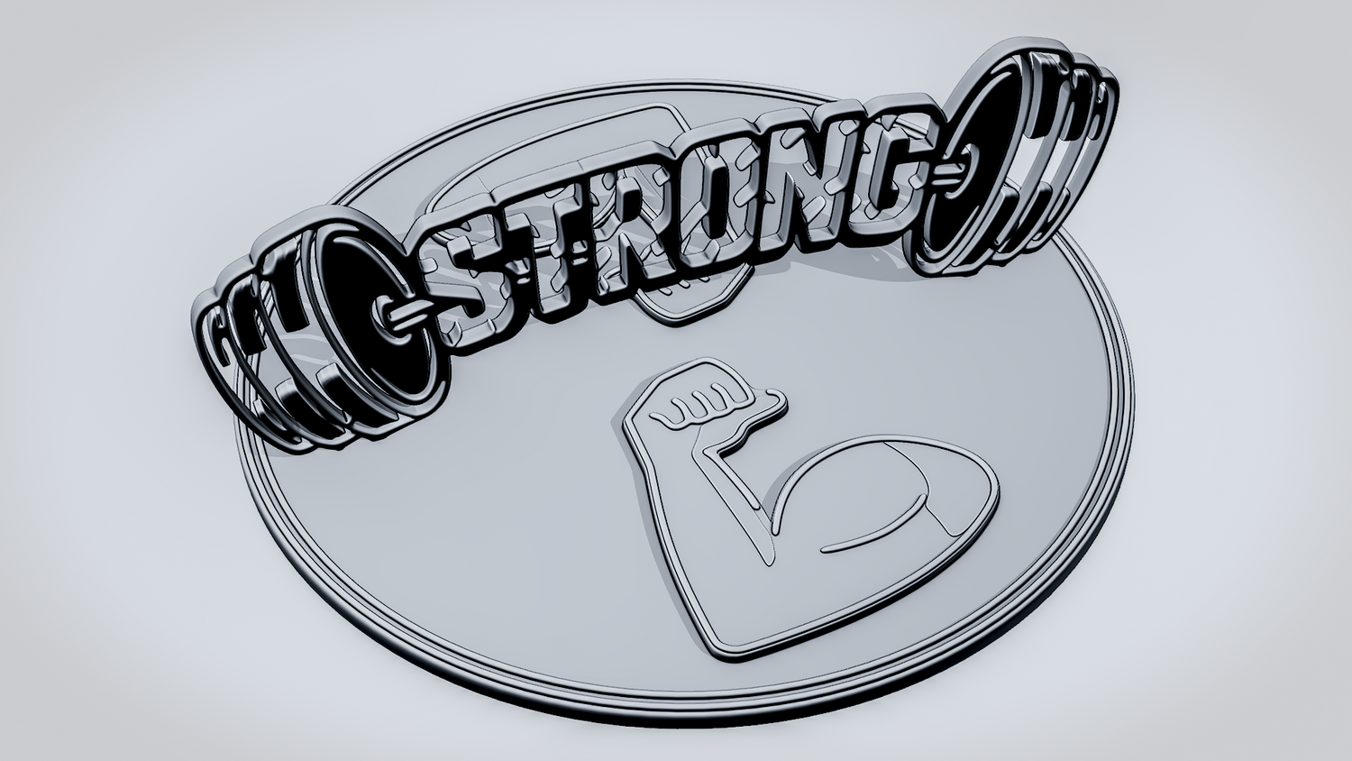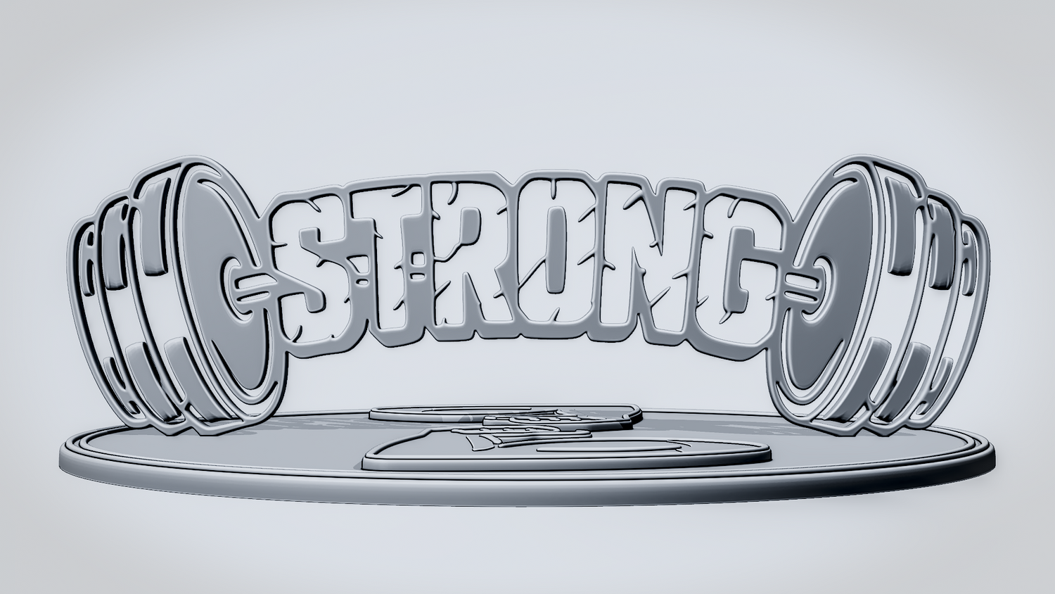 Statue Version: The statue version presents STRONG as a freestanding display piece on a round decorative base with a flexed-arm icon that complements the gym-inspired design. It keeps the dumbbell silhouette, weight plates, and lettering clearly visible while giving the model a polished, display-ready presence for desks, shelves, or workout spaces.