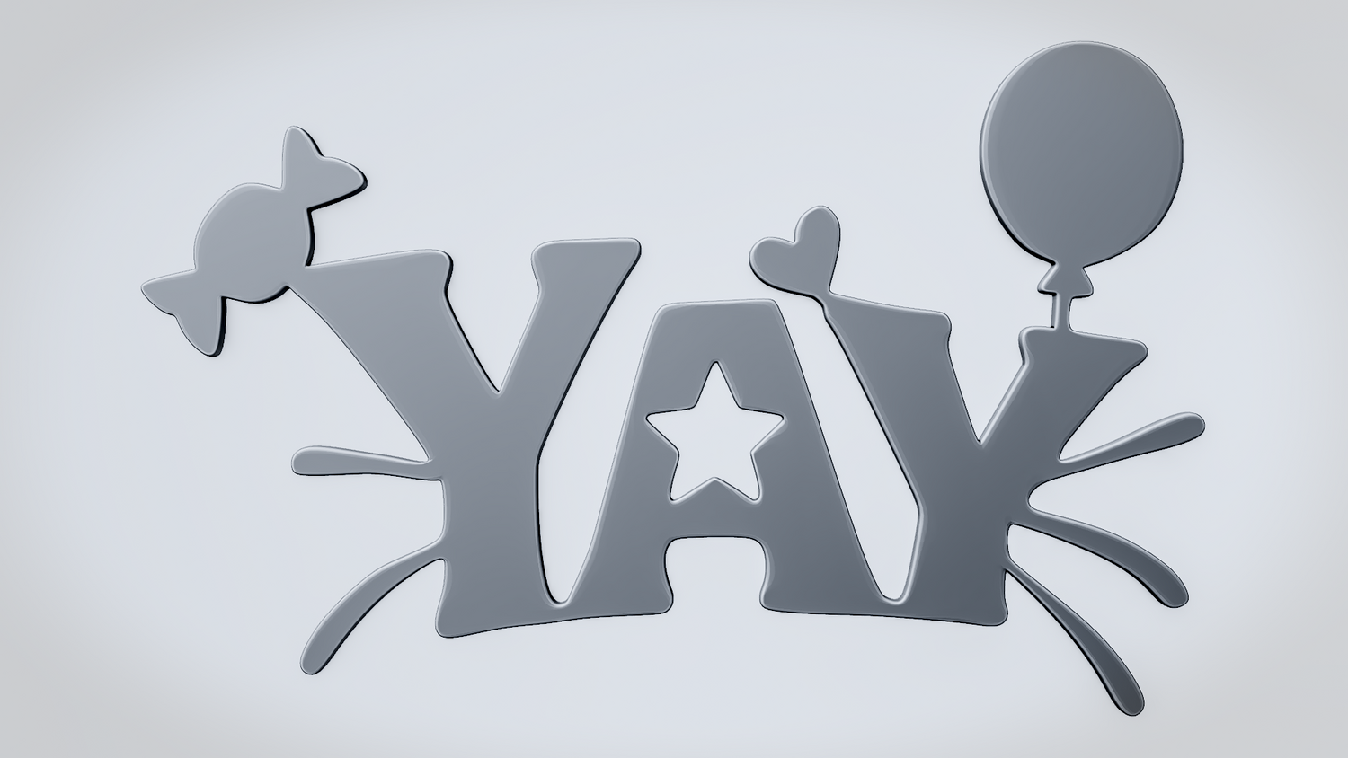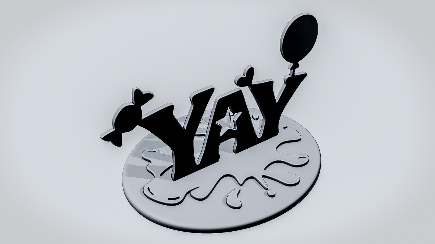 Statue Version: The statue version presents YAY as a freestanding display piece on a round decorative base with splash-like party details that enhance the cheerful celebration theme. It keeps the bold lettering and playful accents clearly visible while giving the model a polished, display-ready presence for desks, shelves, or party-themed décor.