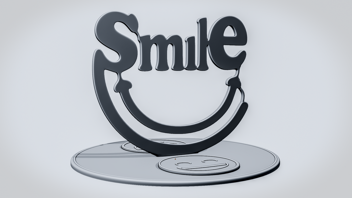 Statue Version: The statue version presents SMILE as a freestanding display piece on a round decorative base with embossed happy-face details that strengthen the joyful character of the design. It keeps the lettering and curved smile element clearly visible while giving the model a polished, display-ready presence for desks, shelves, or gift-themed setups.