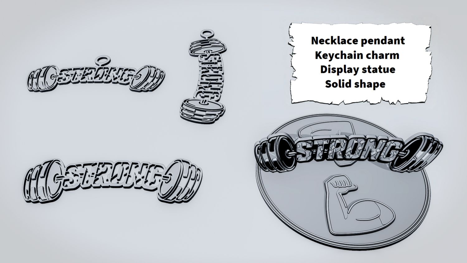 STL files for all included versions Original .Blend files with the Subdivision modifier not applied, making them easier to edit, customize, and adapt Statue Versions: Each word sign also includes a freestanding statue version designed for display on desks, shelves, offices, workspaces, gyms, or creative setups. These versions keep the same recognizable silhouettes as the accessory models while adding a stronger decorative presence through stable base compositions and power-themed details.