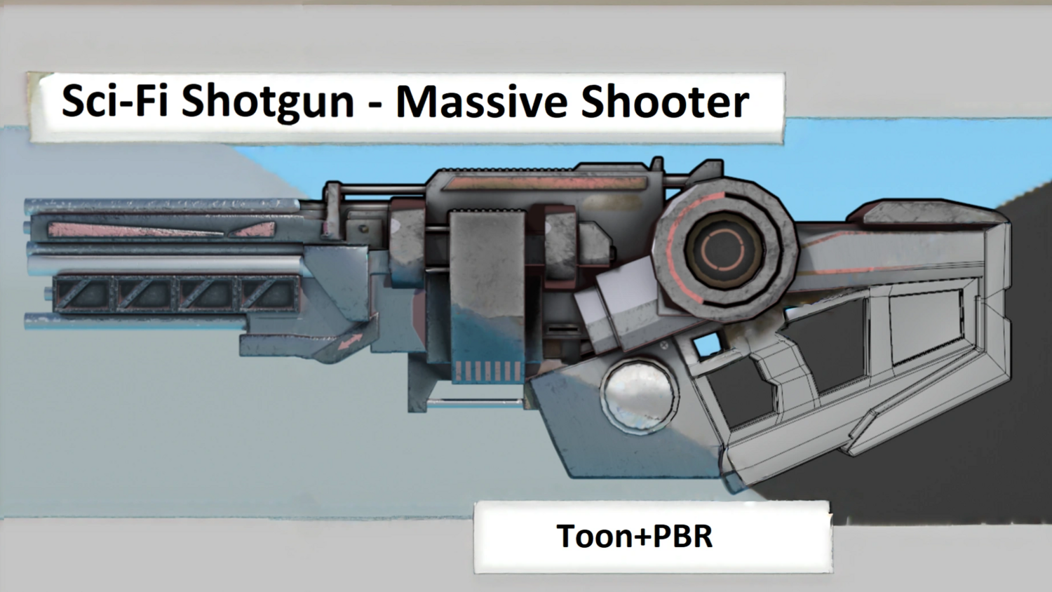 Massive Shooter – Industrial, high-caliber sci-fi shotgun with reinforced frame.