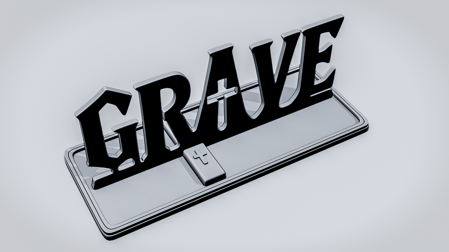 Statue Version: The statue version presents GRAVE as a freestanding display piece on a rectangular base with a raised cross detail that strengthens the cemetery-inspired concept. It keeps the word clearly visible while giving the design a more decorative and showcase-ready presence for desks, shelves, or display setups.