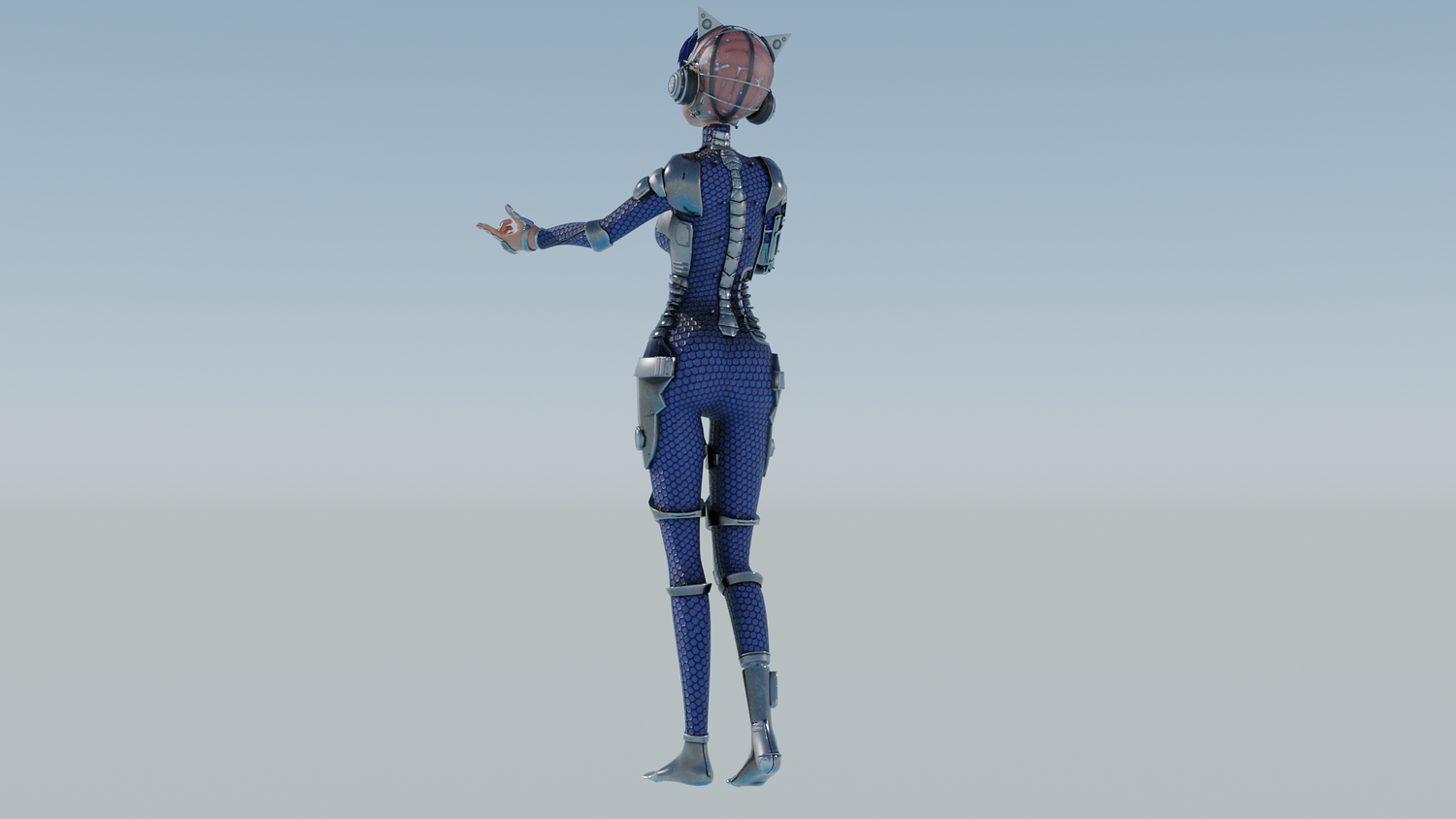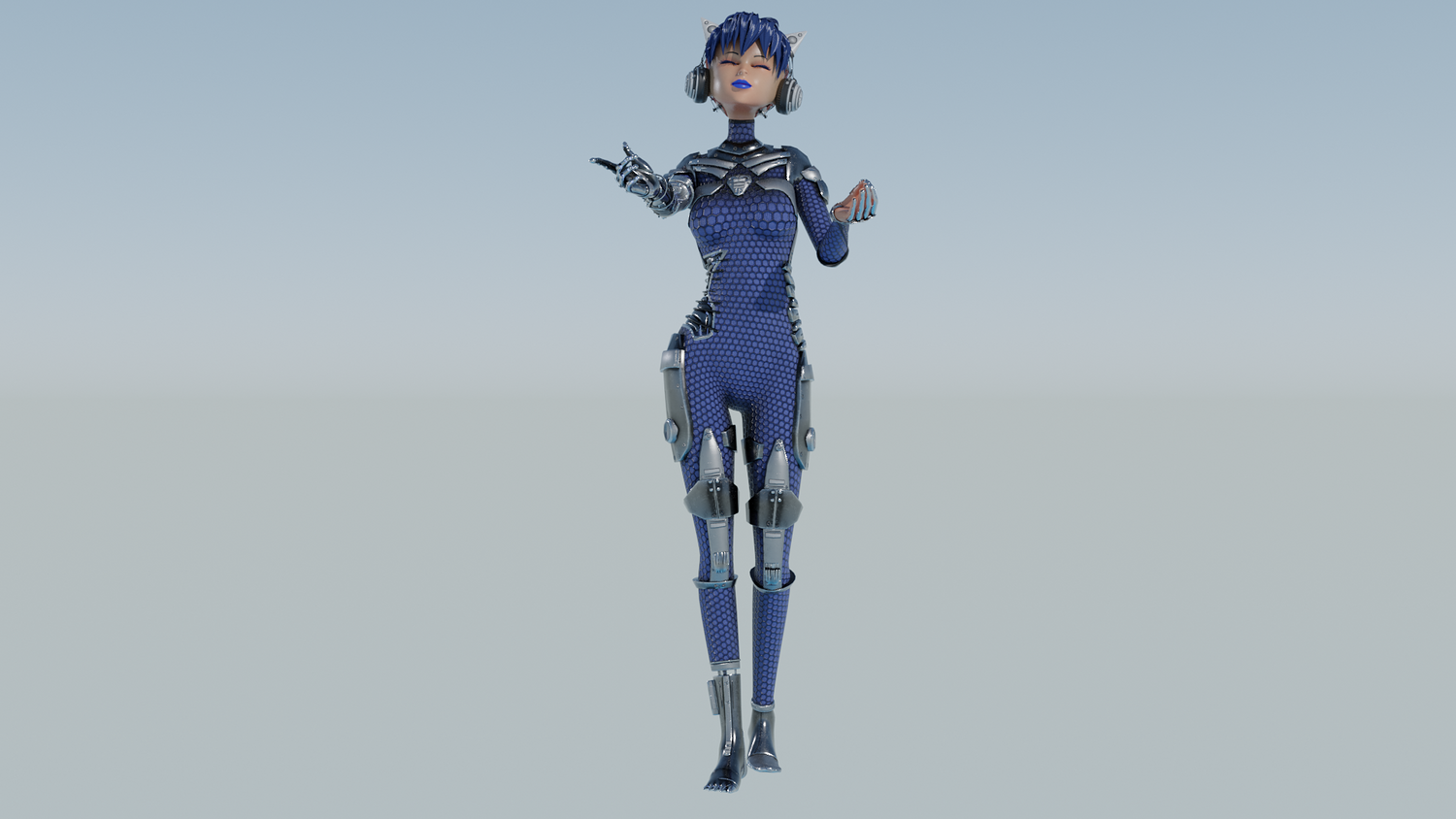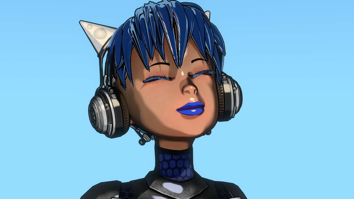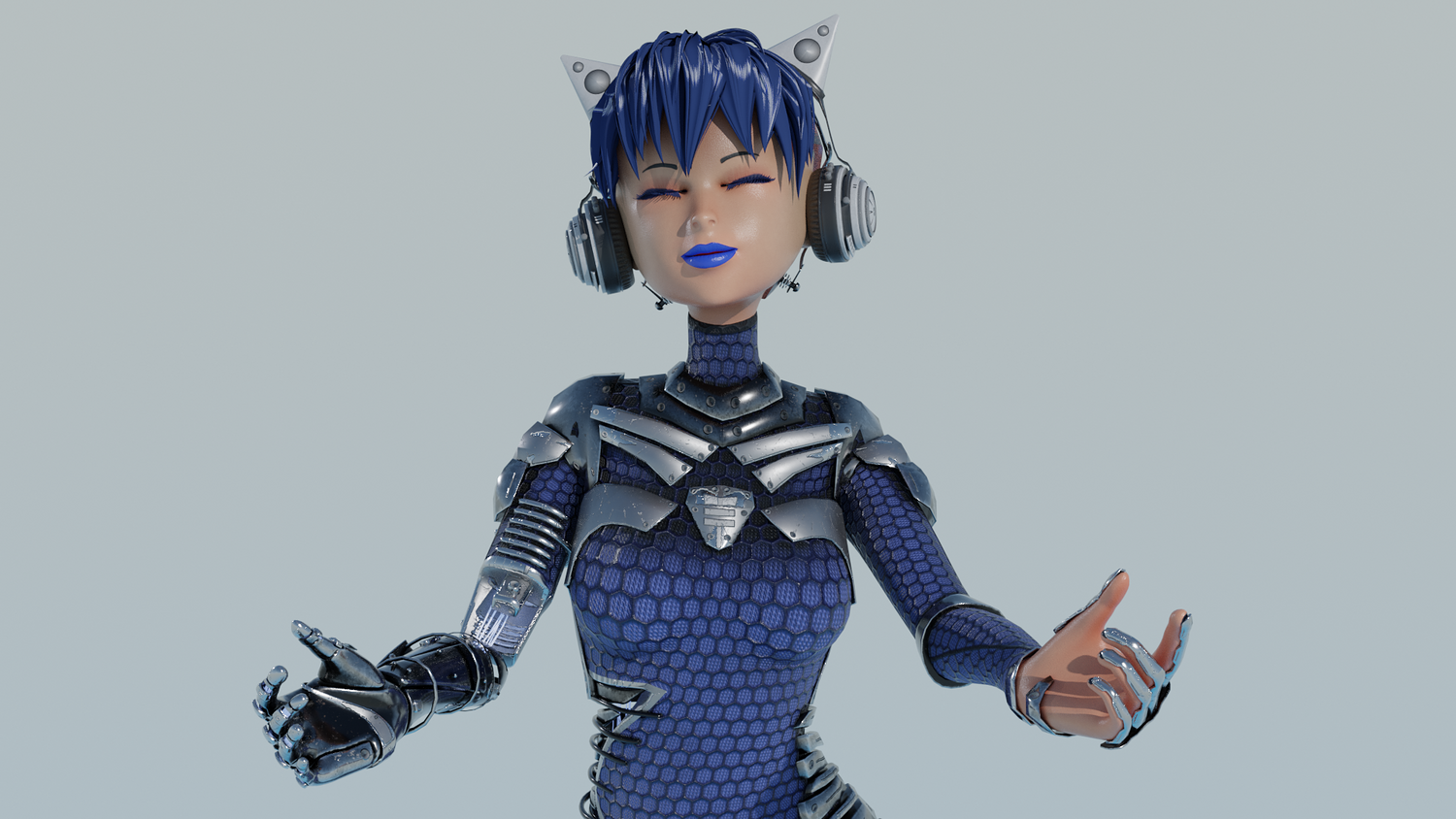 A robotic anime-style female character equipped with a futuristic headset with cat ears. Perfect for games, animations, cinematics, and stylized renders.