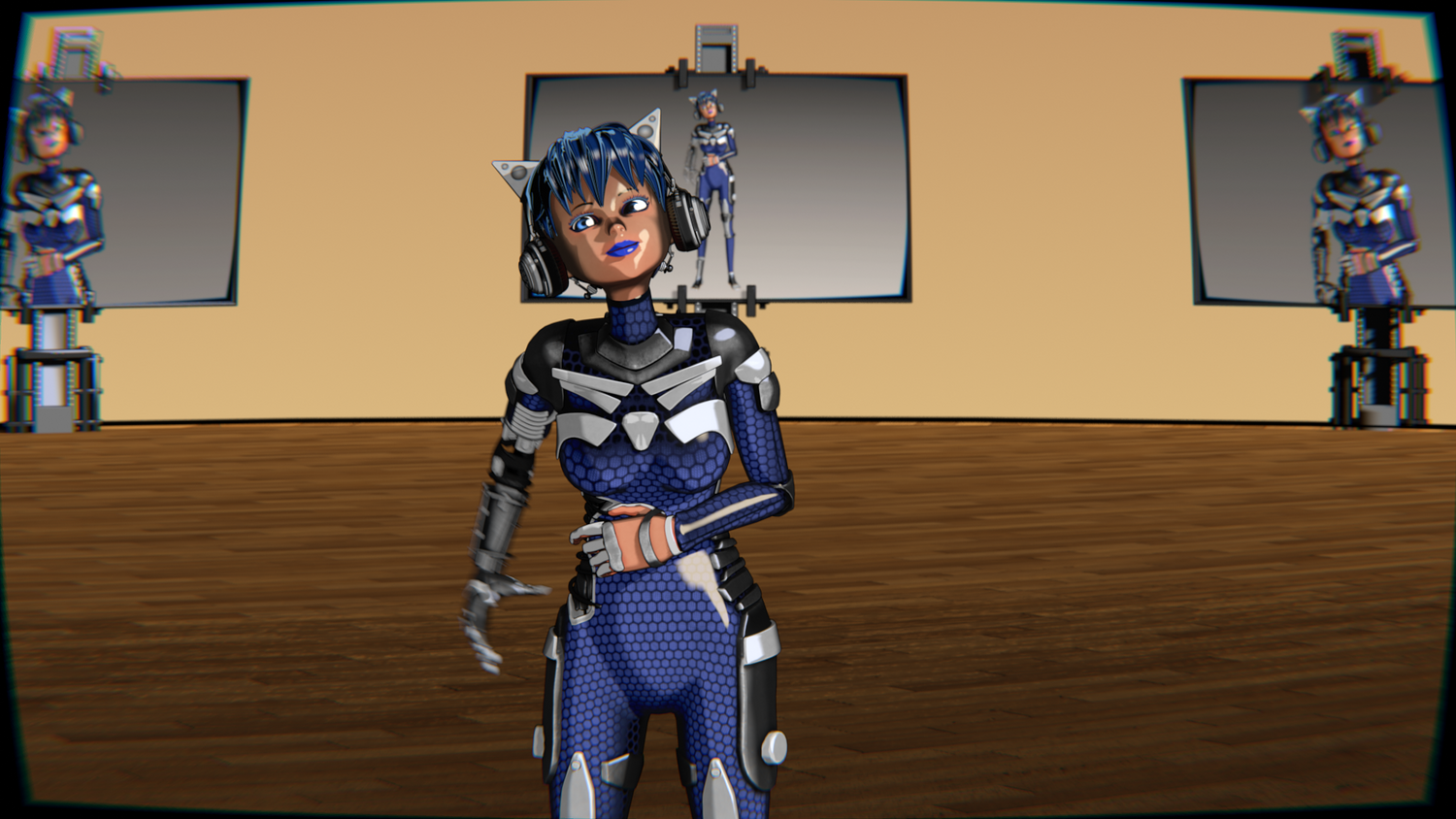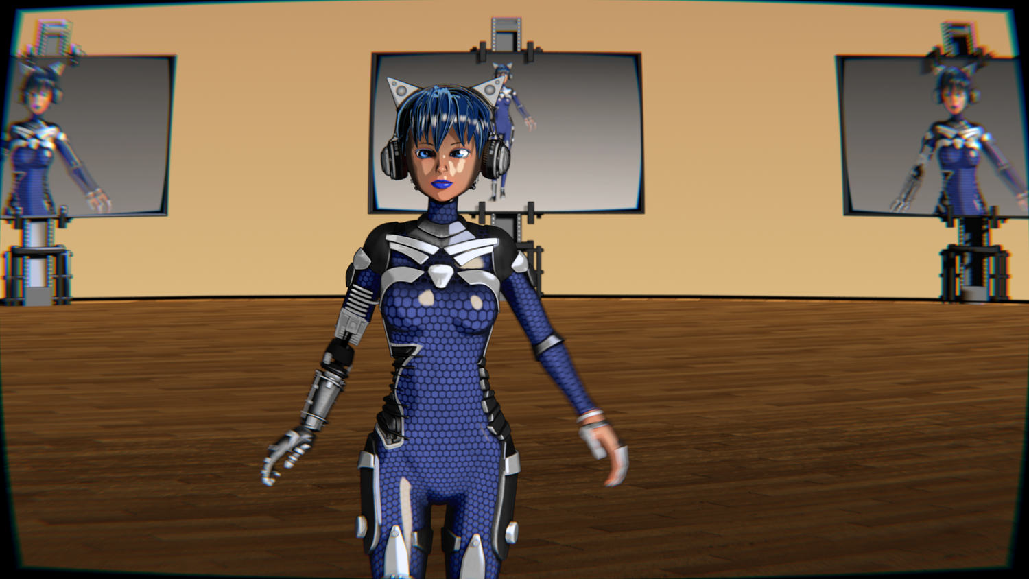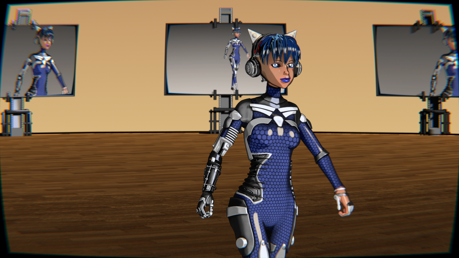 A robotic anime-style female character equipped with a futuristic headset with cat ears. Perfect for games, animations, cinematics, and stylized renders.