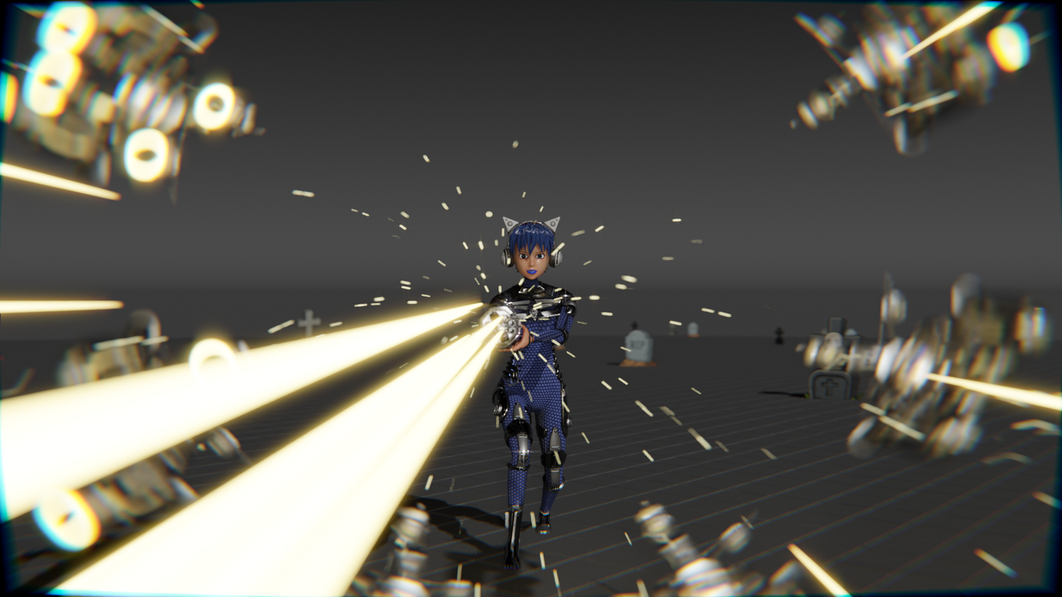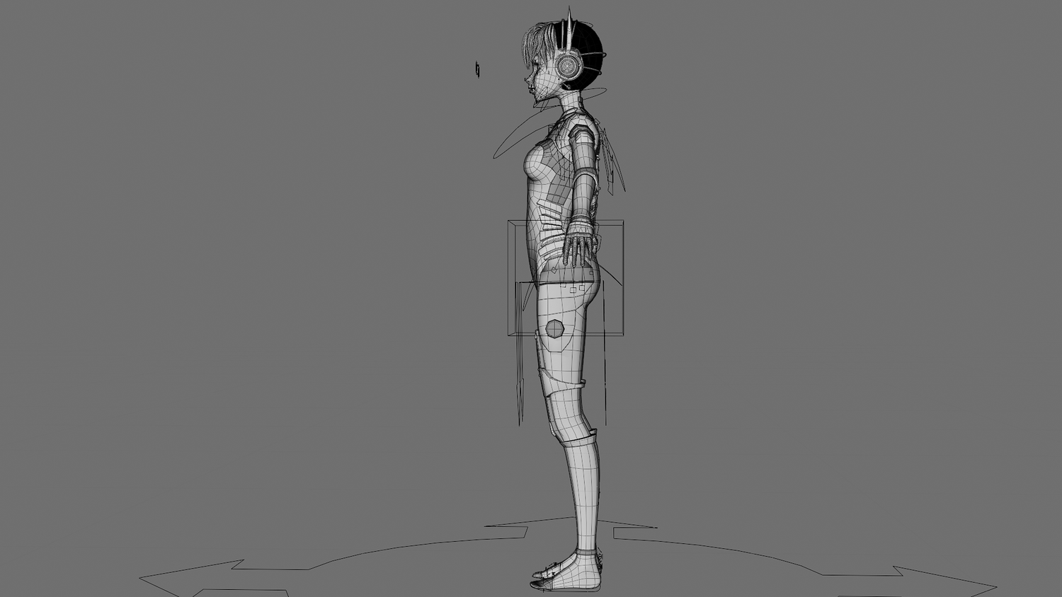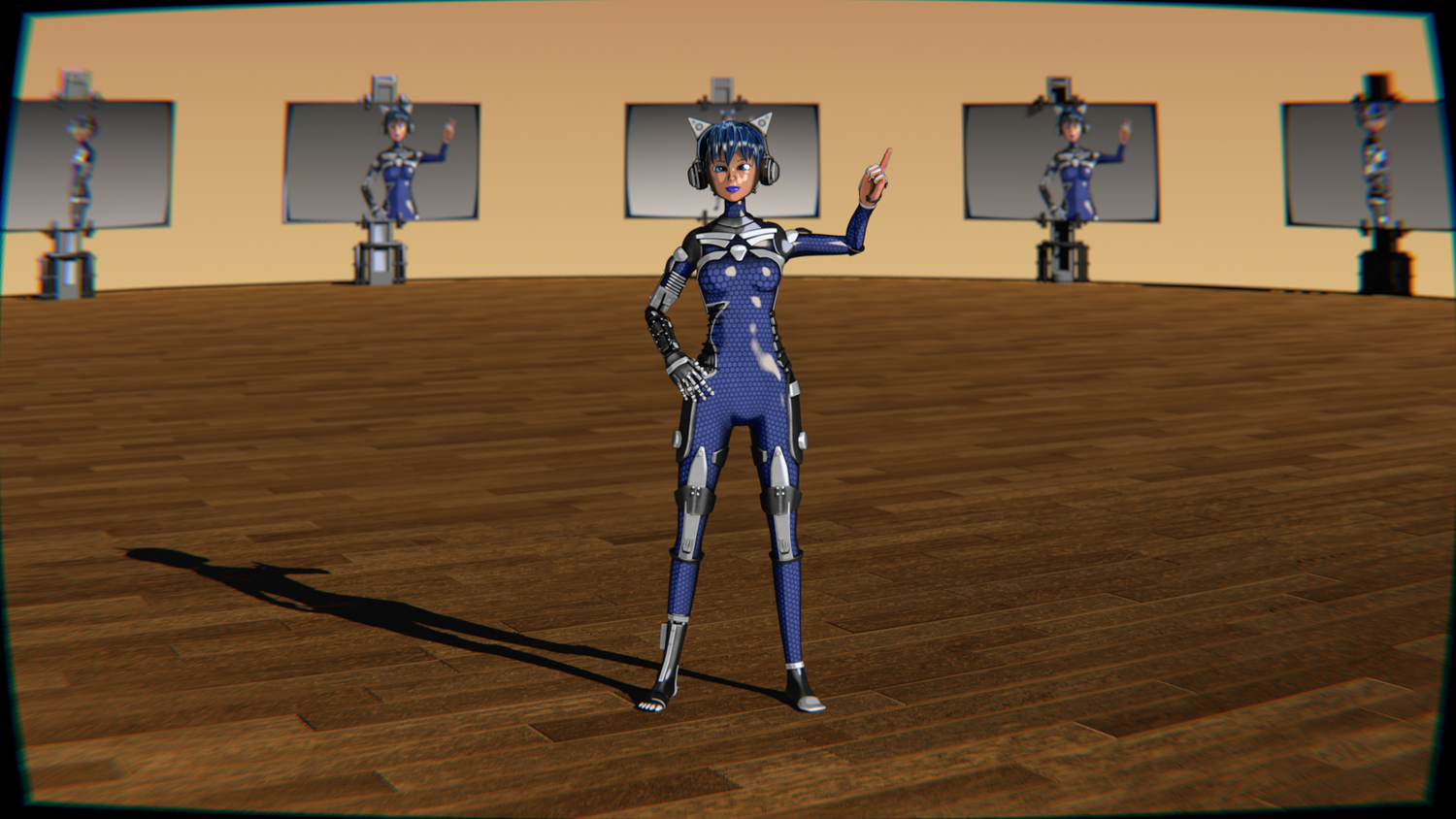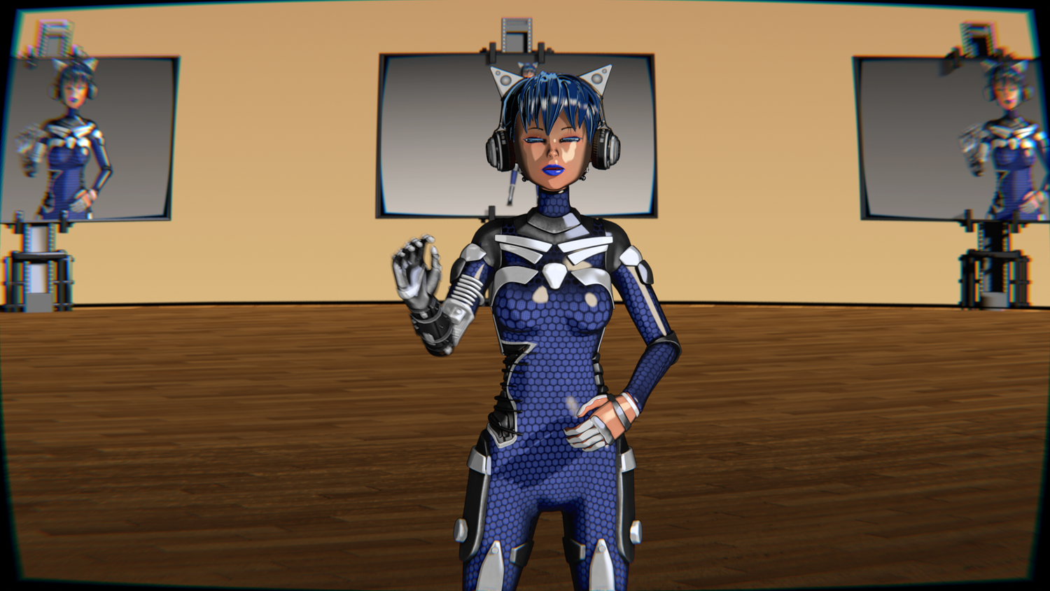 A robotic anime-style female character equipped with a futuristic headset with cat ears. Perfect for games, animations, cinematics, and stylized renders.
