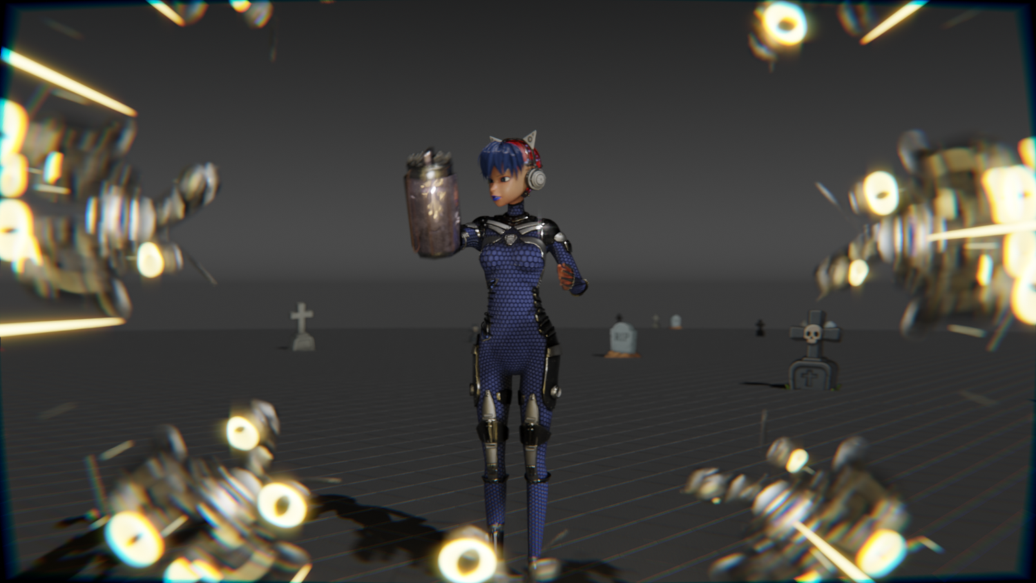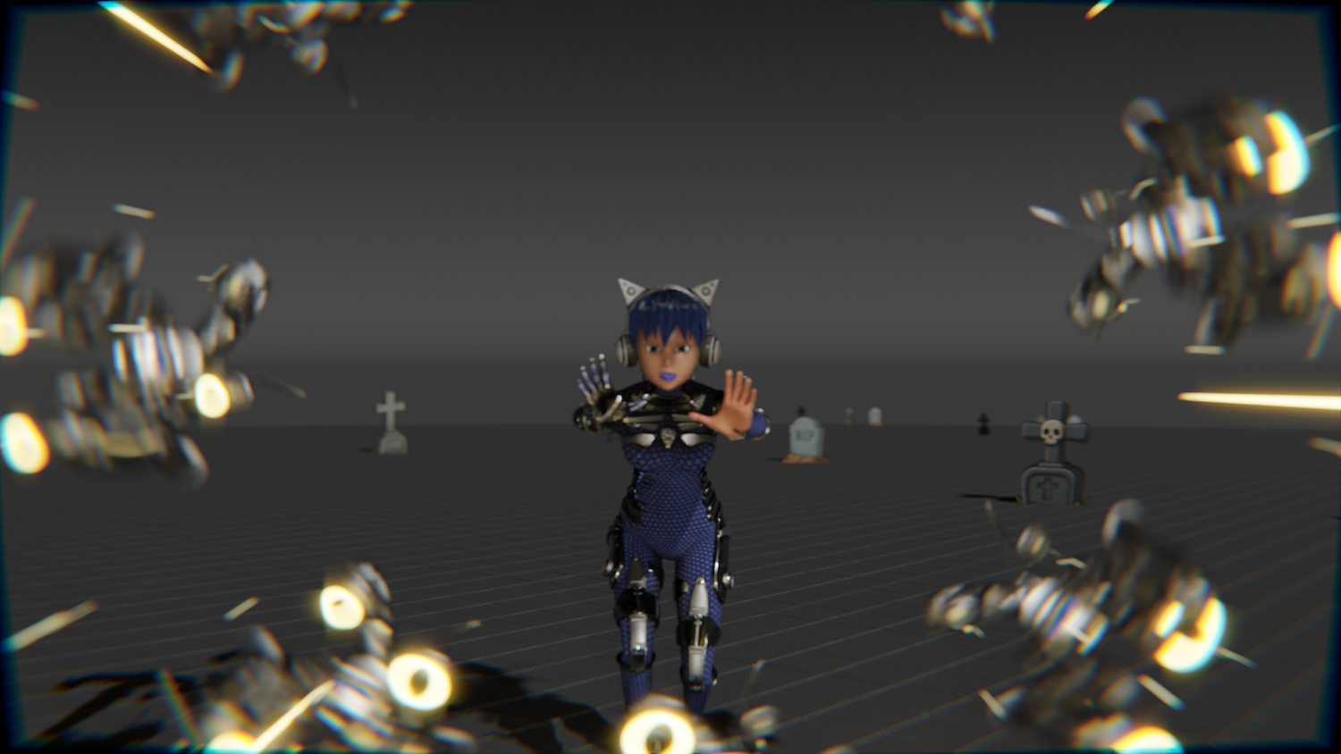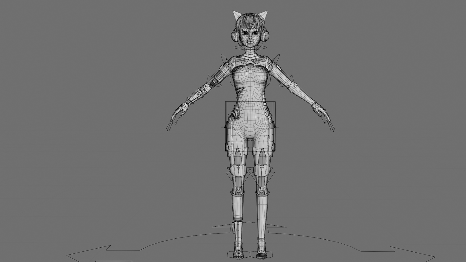 Cyberpunk Cat-Ear Robotic Girl Animation Pack