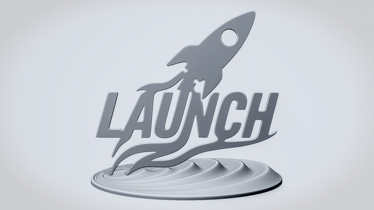Statue Version: The statue version presents LAUNCH as a freestanding display piece on a layered circular base that reinforces the takeoff theme. It keeps the rocket silhouette and sweeping motion lines clearly visible while giving the model a polished, showcase-ready presence for desks, shelves, or workspace setups.