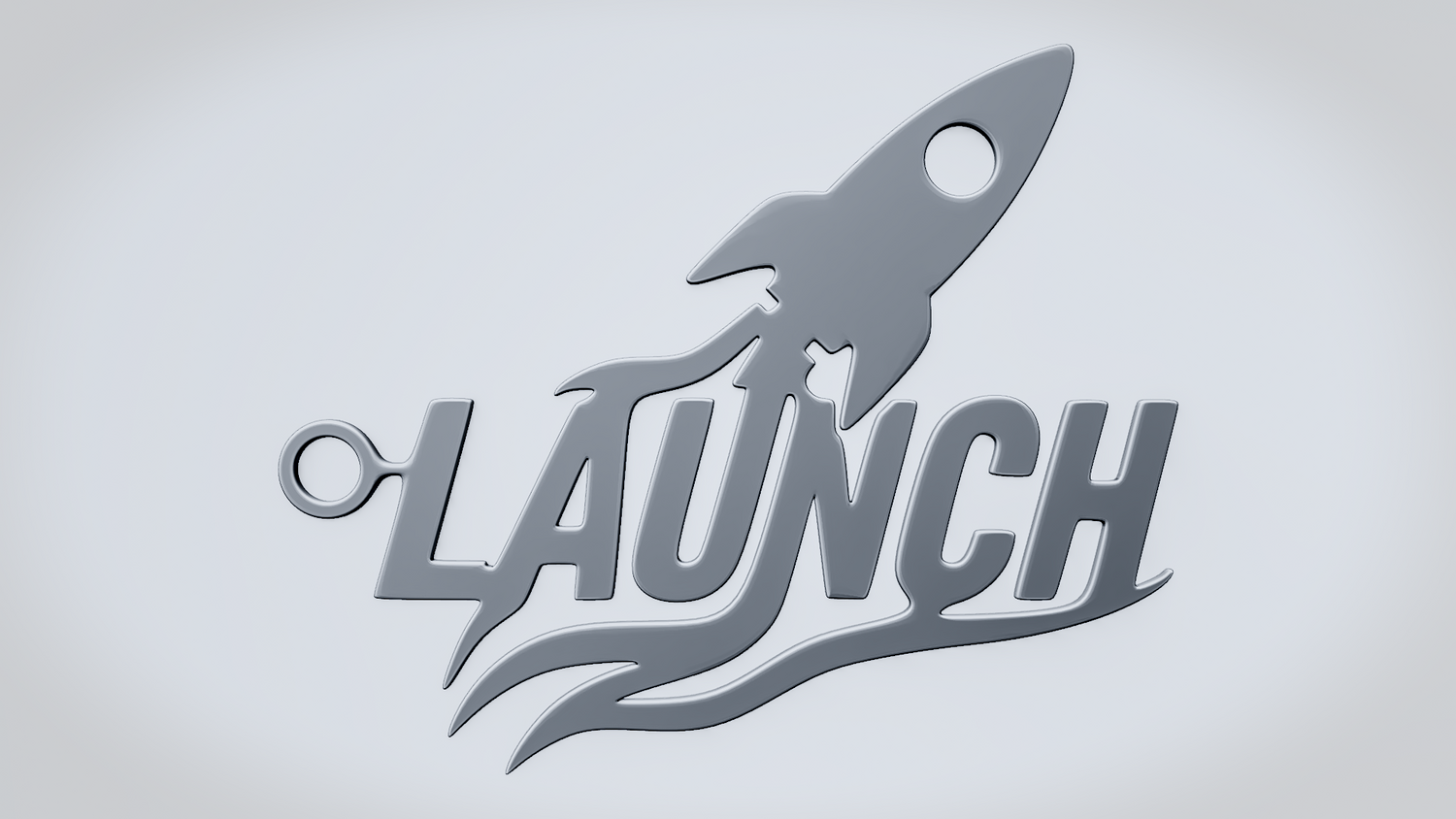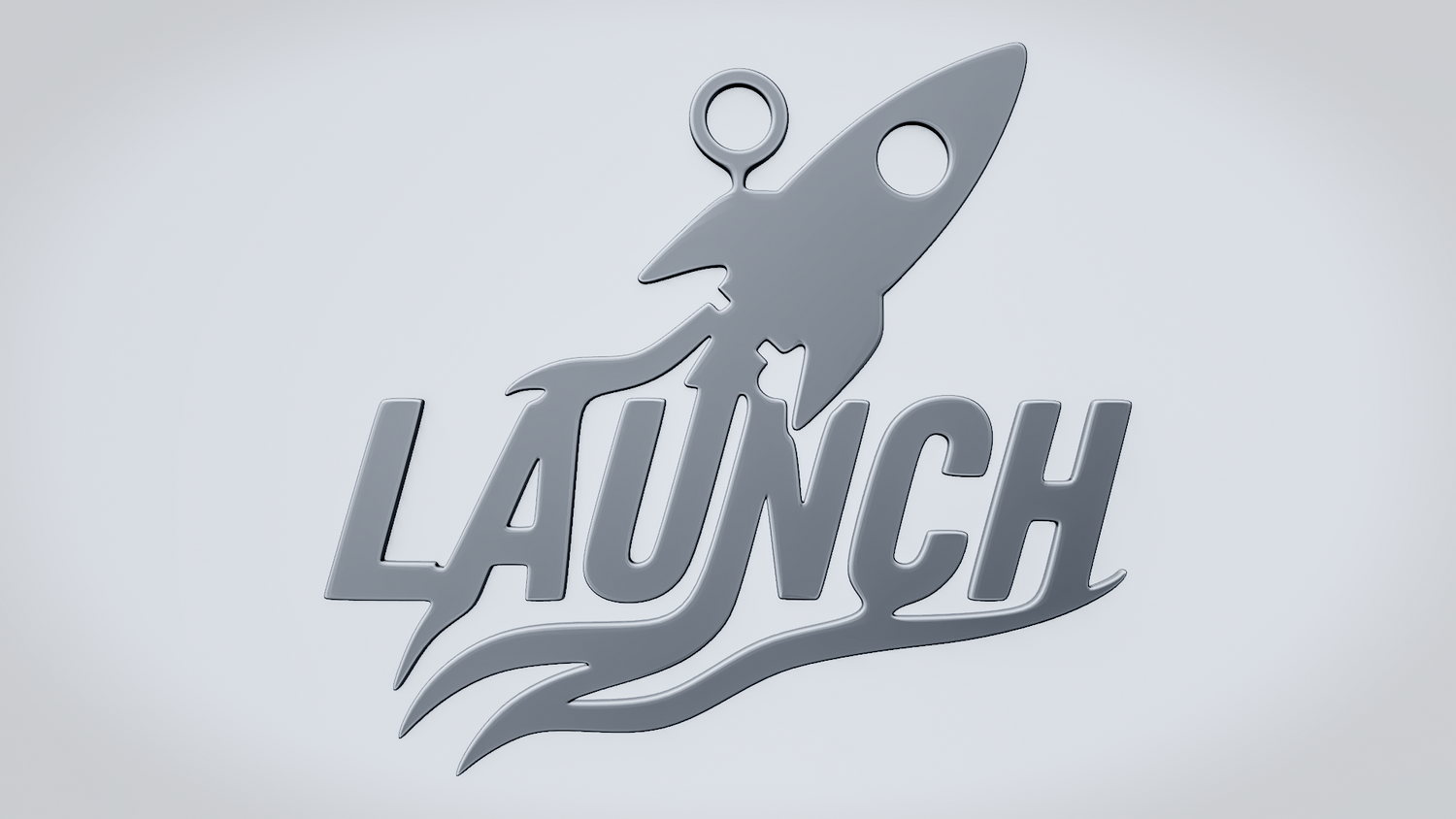 A solid 3D printable design featuring the word LAUNCH in a bold, dynamic layout, with a rocket integrated into the lettering to emphasize lift-off, speed, and forward momentum. The flowing lower lines add a sense of motion while keeping the overall shape clean, readable, and visually strong.