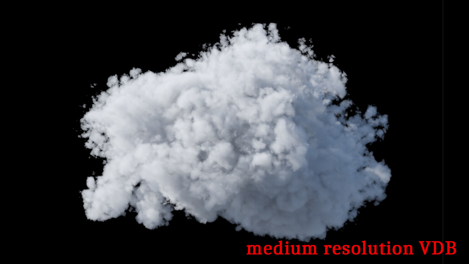 Medium‑resolution VDB: approximately 700 voxels on the longest side (600 voxels for the two largest clouds).