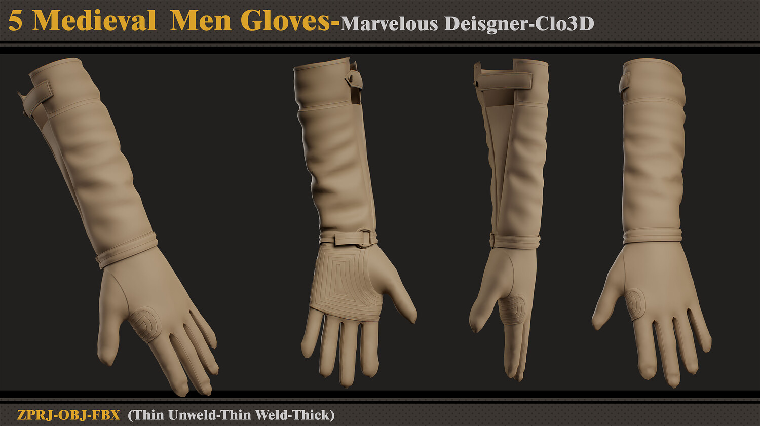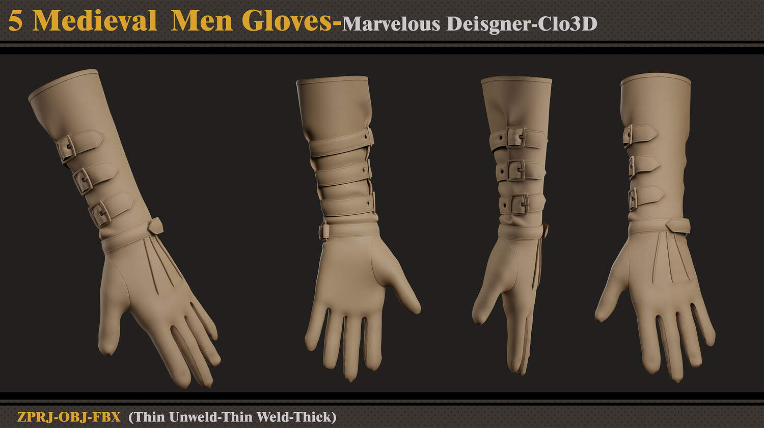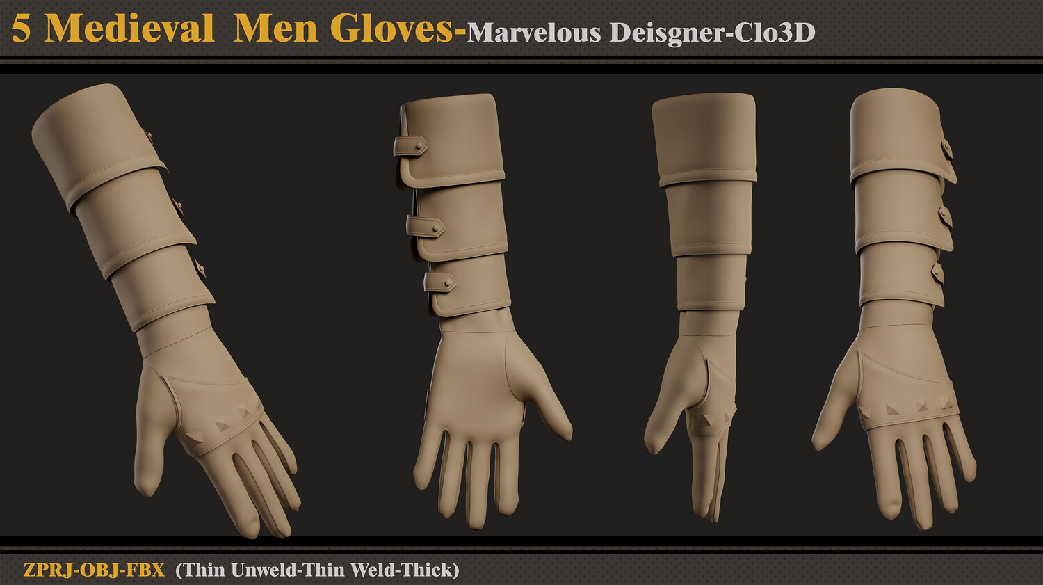 5 Medieval Men Gloves-MD-Clo3D-ZPRJ-FBX - OBJ