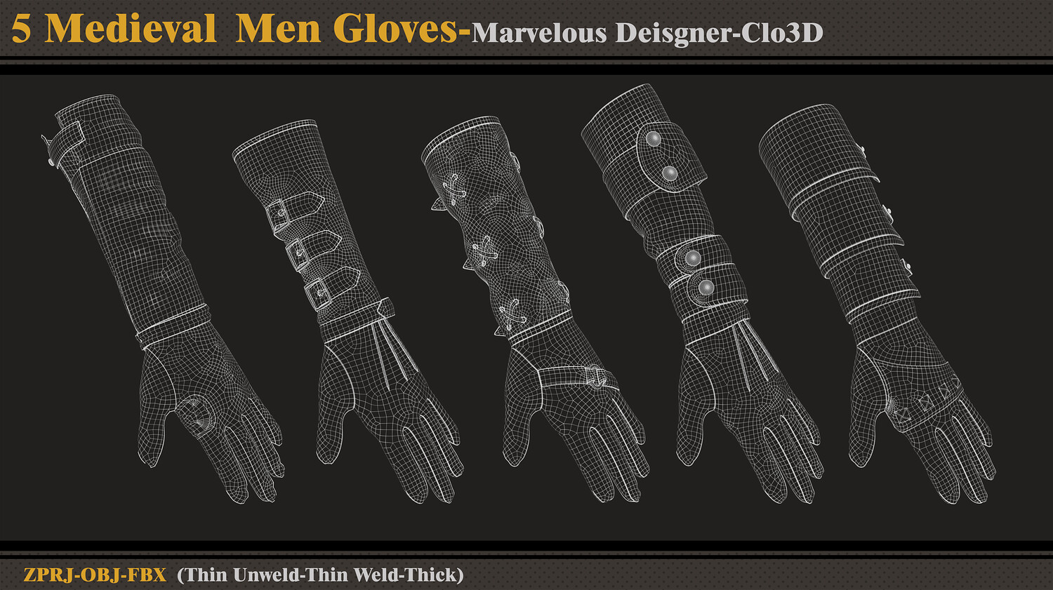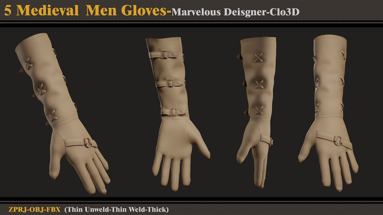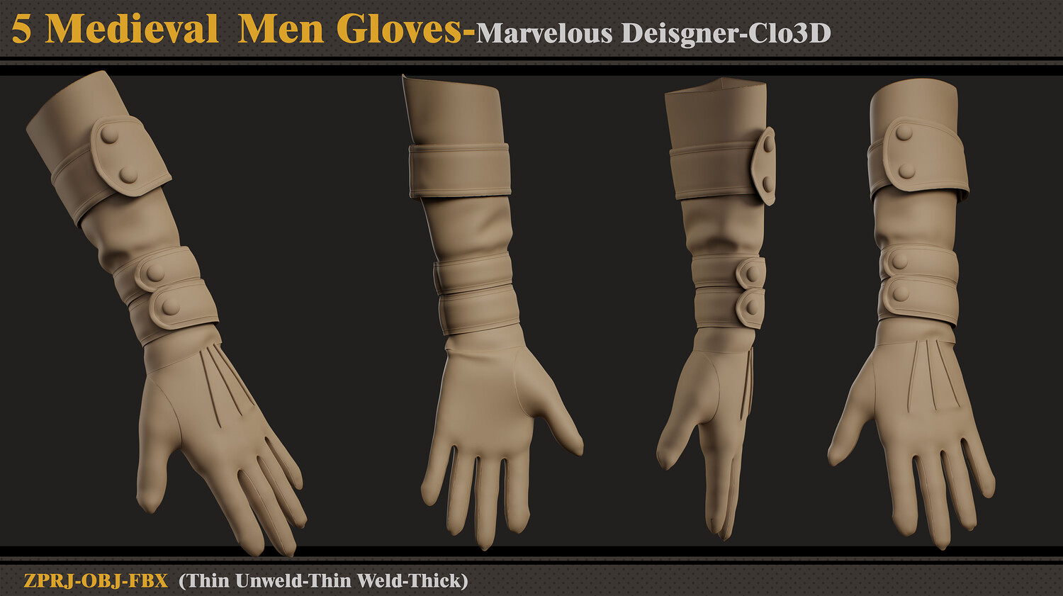 5 Medieval Men Gloves-MD-Clo3D-ZPRJ-FBX - OBJ