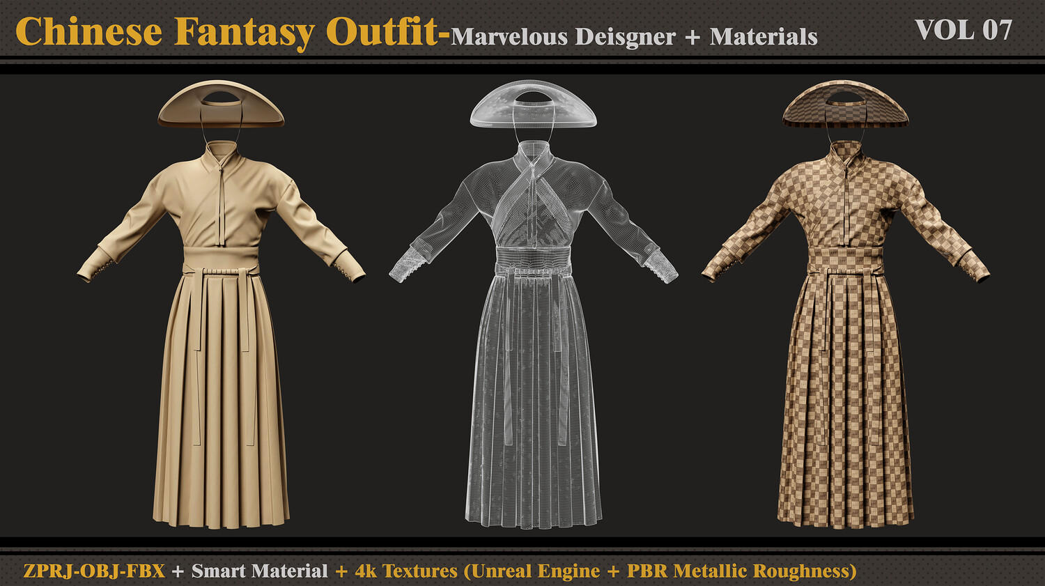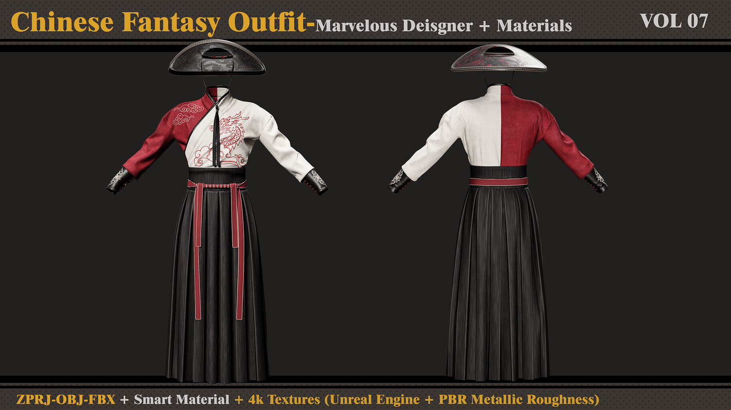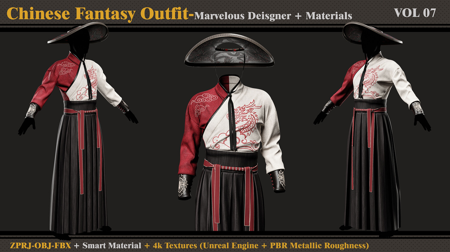 Chinese Fantasy Outfit-MD-Clo3d-Smart Material-Textures-OBJ-FBX