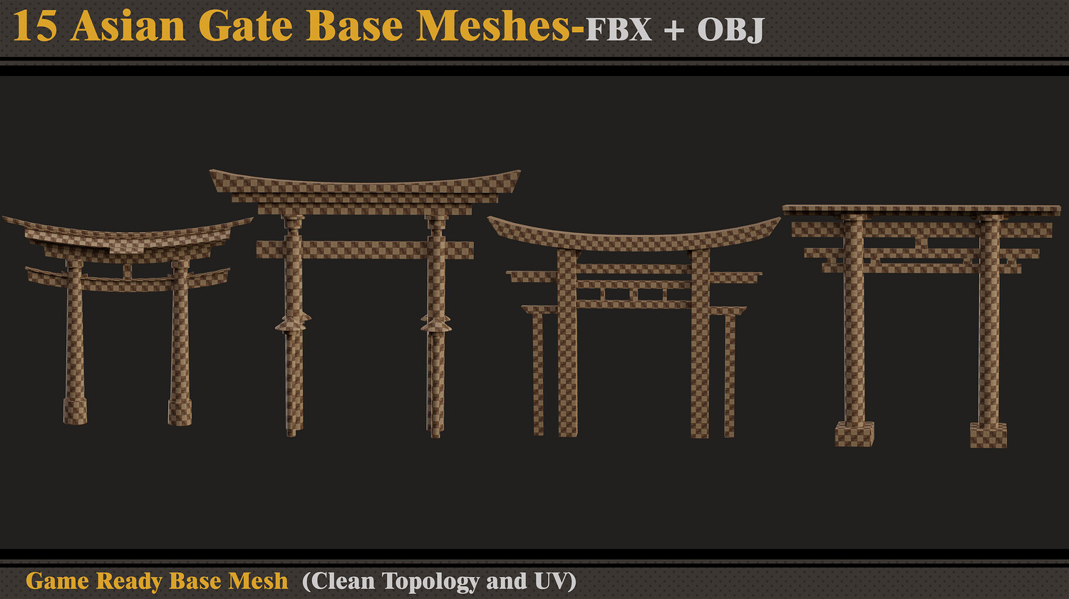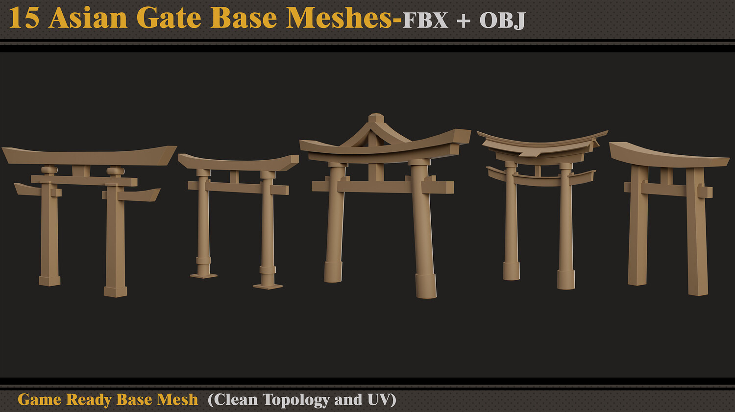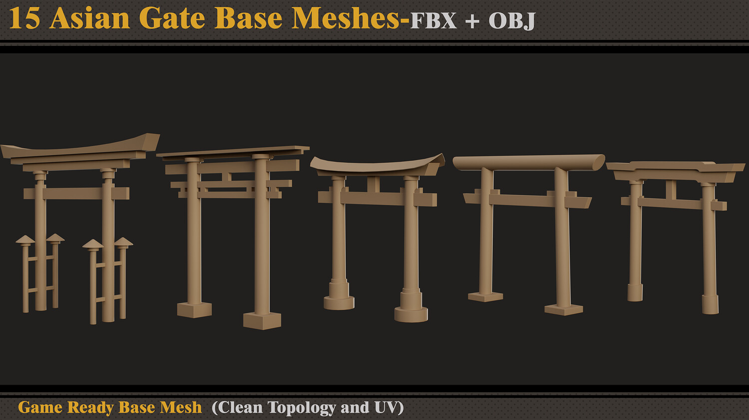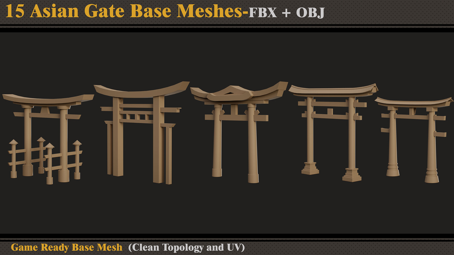 15 Asian Gate Base Meshes- FBX -OBJ