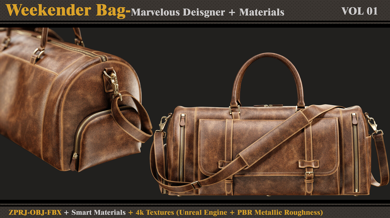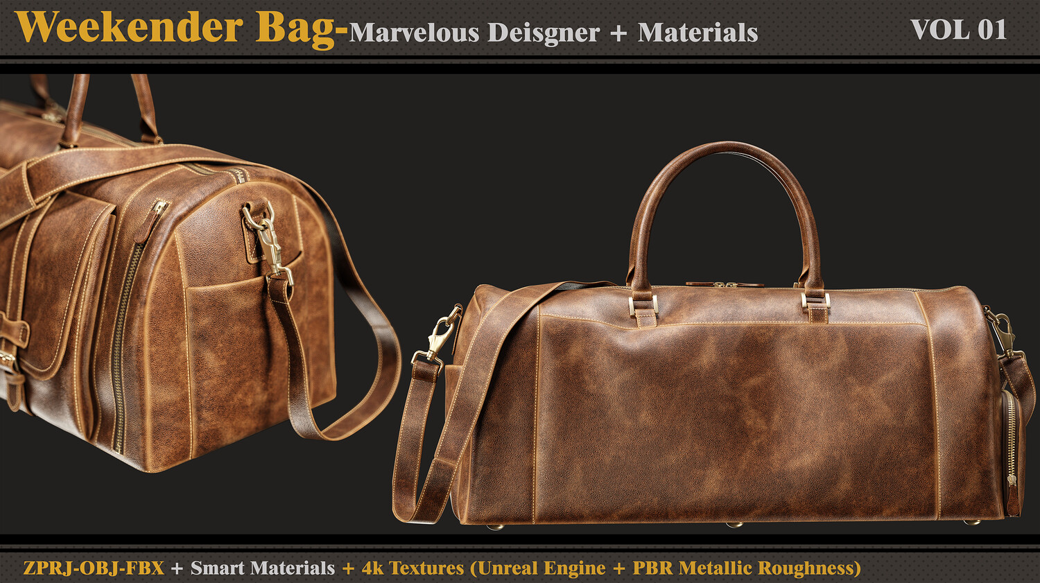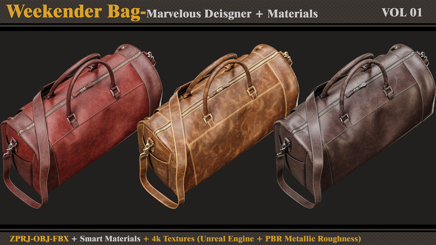 Weekender Bag-MD-Clo3d-3 Smart Material- Textures- OBJ-FBX