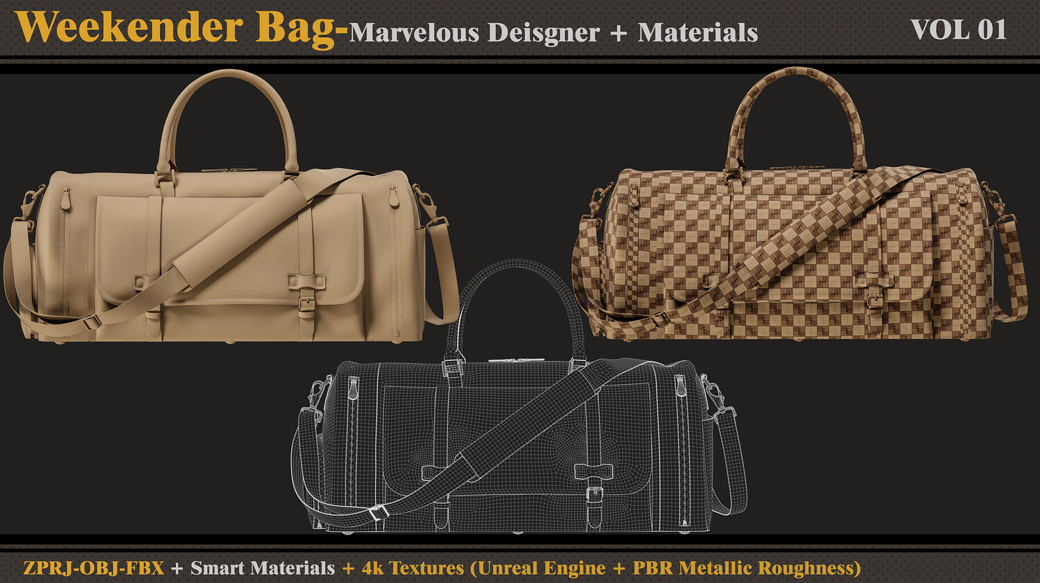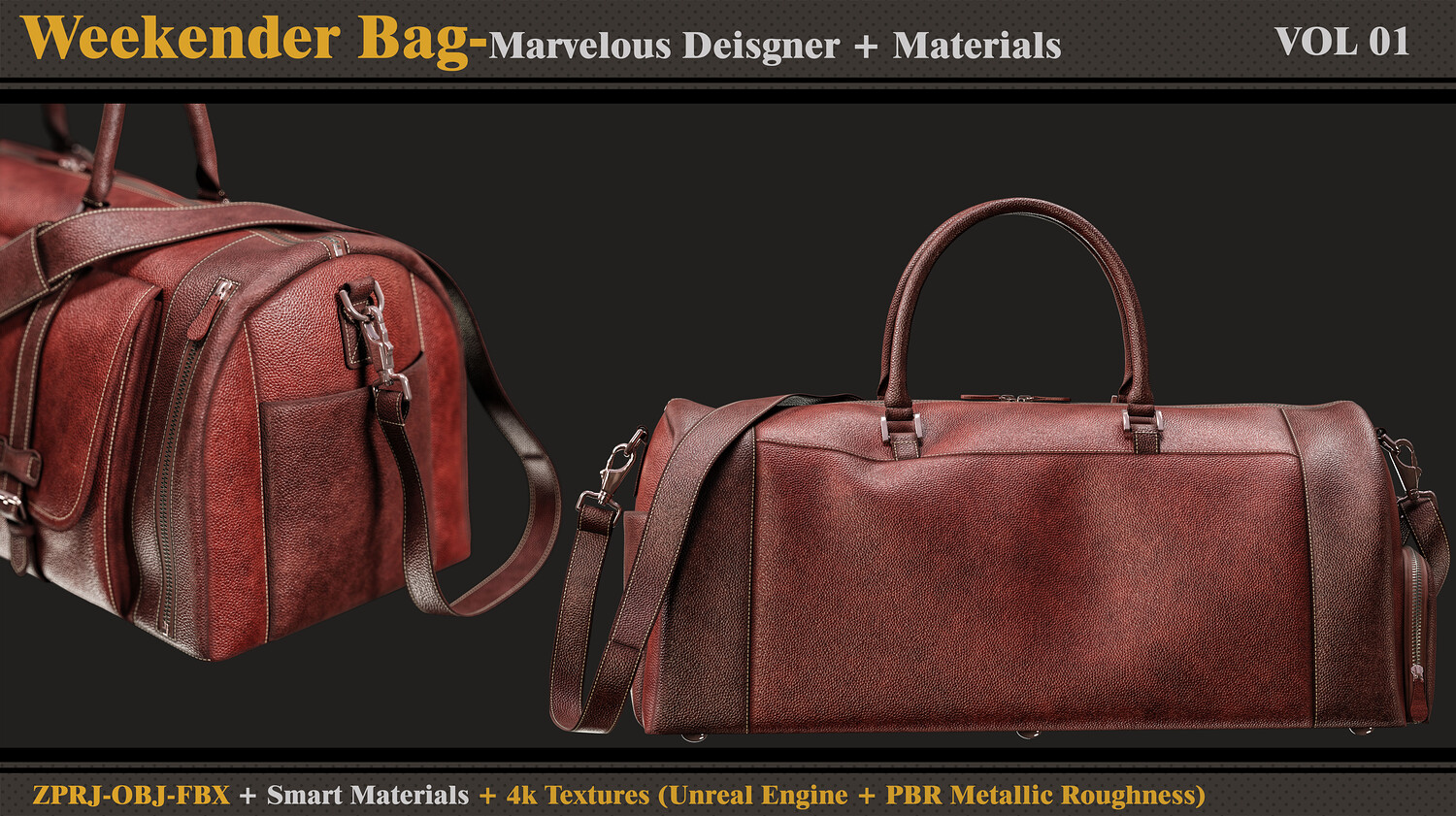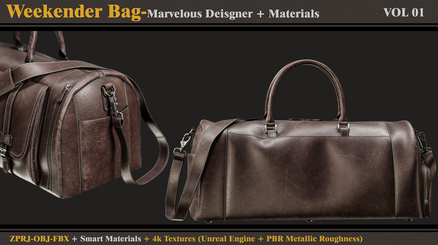Weekender Bag-MD-Clo3d-3 Smart Material- Textures- OBJ-FBX