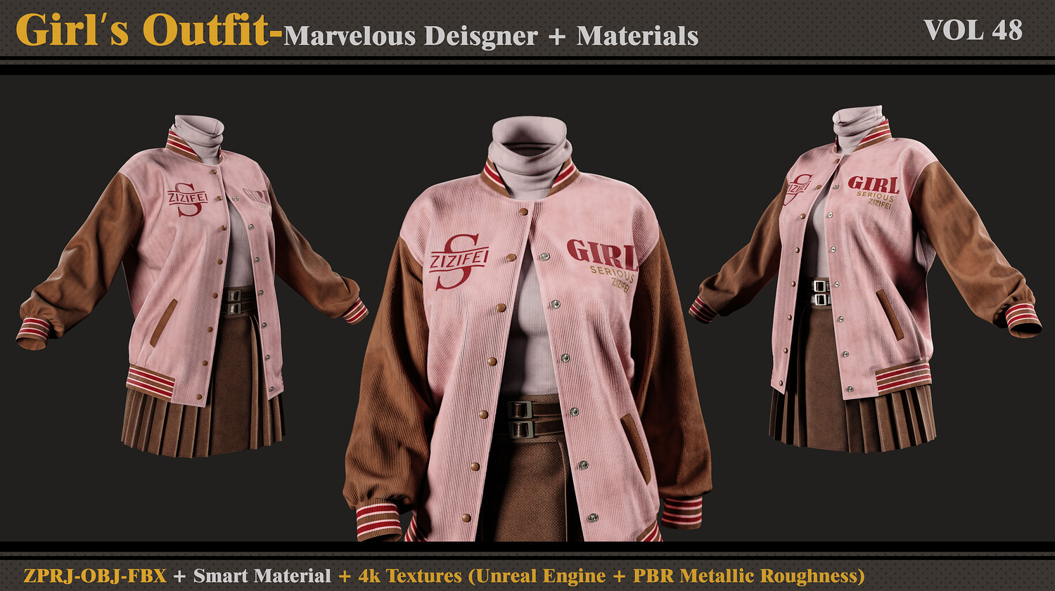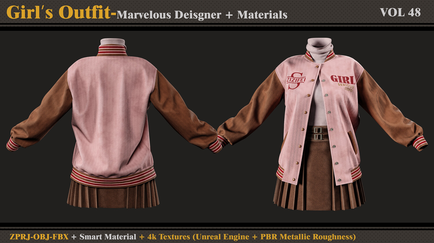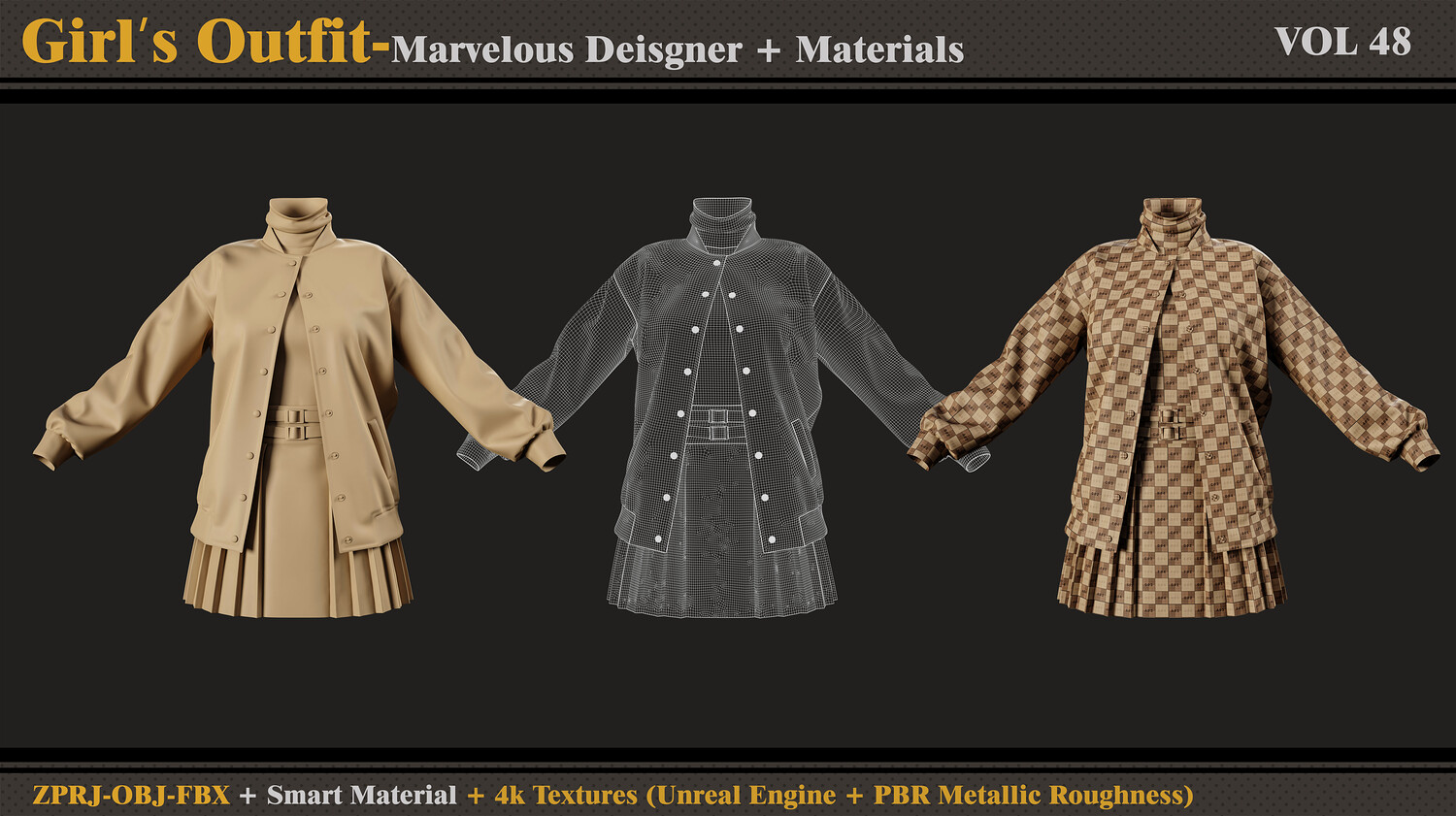 Hello ;) This product contains: - Marvelous Designer or Clo3D (ZPRJ) -A Pose - FBX and OBJ ( Thick and Thin Unweld and Thin Weld) - Normal Map -Smart Materials - 4k and PNG Texture (Unreal Engine + PBR Metallic Roughness) Attention - No retopology - Quad Mesh and Unwraped in clo3d - Avatar - DazStudio Genesis 8 female I hope you download and like it. If you have any questions or problems tell me here. Please rate and review this product and I appreciate that :)